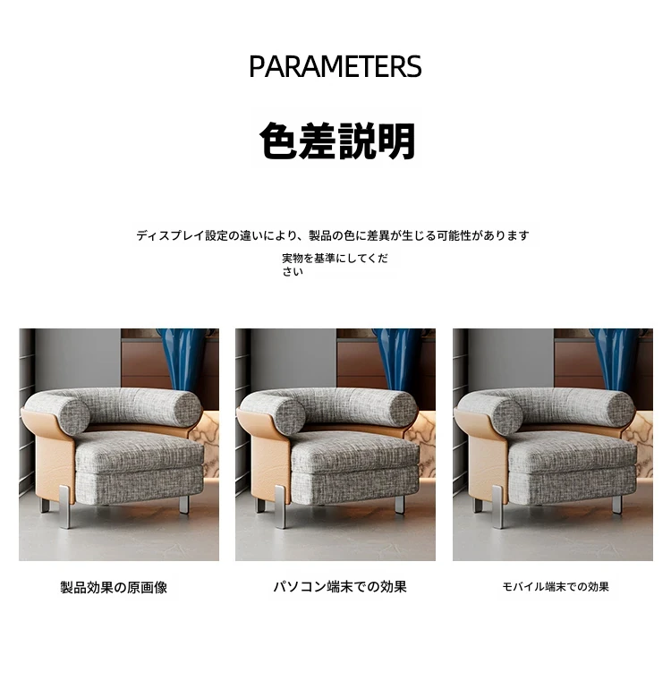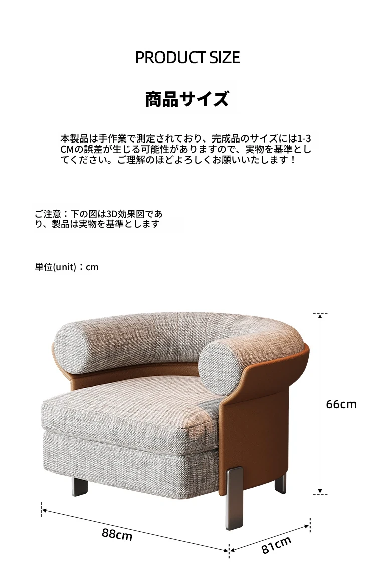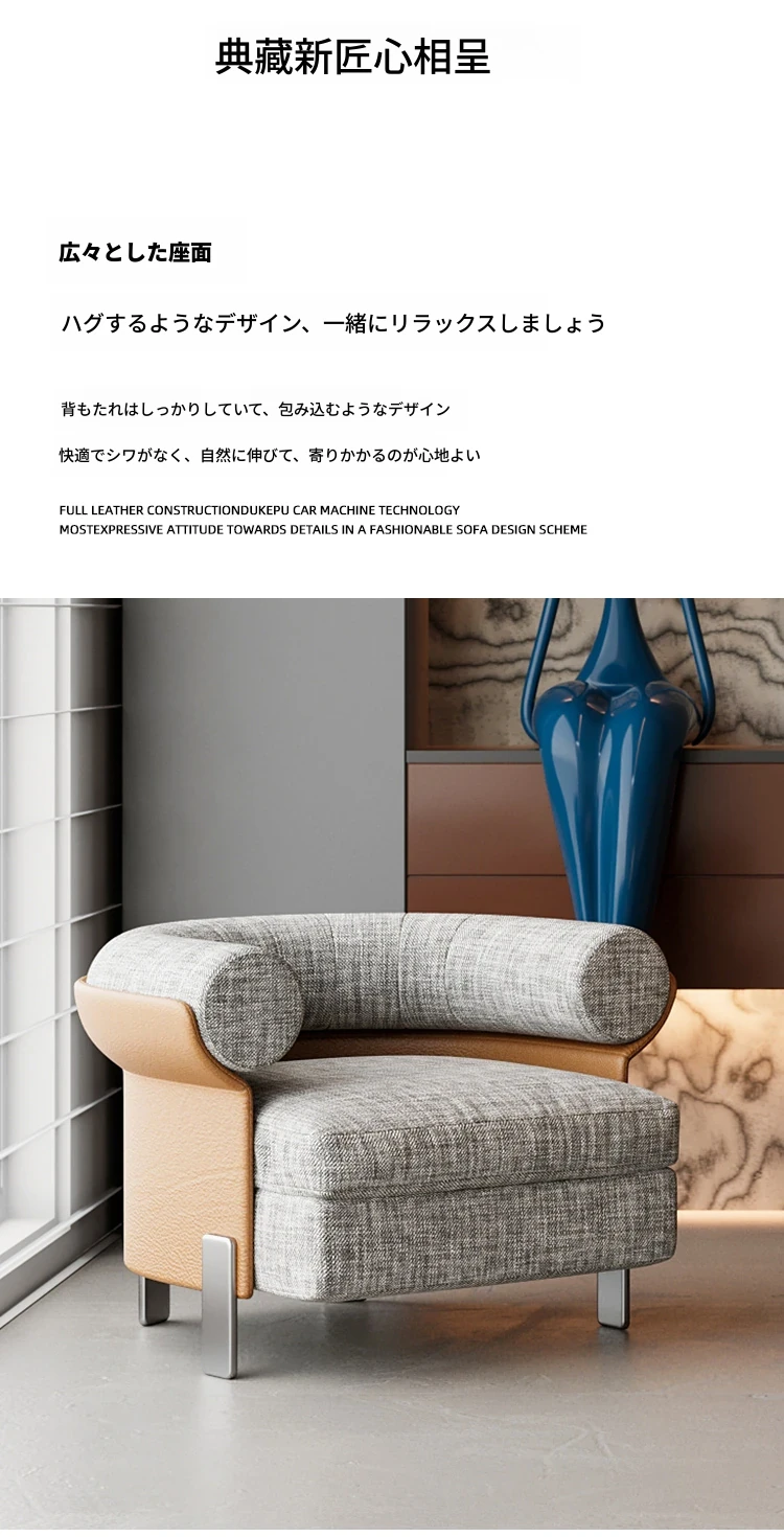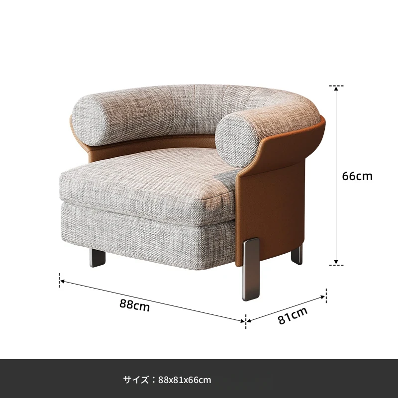 オレンジ灰色ソファチェア【コットンリネン+ナパレザー】