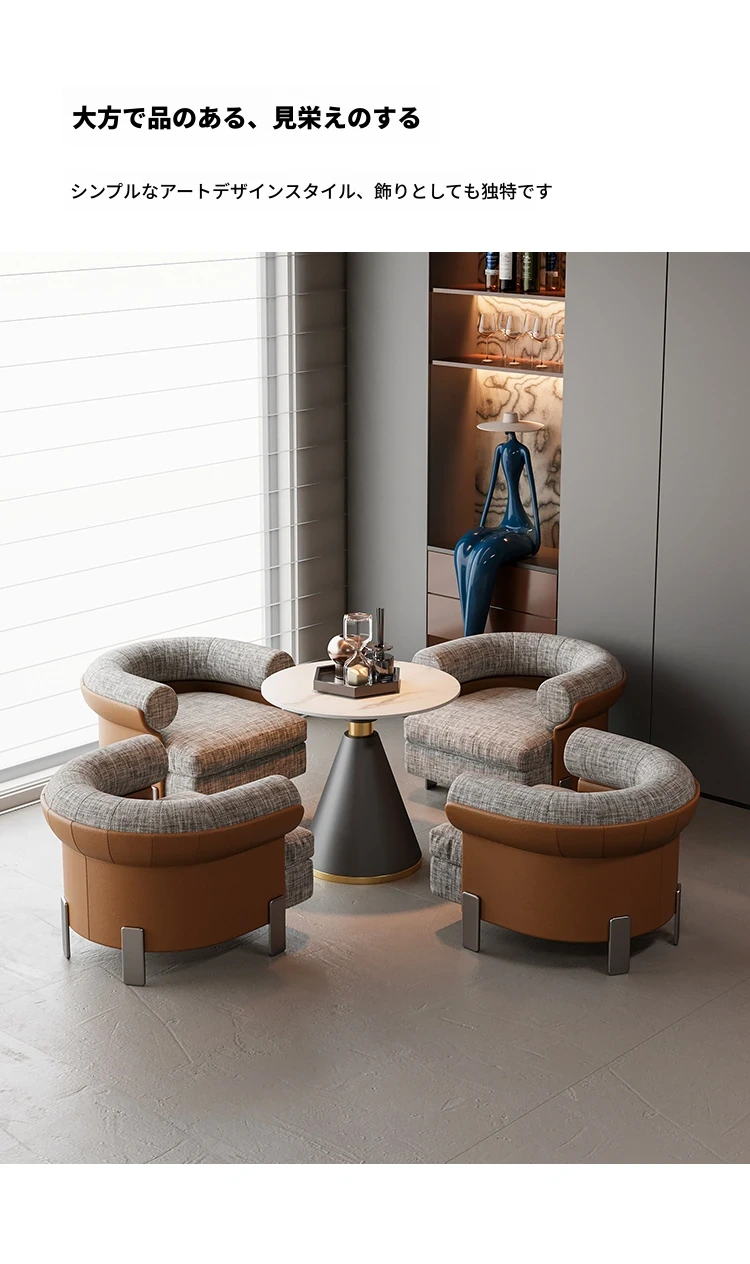 イタリアンラグジュアリー談話テーブル&チェアセット - 不動産営業所、サロンの休憩エリア、ホテルのフロント、茶室に最適な洗練されたデザイン。おしゃれな空間を演出し、訪れるお客様を魅了します。
