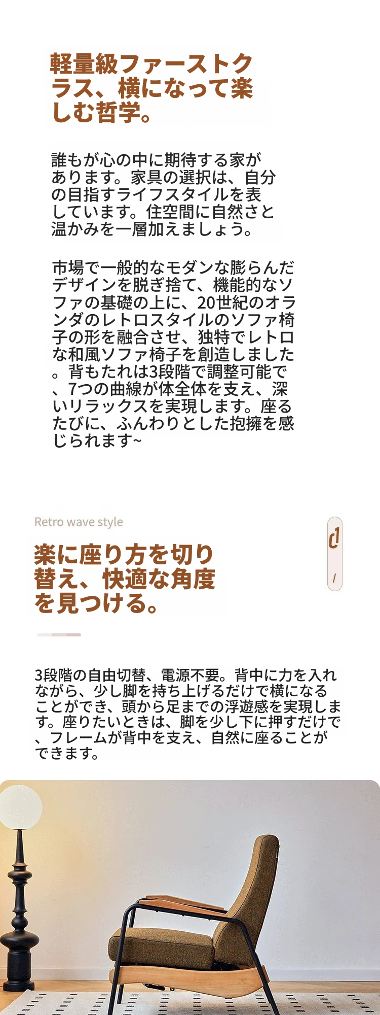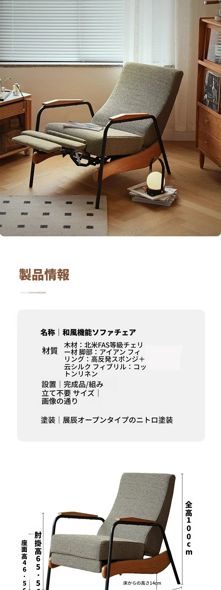 多機能折りたたみ式ジャパニーズソファチェア - リビングやバルコニーにぴったりな一人用リラックスチェア!寝そべってくつろげる、快適なひとときをお届けします。