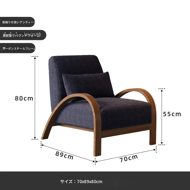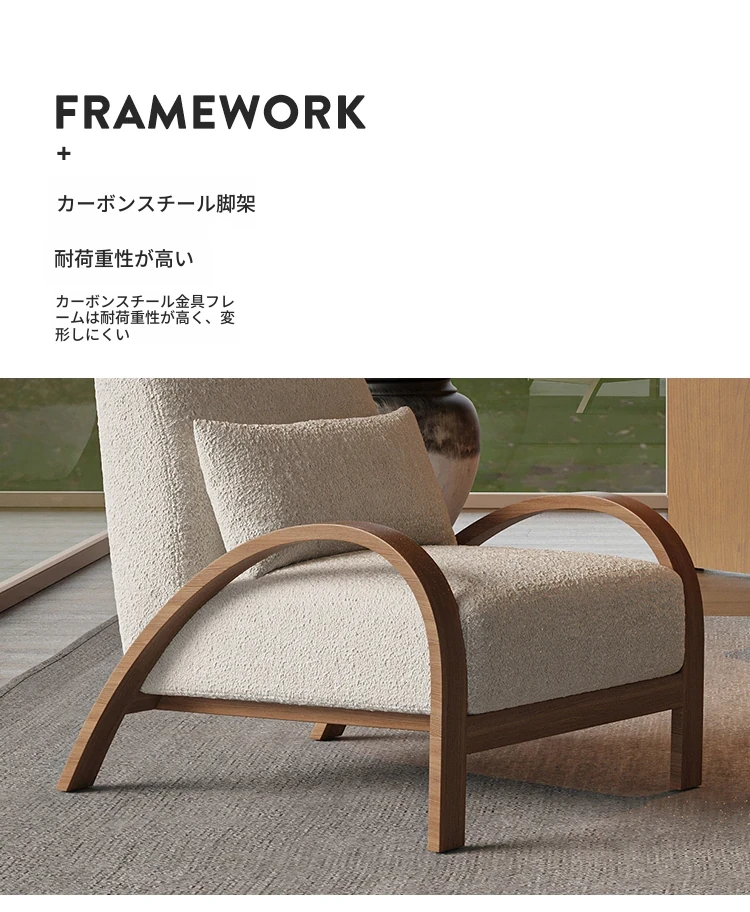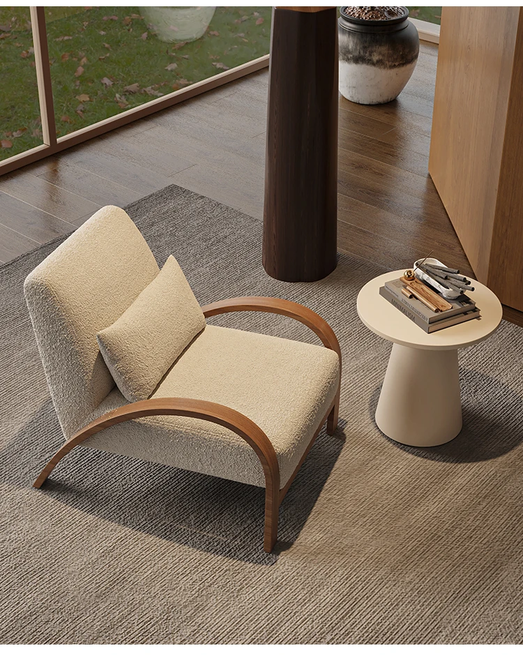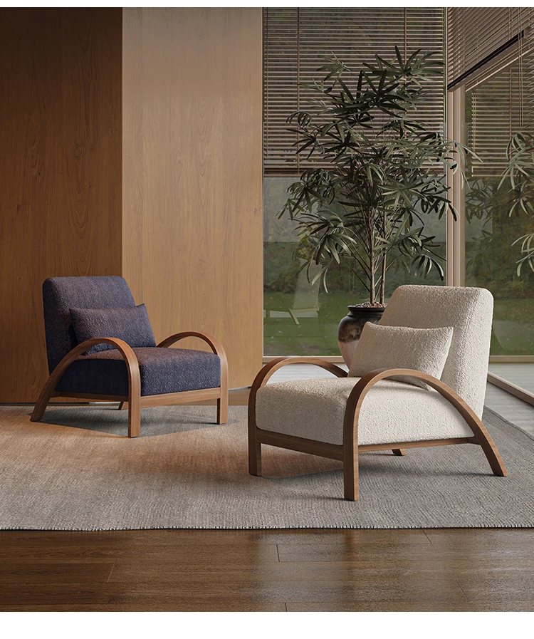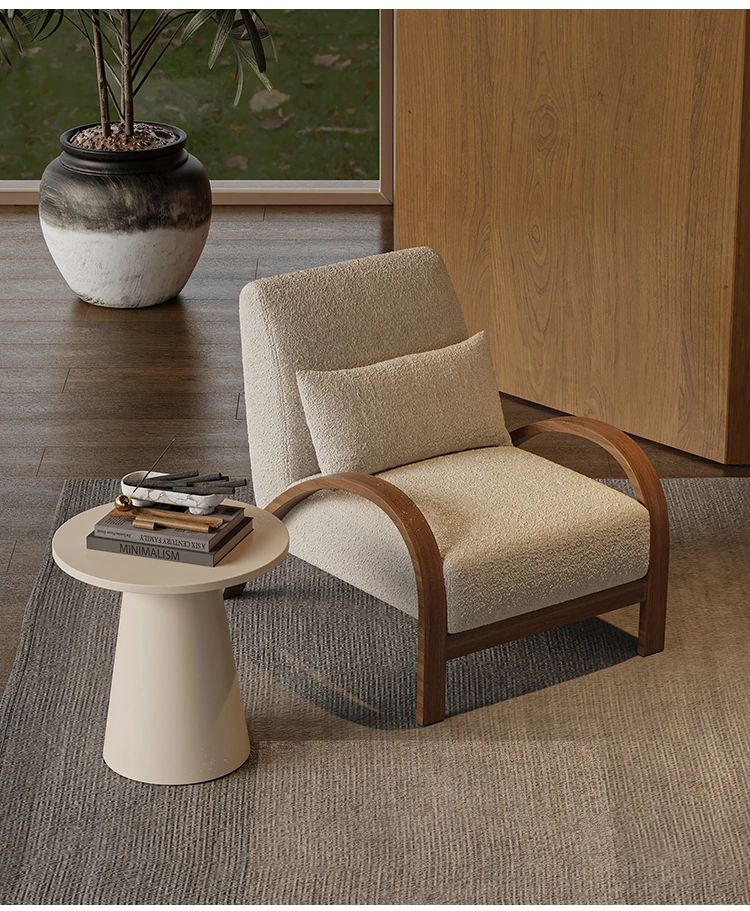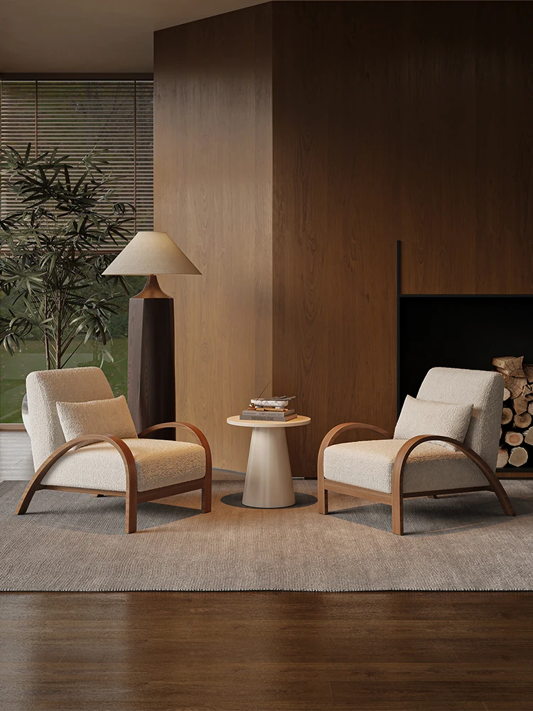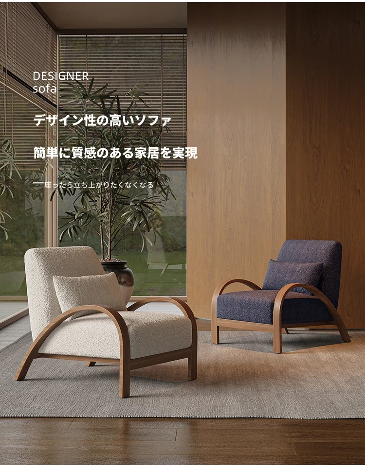 侘寂風デザインの一人用ソファチェア - おしゃれなリビング、バルコニー、民宿やホテルの休憩エリアに最適!一卓二椅子で、心安らぐくつろぎスペースを演出します。