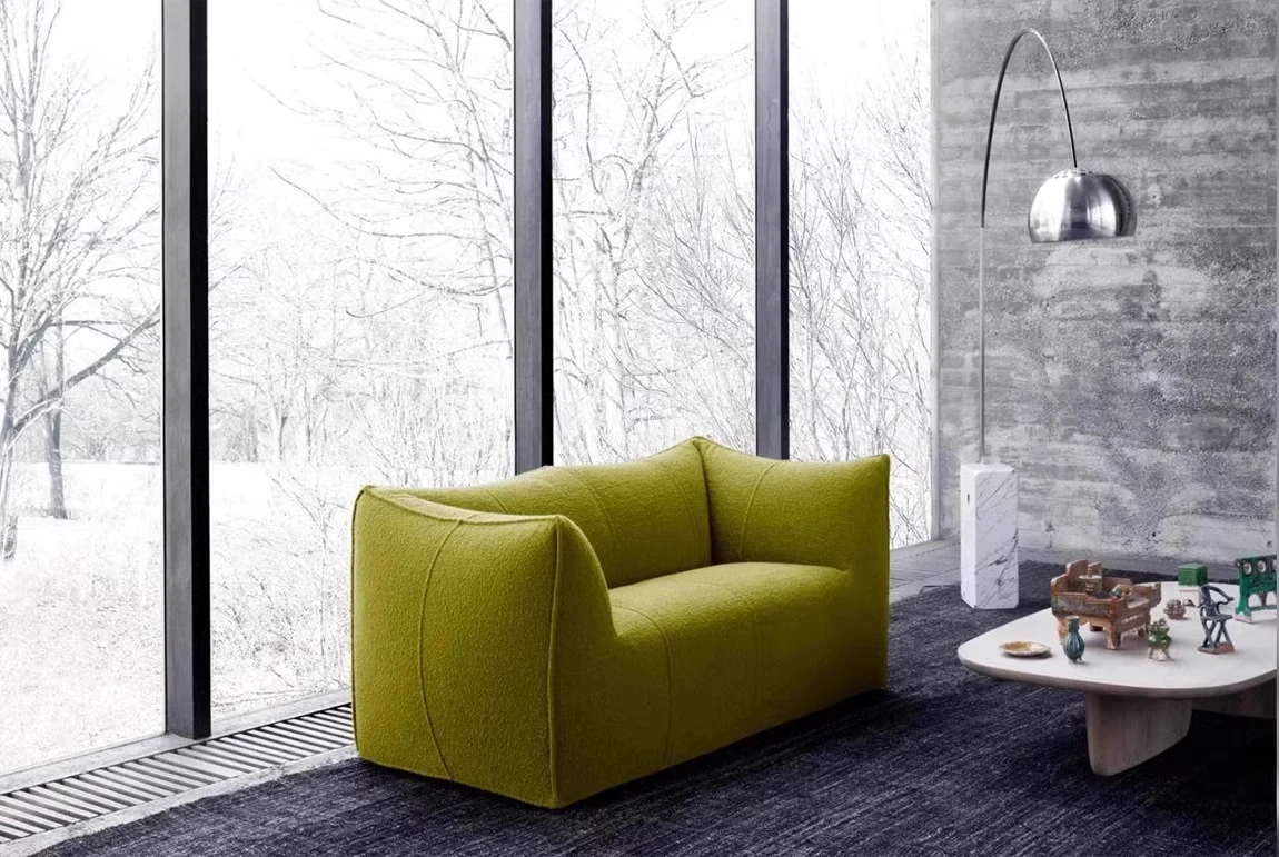 Le Bambole 小型リビング向けクリーム色の侘び寂びデザイン、デザイナーによるテディファブリックの一人掛けソファ。おしゃれでコンパクトな空間にぴったり!心地よい素材と洗練されたデザインで、毎日のくつろぎを演出します。