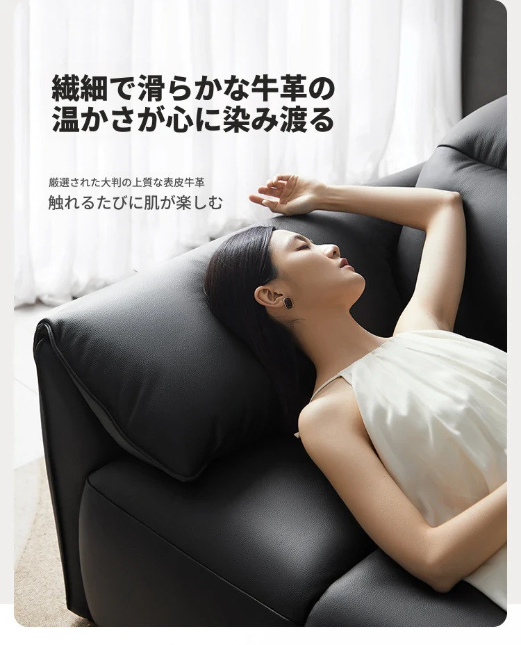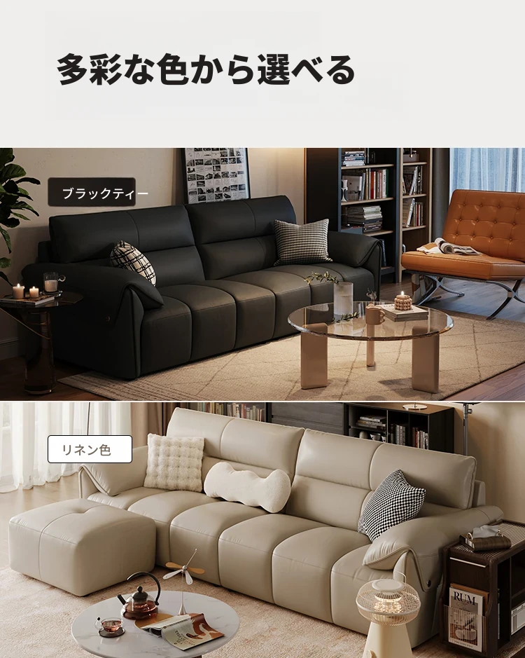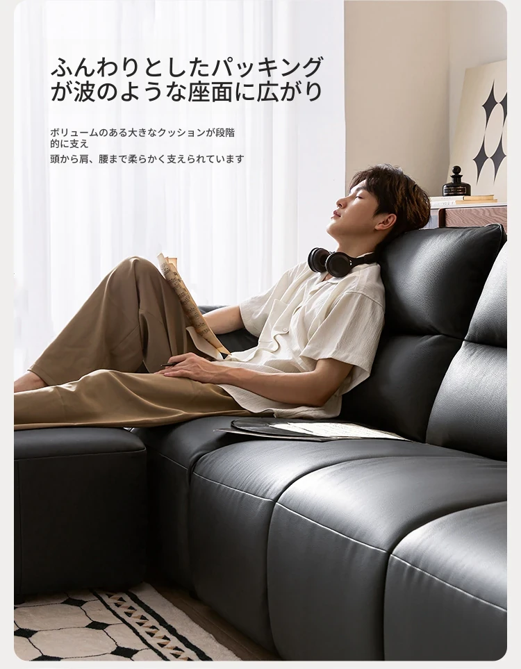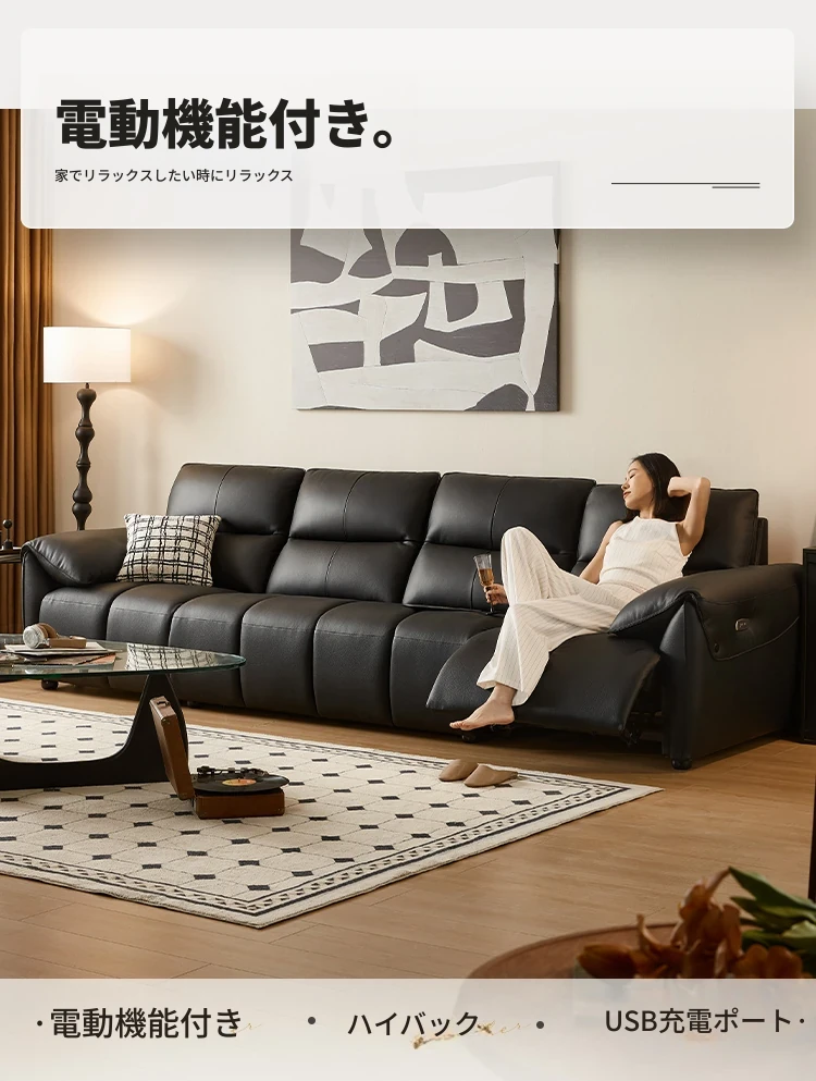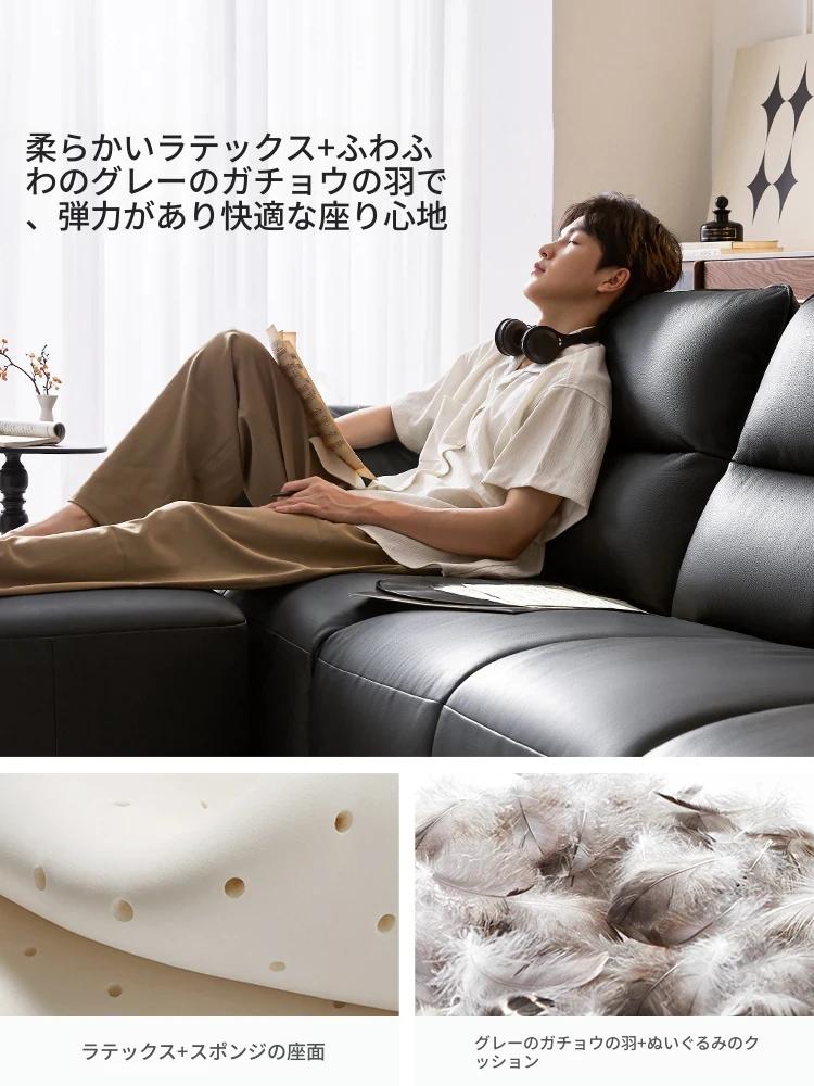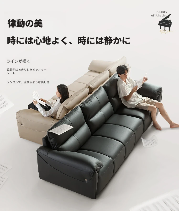 林氏家居の2024新作!高級感あふれるブラックレザーソファ、ピアノキー風デザインでリビングをスタイリッシュに演出。耐久性抜群、快適な座り心地をお約束します。