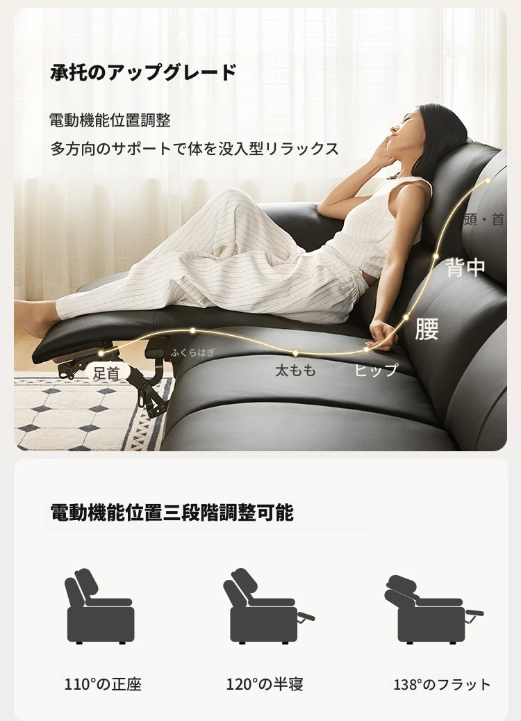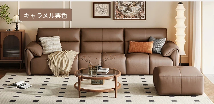 (17)【3.4メートル+フットレスト|キャラメルブラウン】加厚トップレザー