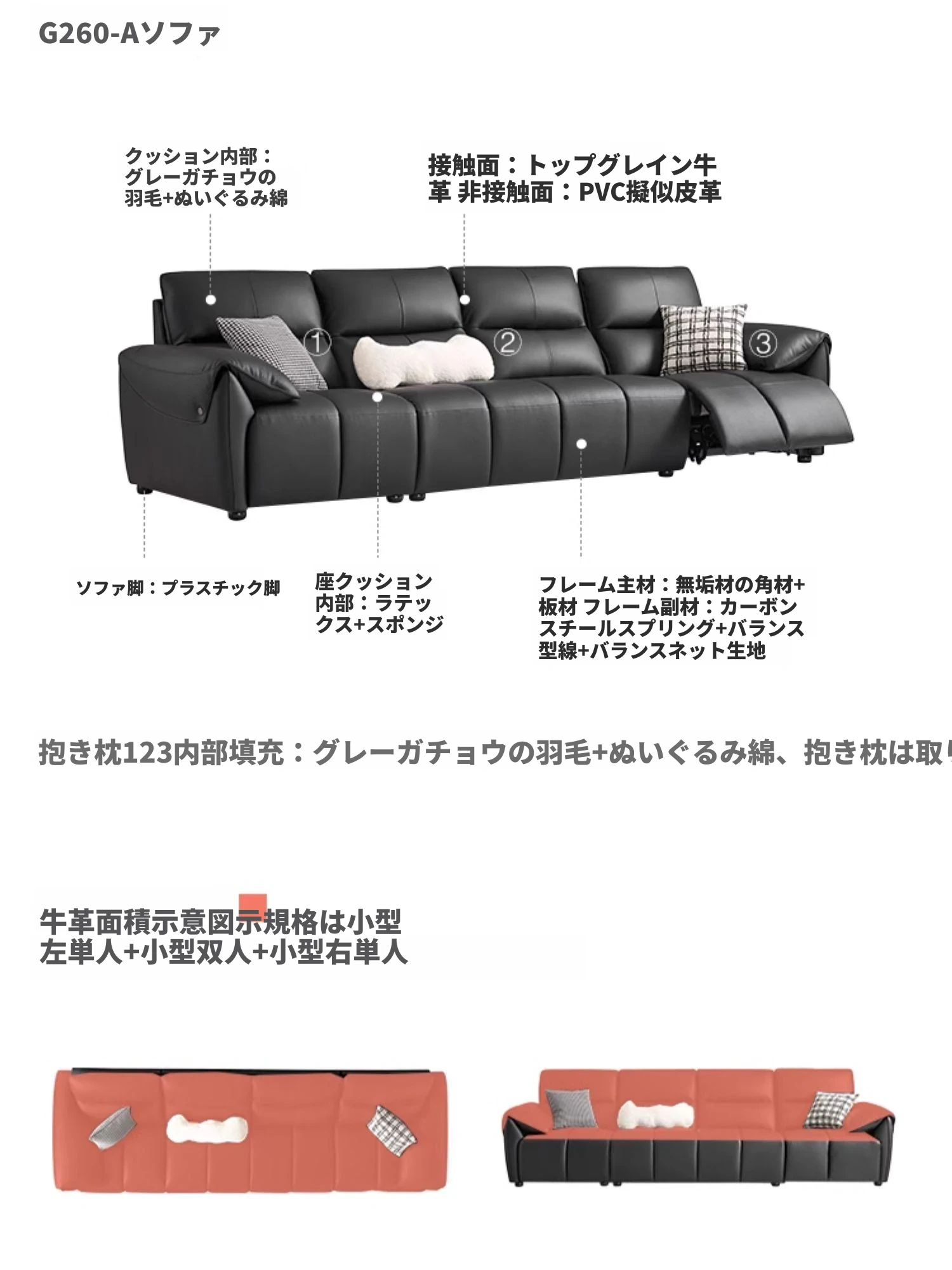 (2)【2.5メートル+フットレスト|ブラックティー】加厚トップレザー