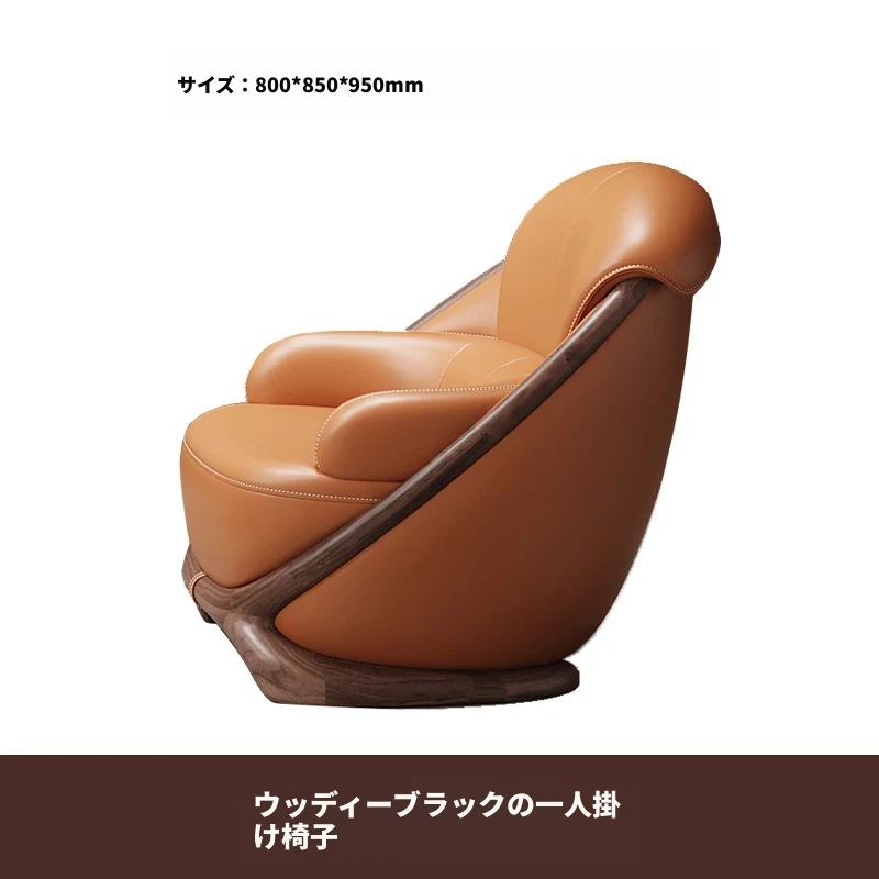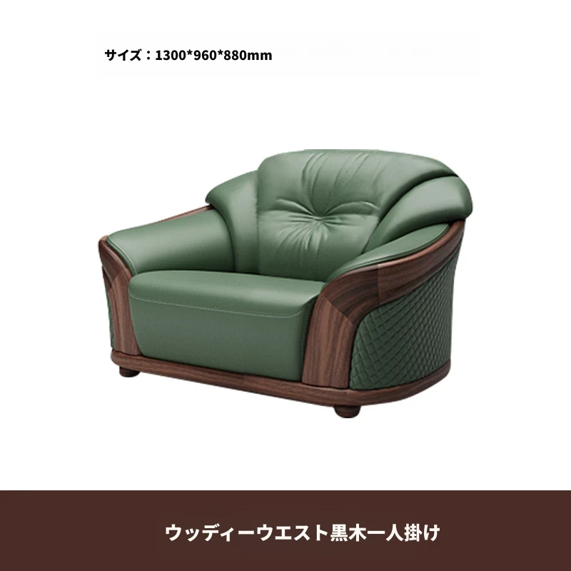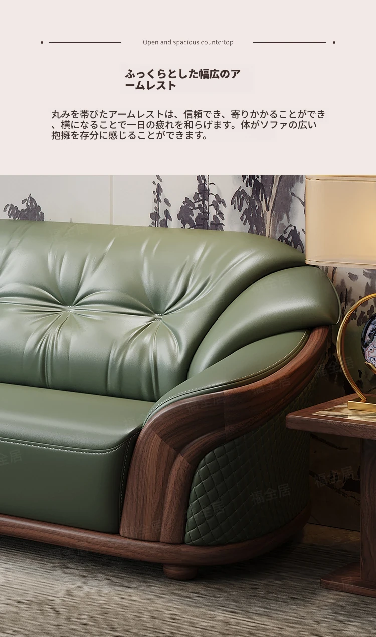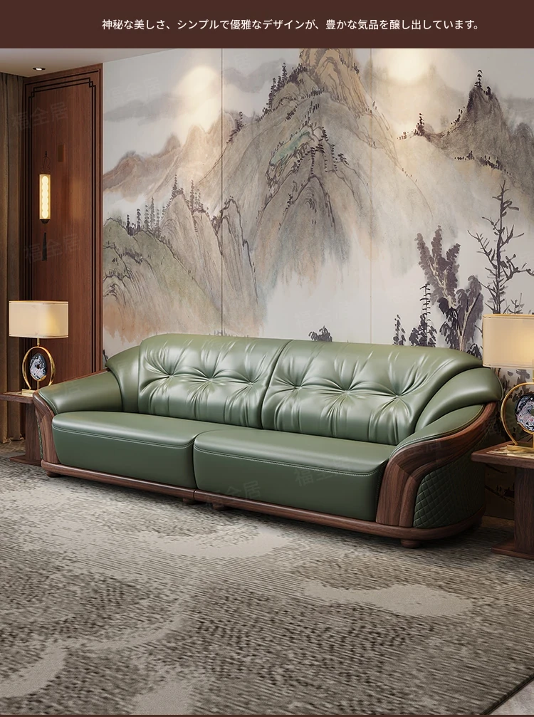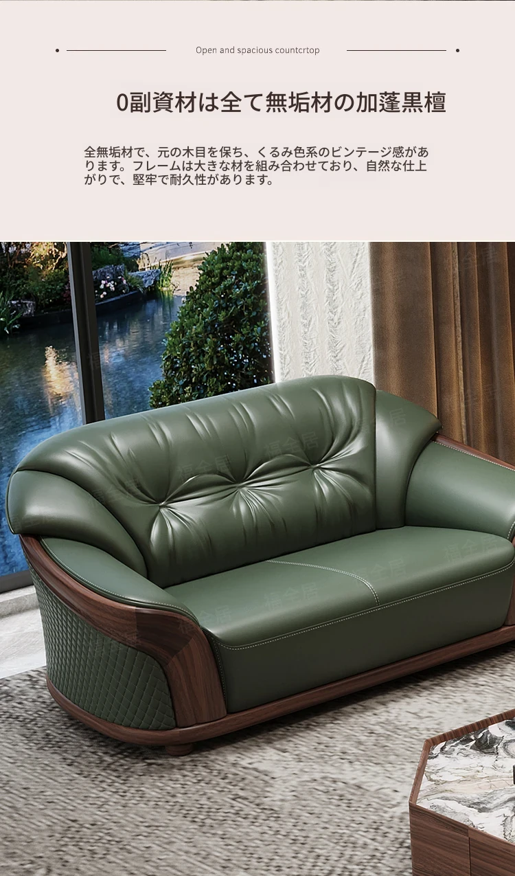 新中式ウッドテクスチャーの本革ソファー - 高級別荘向け、無垢の牛革使用、ラグジュアリーなブラックウォールナット色のコンビネーションソファー。大客リビングにぴったりの一品!