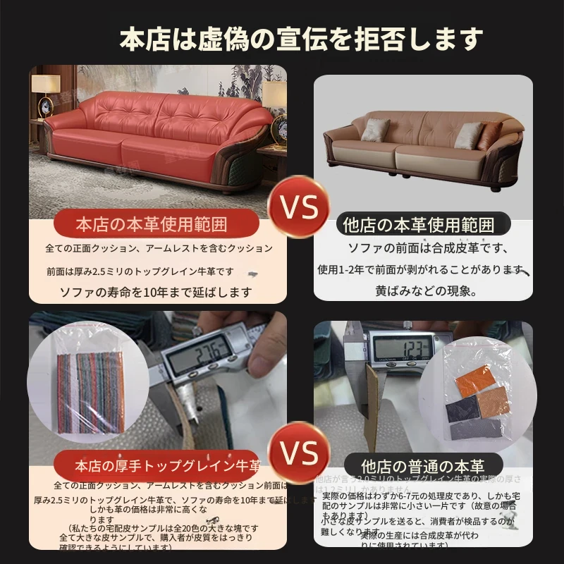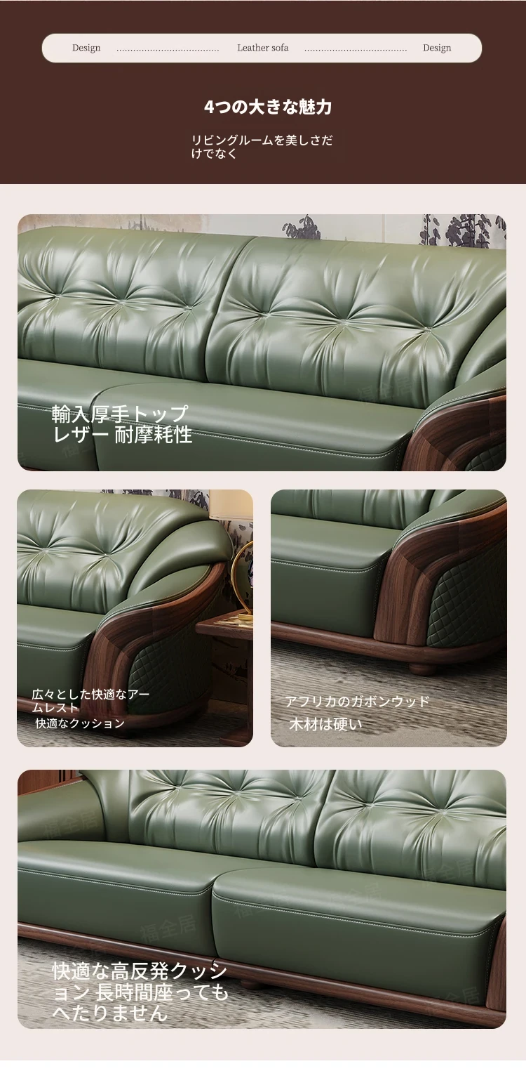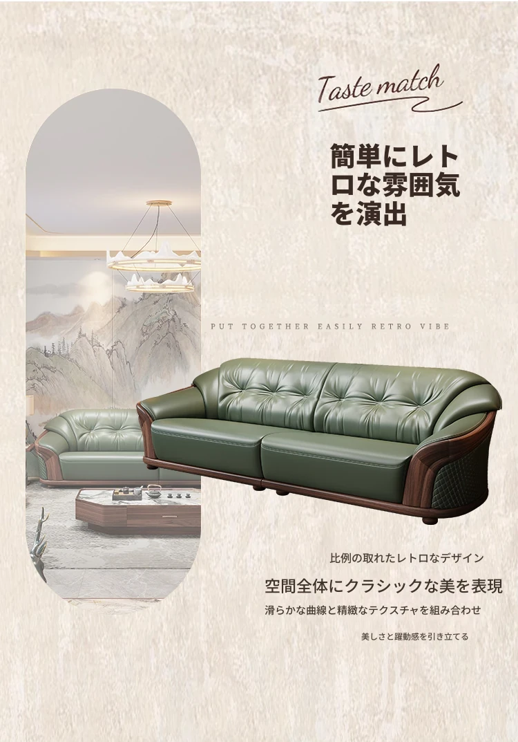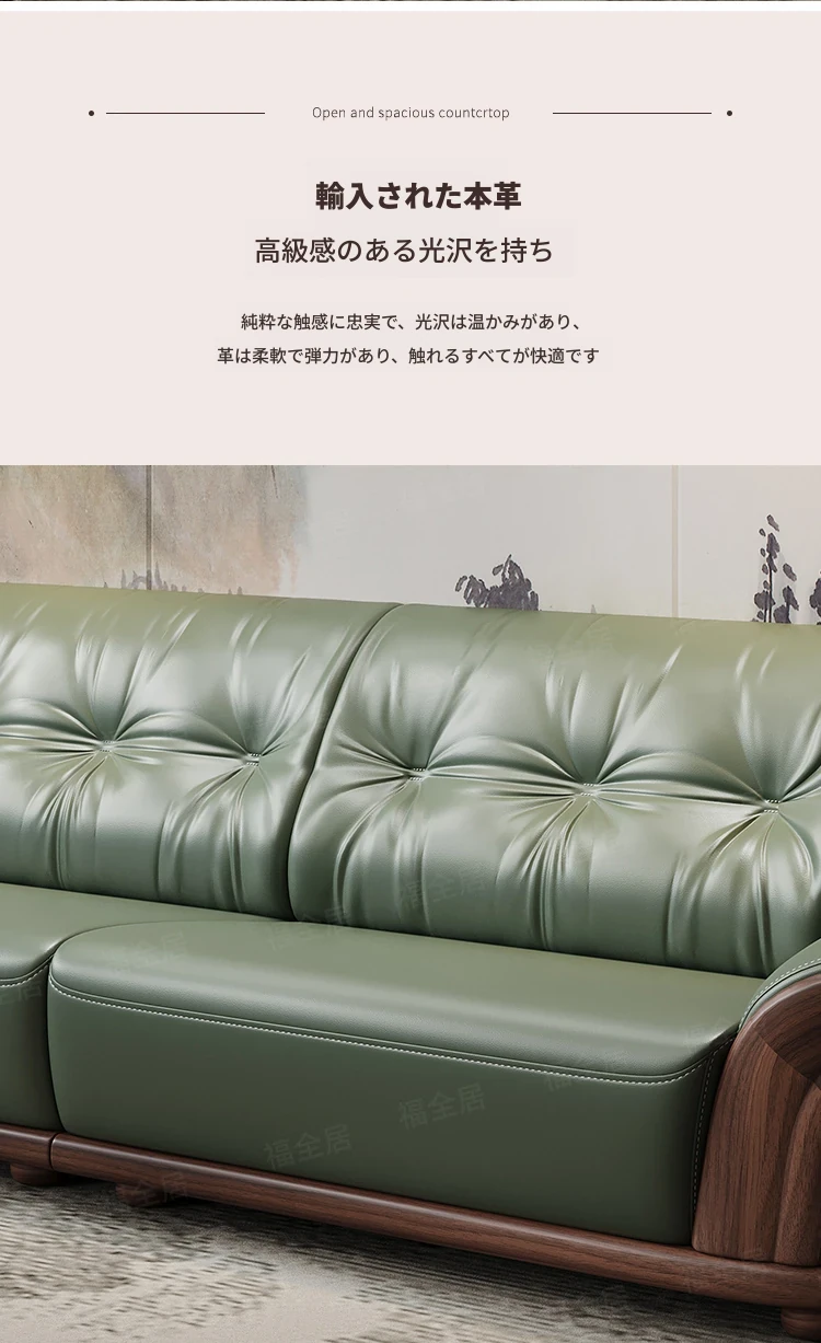 新中式ウッドテクスチャーの本革ソファー - 高級別荘向け、無垢の牛革使用、ラグジュアリーなブラックウォールナット色のコンビネーションソファー。大客リビングにぴったりの一品!