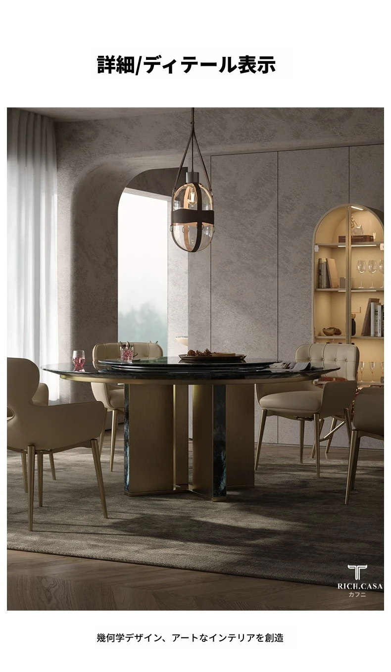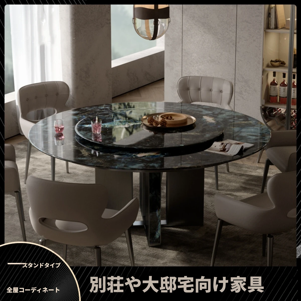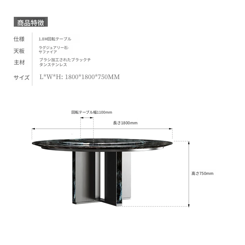 【天然ラグジュアリー石サファイア】1.80メートルダイニングテーブル(回転盤付き)