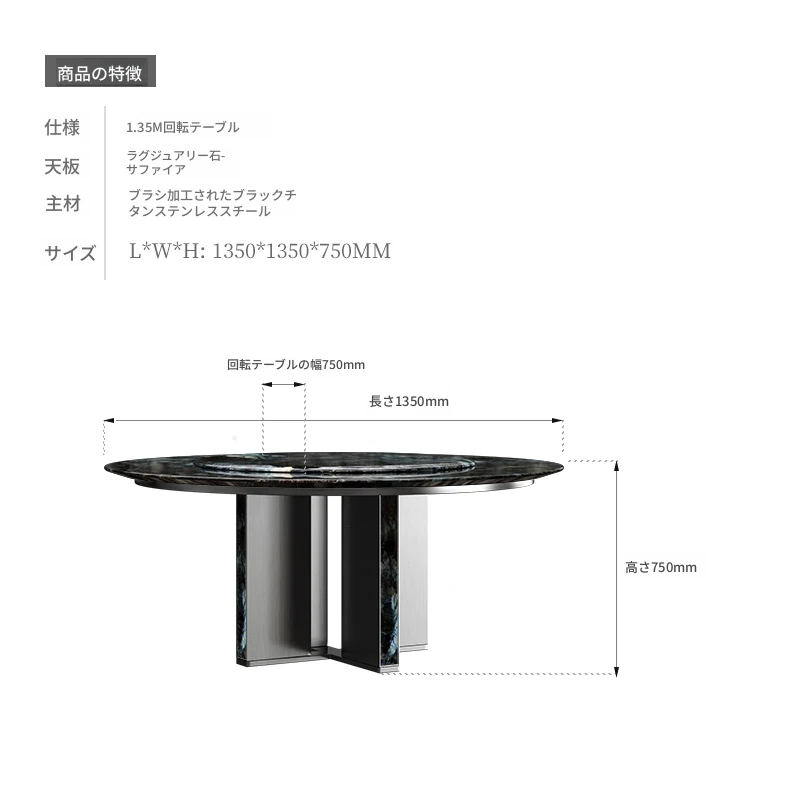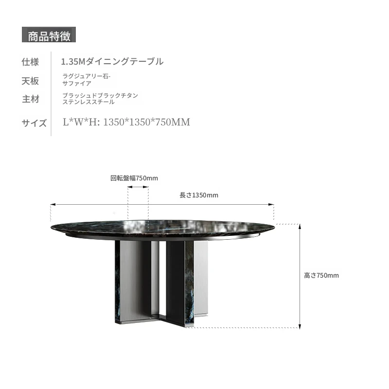 【天然ラグジュアリー石サファイア】1.35メートルダイニングテーブル(回転盤付き)