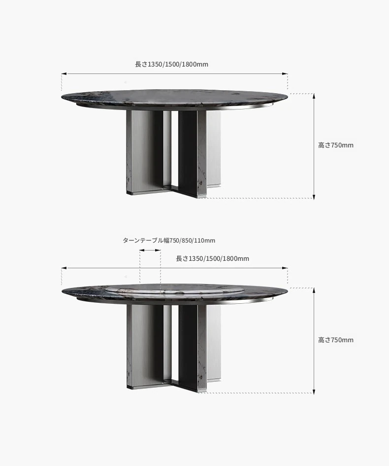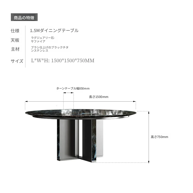 【天然ラグジュアリー石サファイア】1.50メートルダイニングテーブル(回転盤付き)