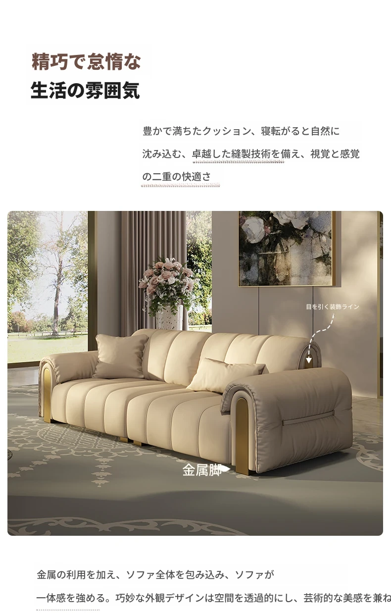 高級感溢れる軽奢ピアノキーソファー!全真皮使用のモダンミニマルデザイン、上質な牛革を贅沢に使用した2025年新作。リビングを華やかに彩る、気品あふれる高級ソファーをお見逃しなく!