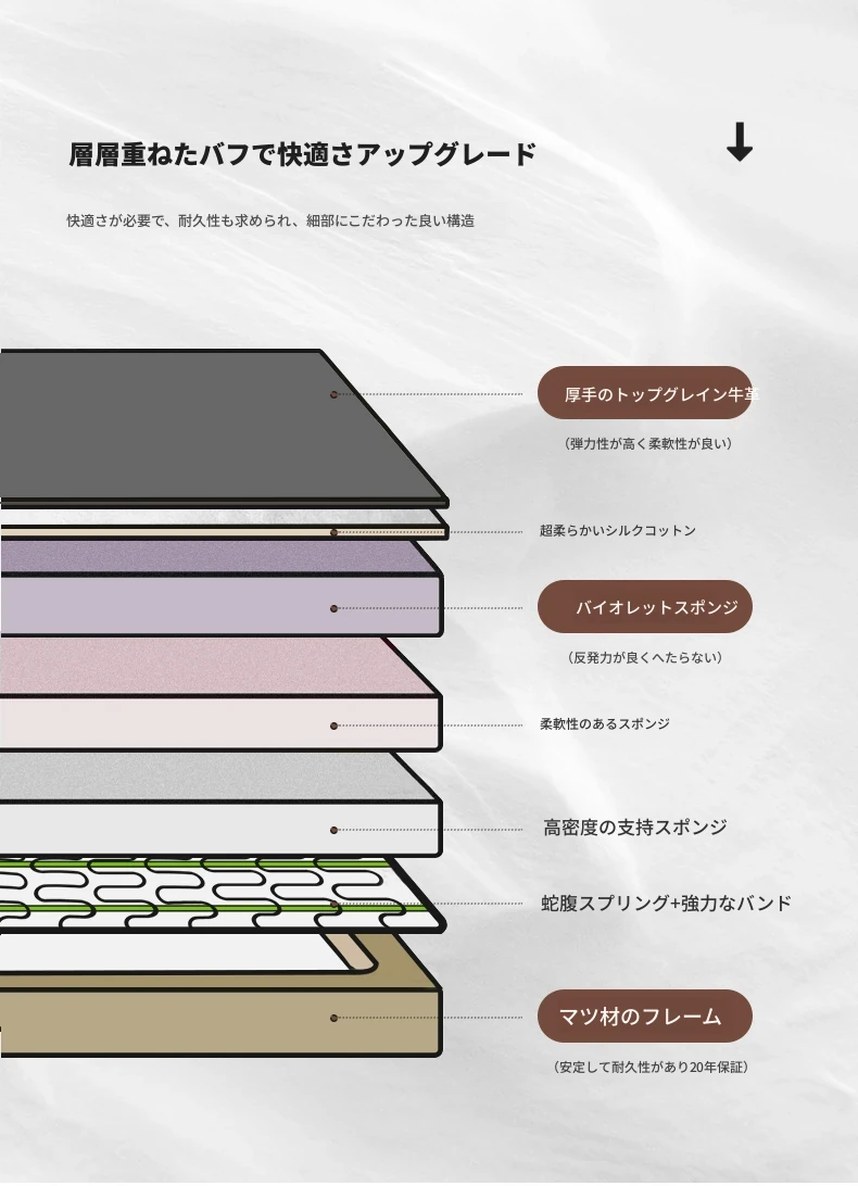 2.22メートル二人用/Sランク/細かい摔頭の牛革/バイオレットスポンジ