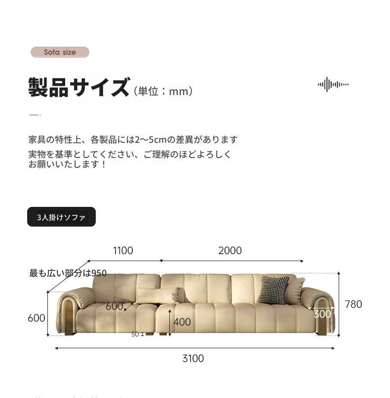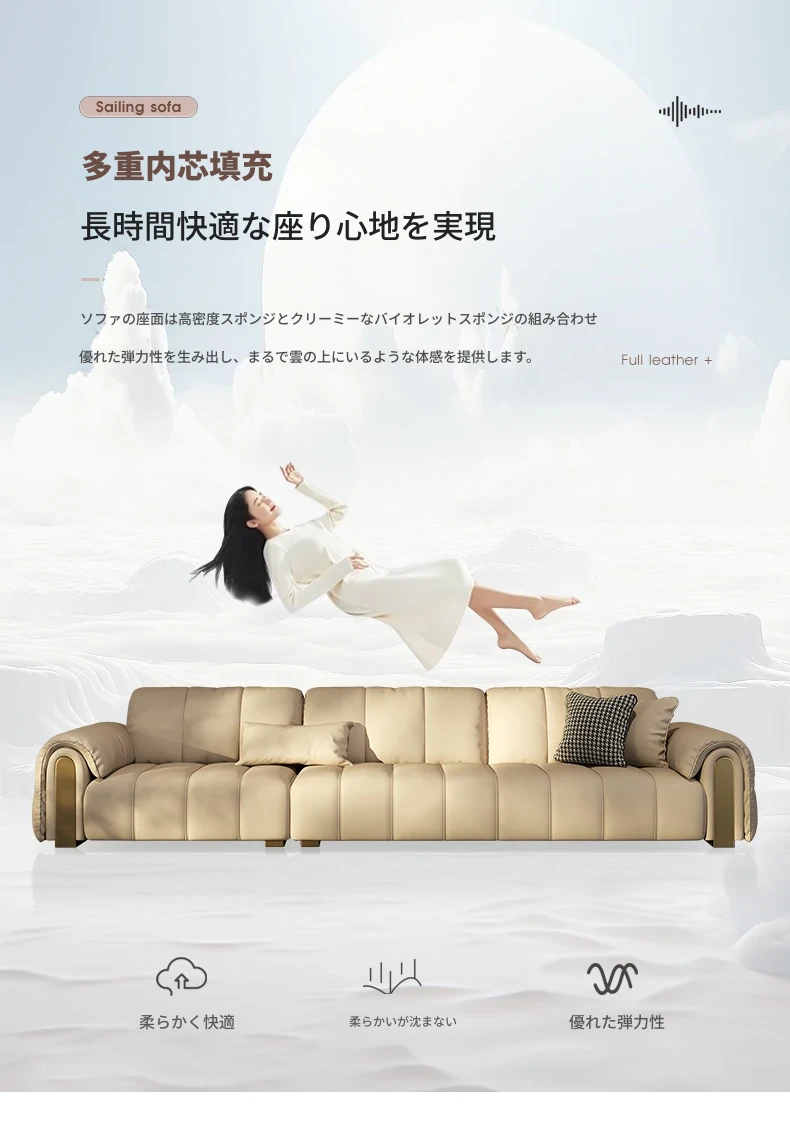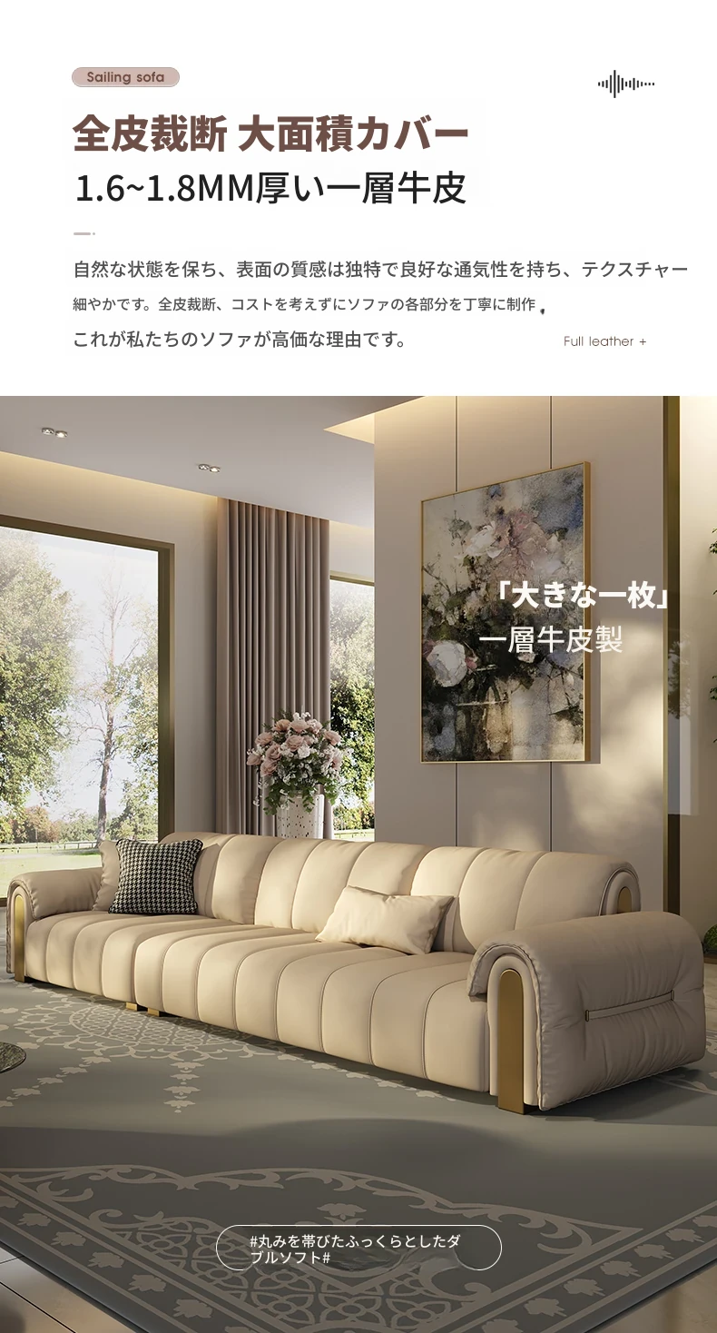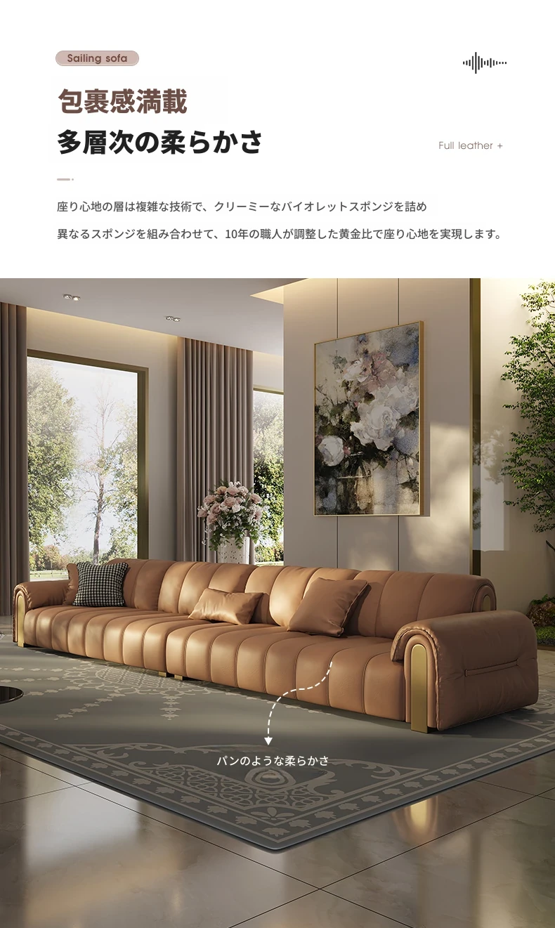 3.1メートル三人用/Sランク/細かい摔頭の牛革/バイオレットスポンジ
