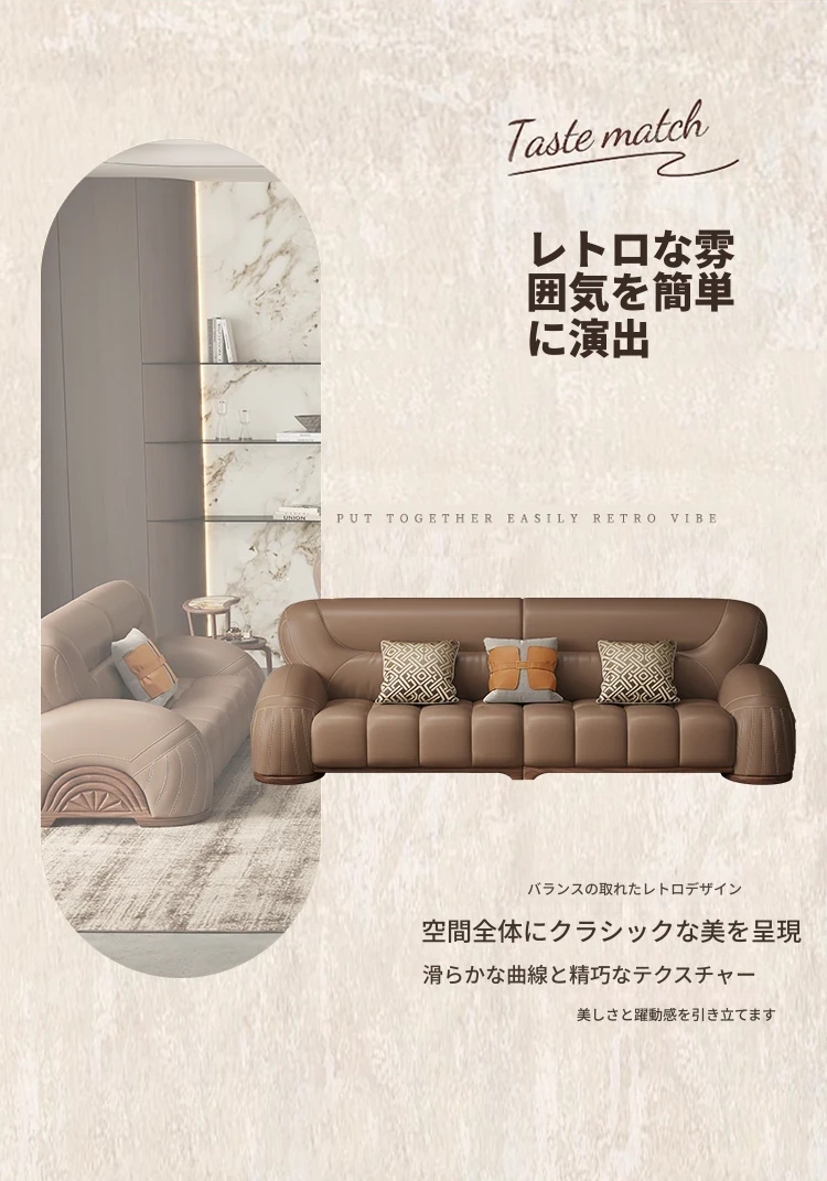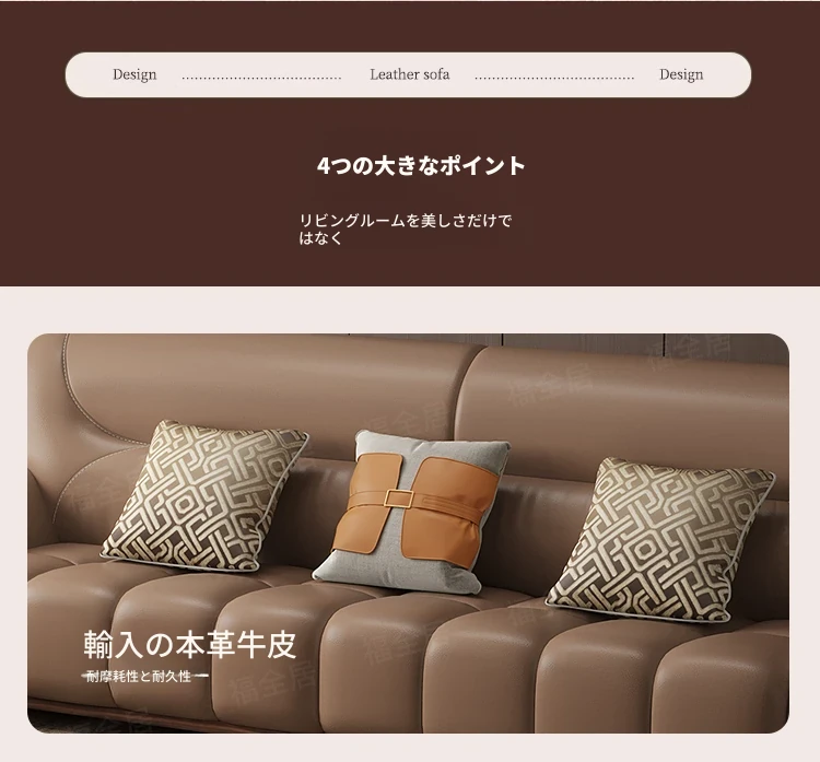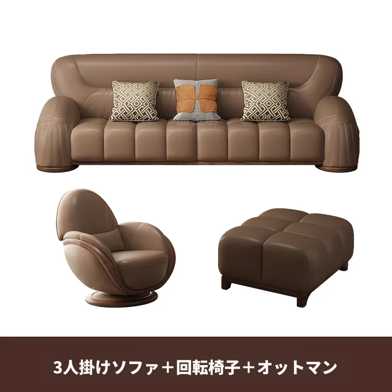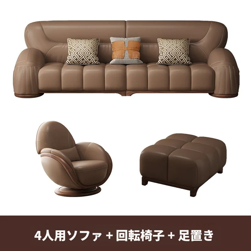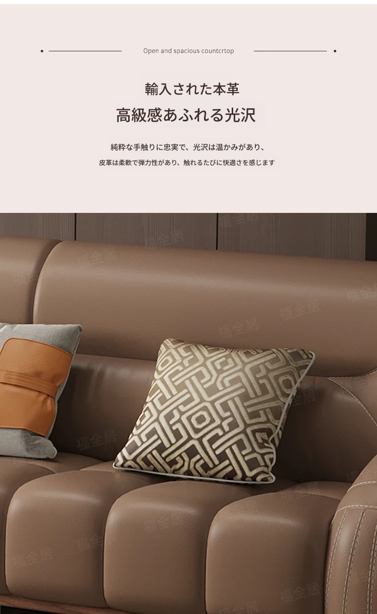 新中式デザインのブラックウォールナット無垢材使用!高品質本革製のストレートソファセット、モダンでシンプルなリビングに最適なウッディーな4人掛けソファ。贅沢な座り心地で、心安らぐ空間を演出します。
