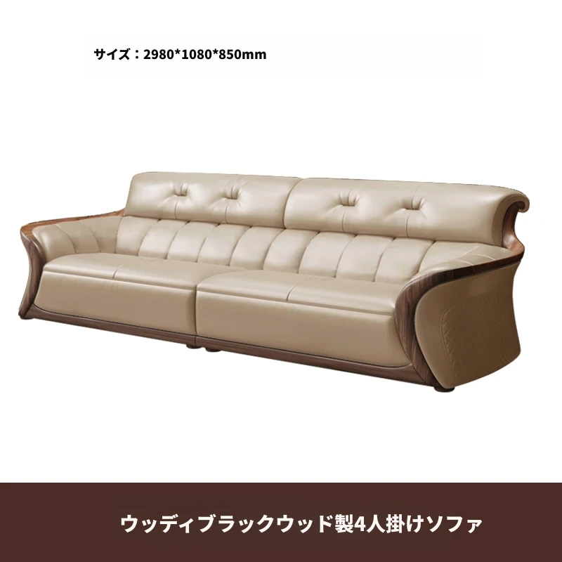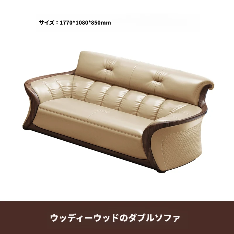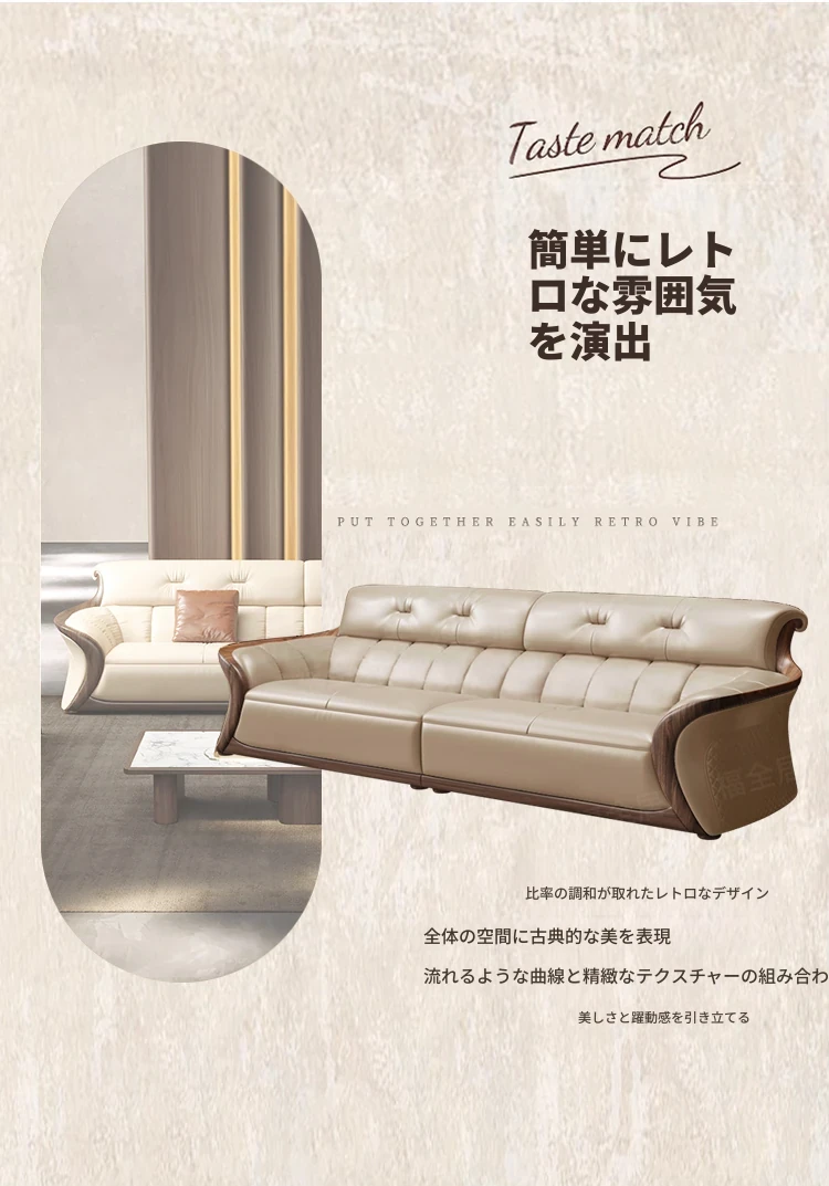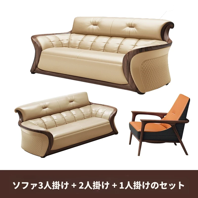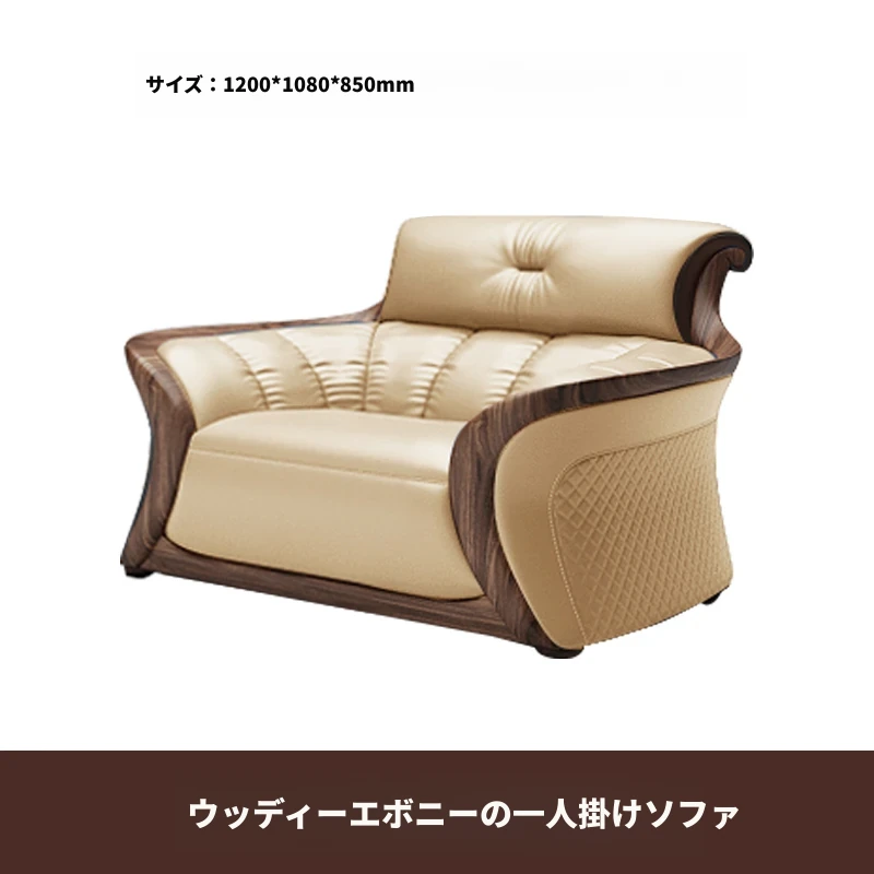 新中式ウーキン木革ソファリビングルーム用コンビネーション 高級本革小型モダンシンプル黒胡桃色 - スタイリッシュで洗練された空間を演出する、贅沢な座り心地を実現!