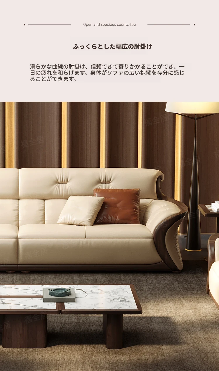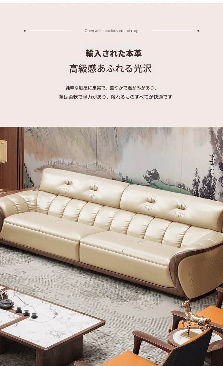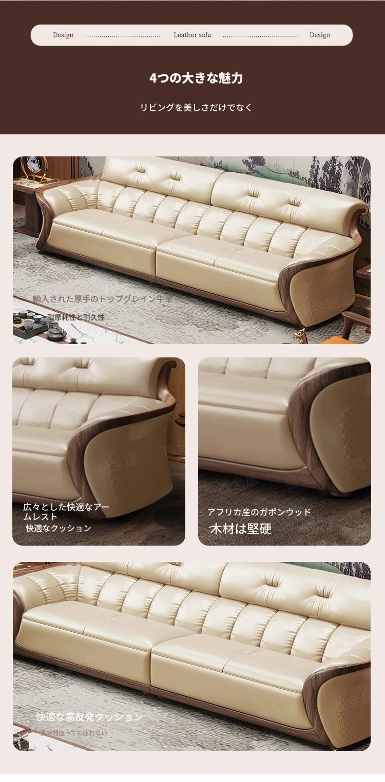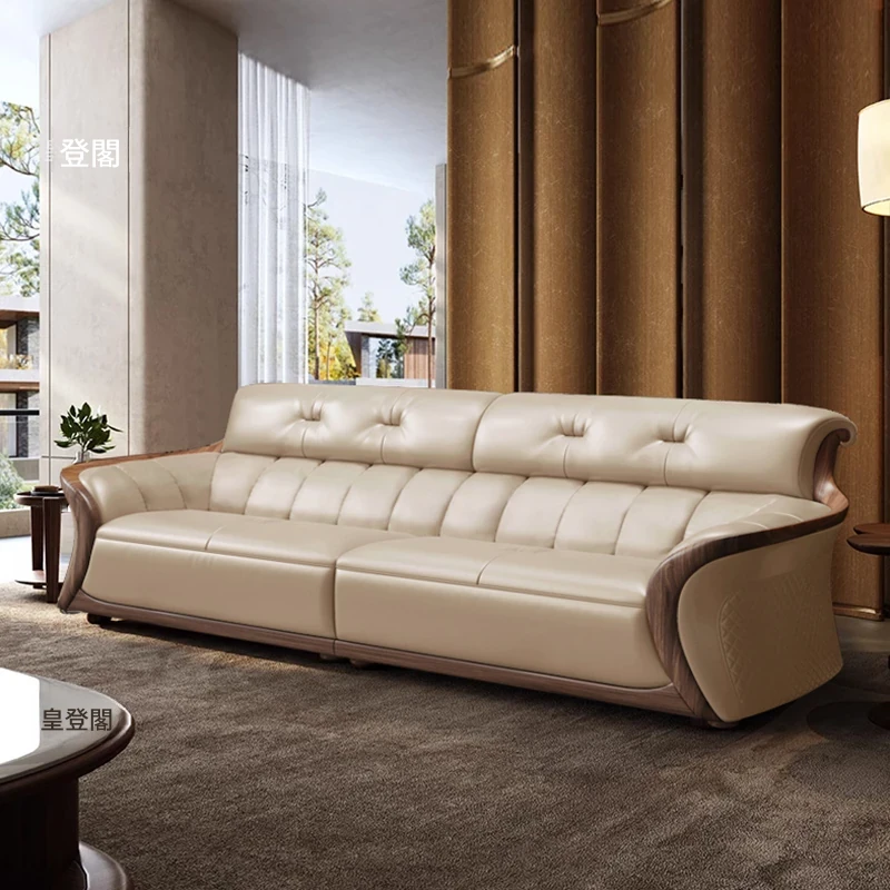 新中式ウーキン木革ソファリビングルーム用コンビネーション 高級本革小型モダンシンプル黒胡桃色 - スタイリッシュで洗練された空間を演出する、贅沢な座り心地を実現!