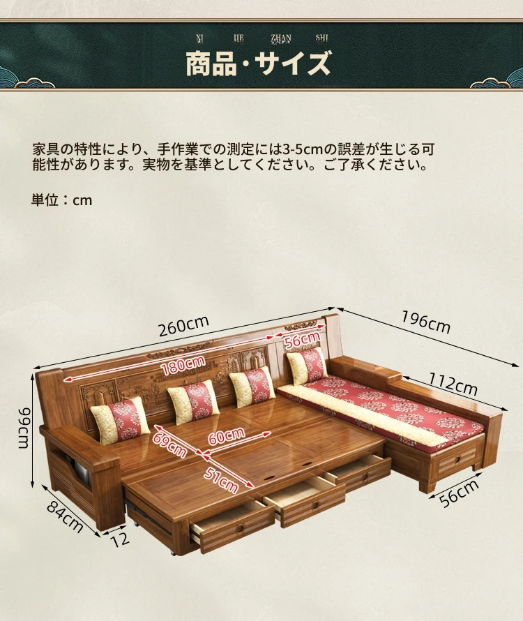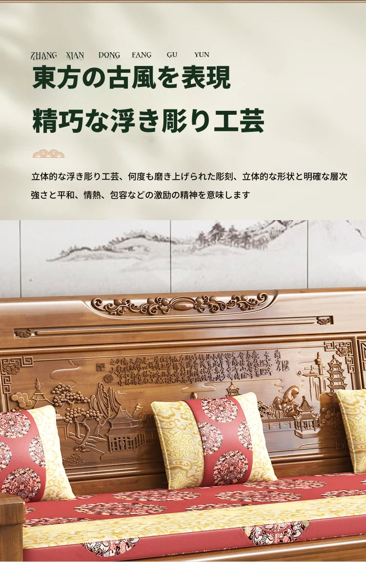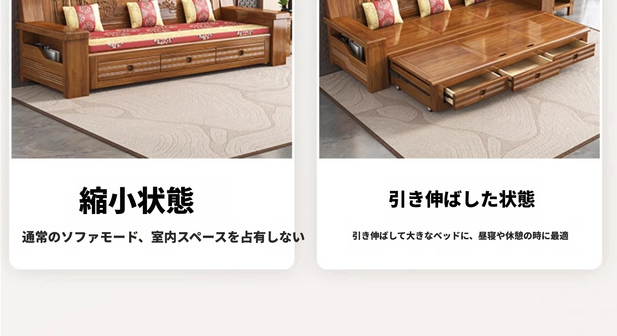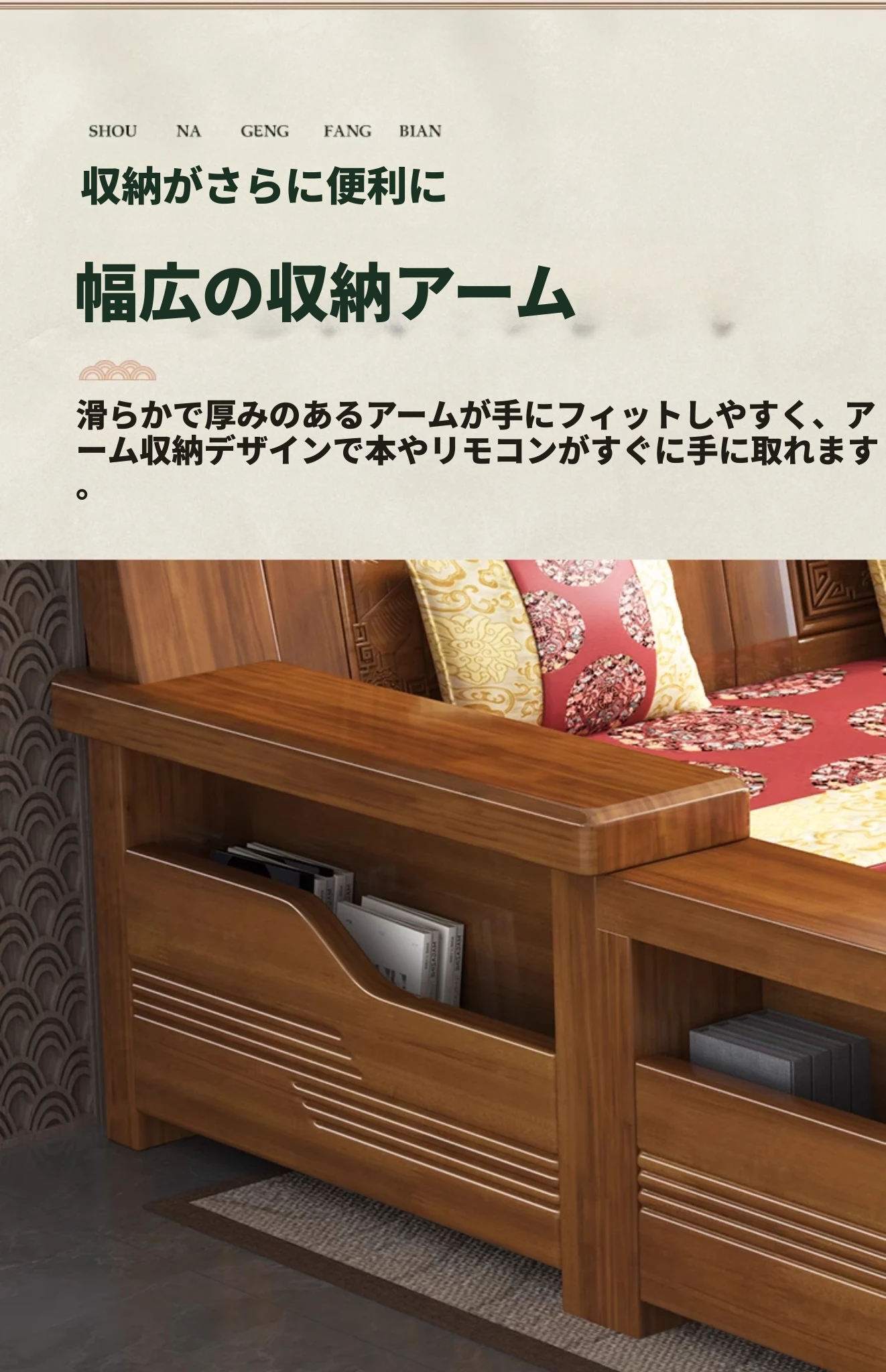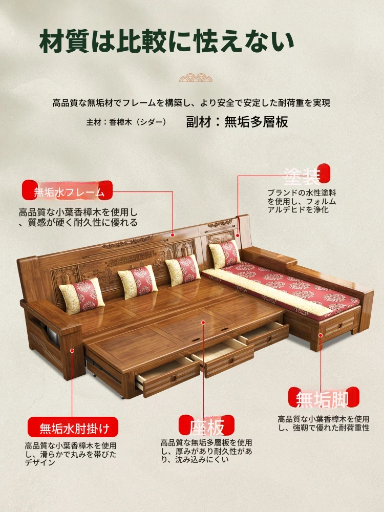 実木製ソファベッド 折りたたみ式 二用途 リビング 小型住宅向け 中式モダン ストレージ機能付き 香樟木製 伸縮式ソファベッドで快適な空間を実現!