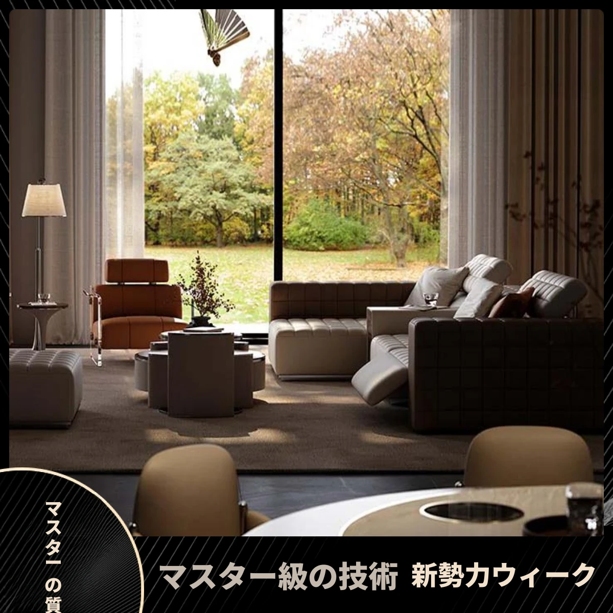 モダンでシンプルなデザインの電動機能付き真皮モジュラーソファーセット - スマートなリビング空間を演出するデザイナーズアイテム!快適さとスタイルを両立させた新しい生活提案。