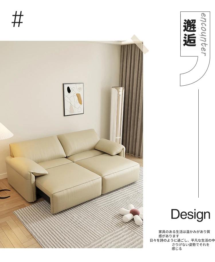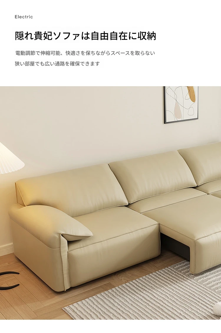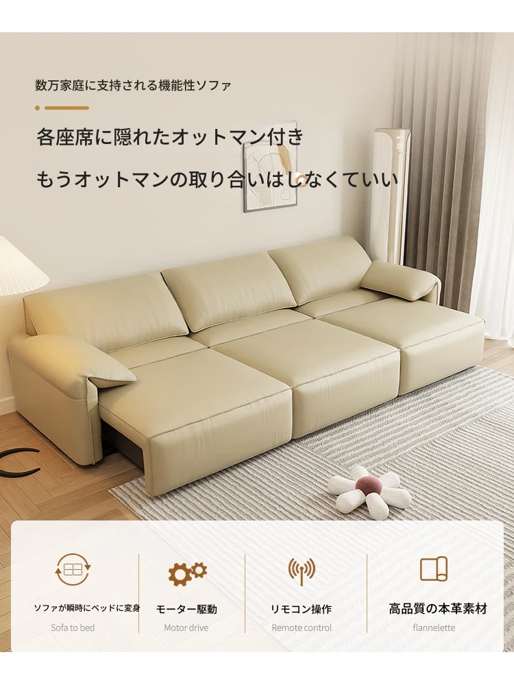 モダンでシンプルな電動伸縮ソファベッド - 高級感あふれるイタリアンスタイル、小さなリビングにもぴったりな本革製!快適な寝心地とスタイリッシュなデザインで、あなたの空間を一新します。