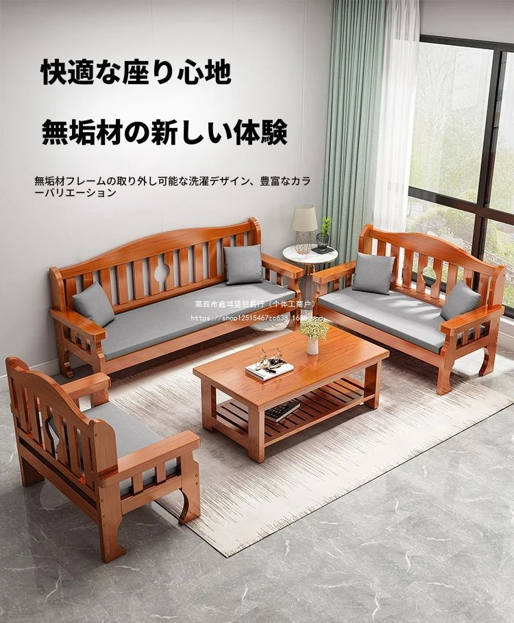 現代的なミニマリズムを感じる!全てが無垢材で作られた3人掛けソファ FZRコンビネーション、田舎風の新しい中華スタイルリビングにぴったりの木製家具です。快適さとスタイルを兼ね備えた一品をお見逃しなく!