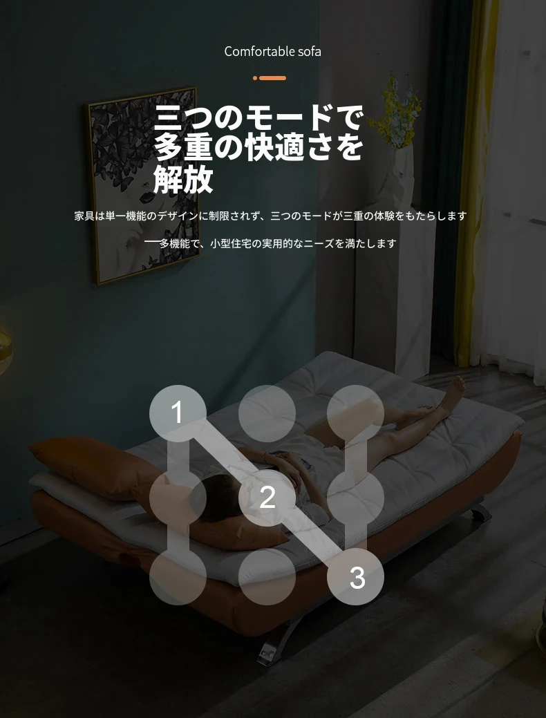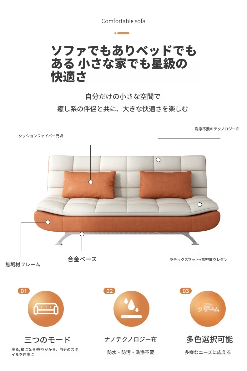 最新の多機能折りたたみソファベッド - 小さなスペースに最適なシンプルでモダンなデザイン!テクノロジー布使用でお手入れ簡単、二人掛けとしても活躍します。快適なリビング空間を演出しましょう!
