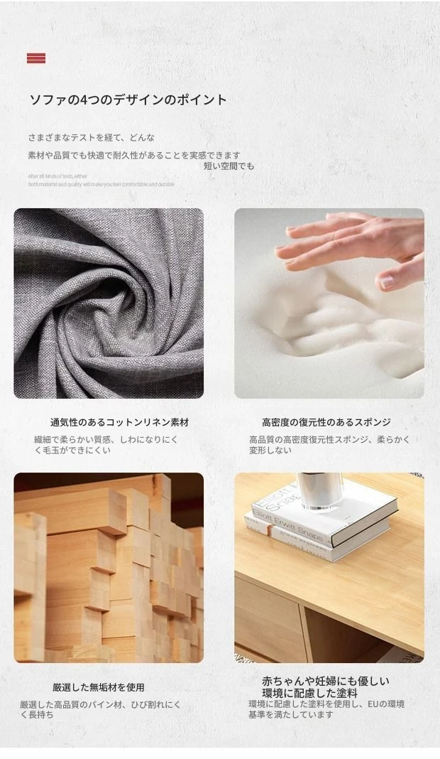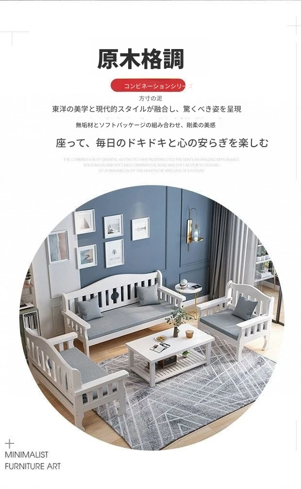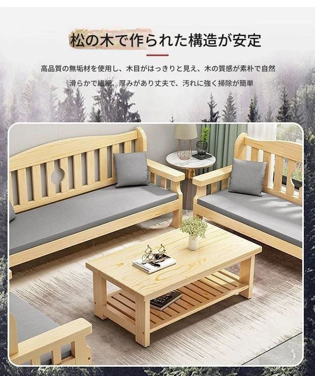 シンプルなデザインの中実木ソファセット - 小型リビングにぴったりな3人掛けのモダンな村長椅子。快適な背もたれで、居心地の良い空間を演出します。