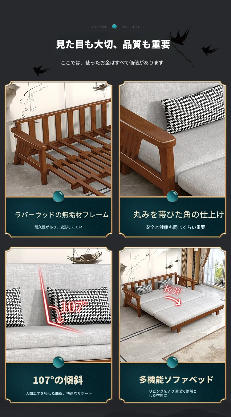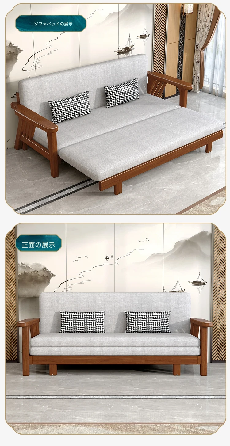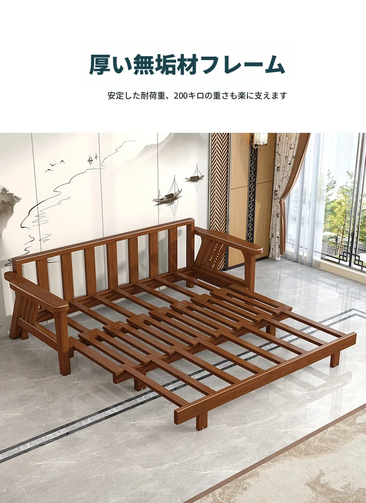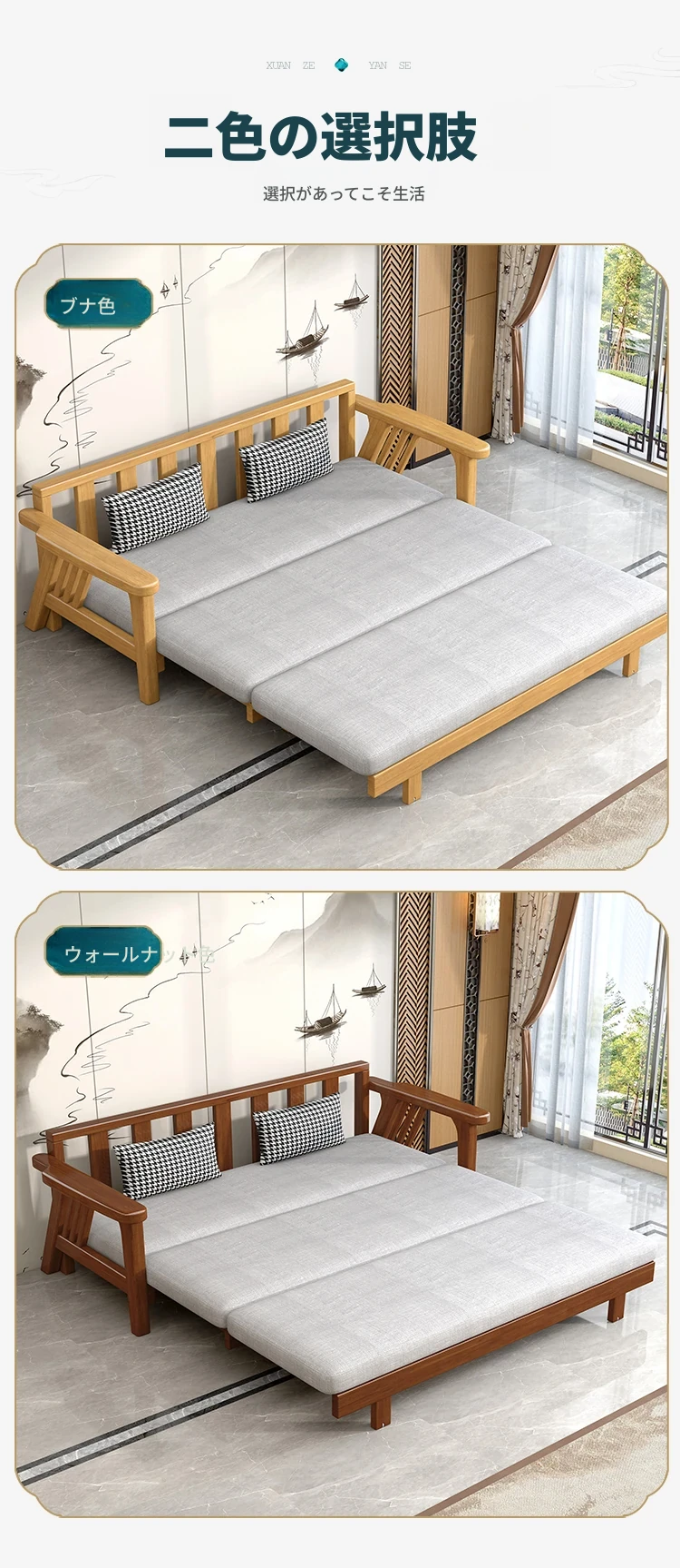 全実木製ソファベッド - スペースを有効活用!折りたたみ式で伸縮可能、コンパクトな小型住宅に最適。リラックスしたい時も、ゲストを迎える時も、これ一台で快適な空間を実現します!