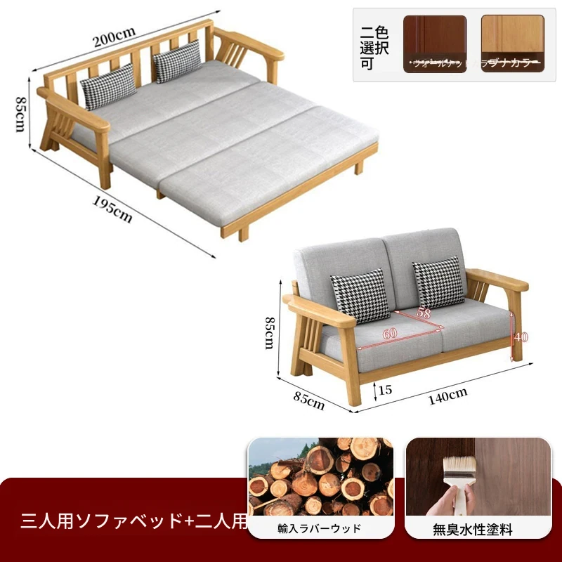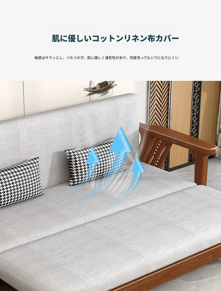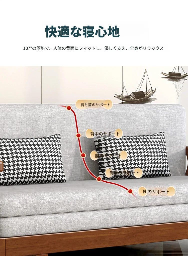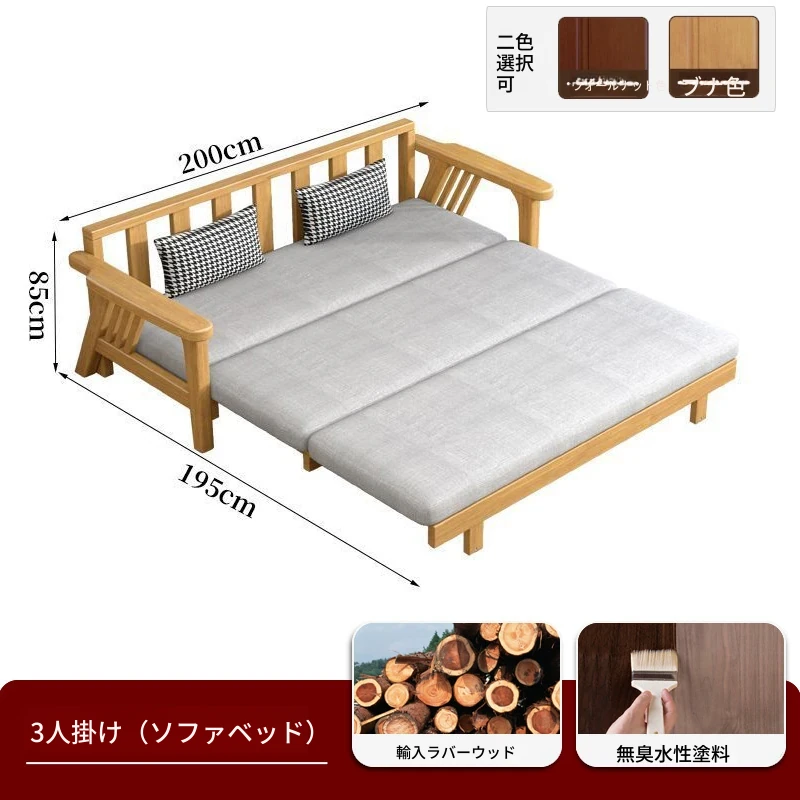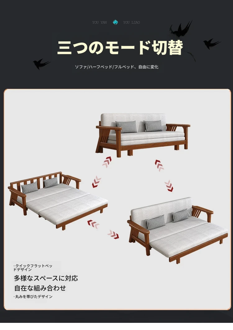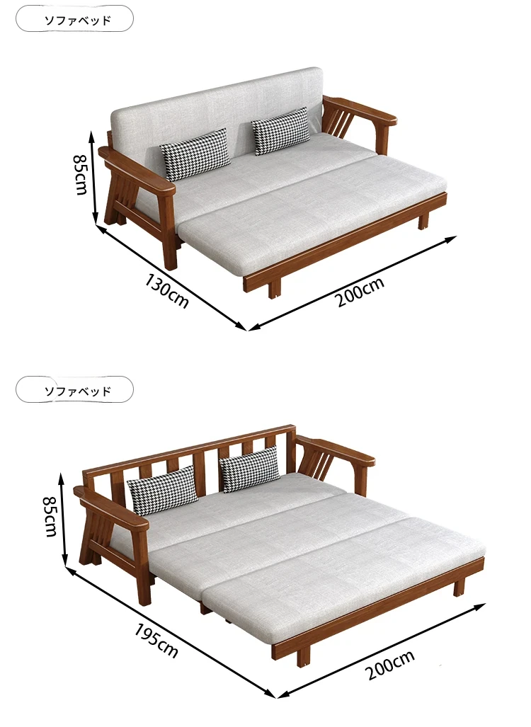 全実木製ソファベッド - スペースを有効活用!折りたたみ式で伸縮可能、コンパクトな小型住宅に最適。リラックスしたい時も、ゲストを迎える時も、これ一台で快適な空間を実現します!