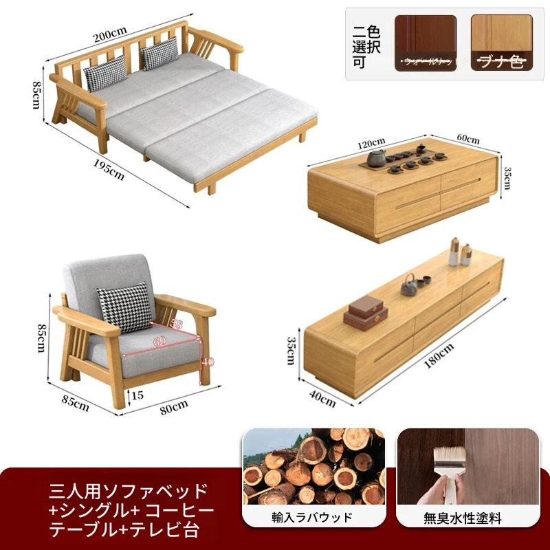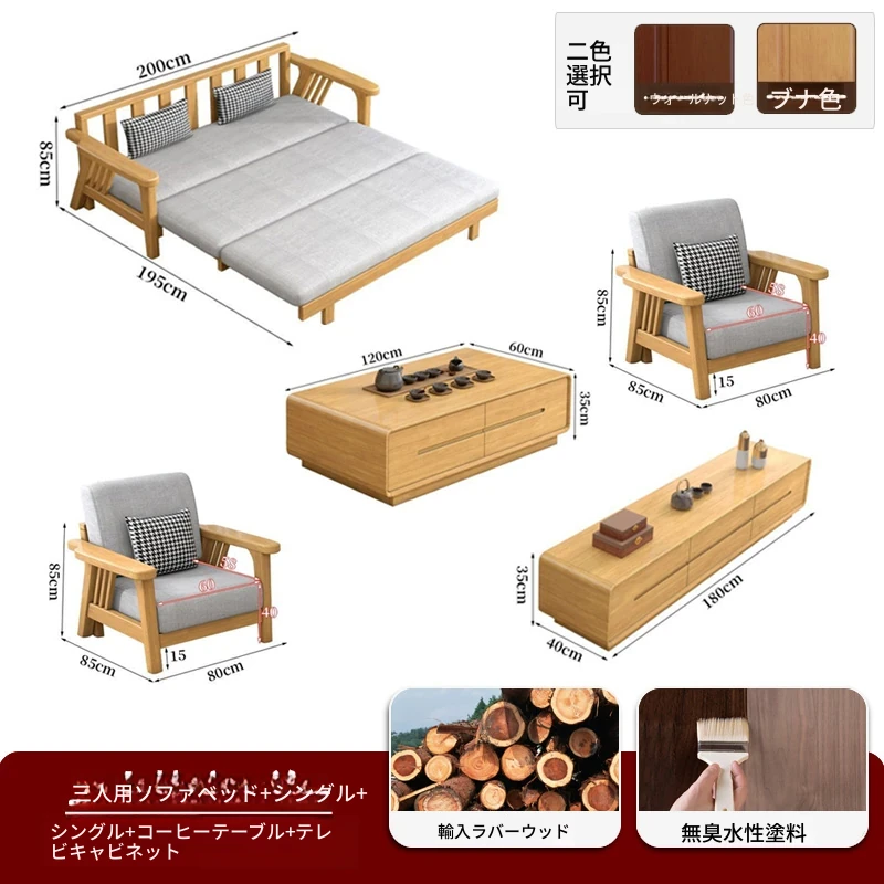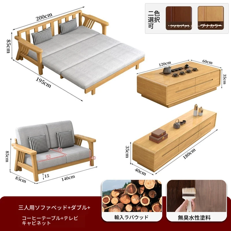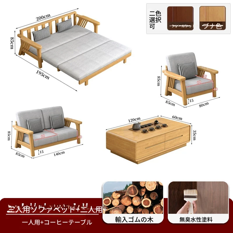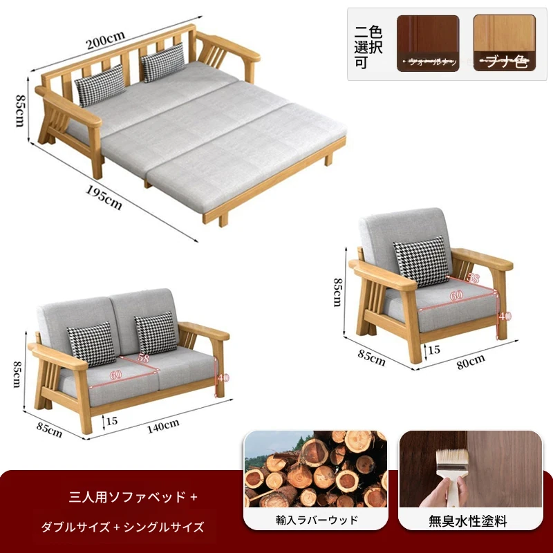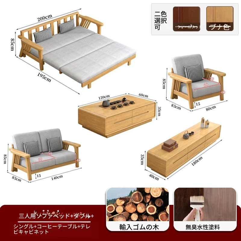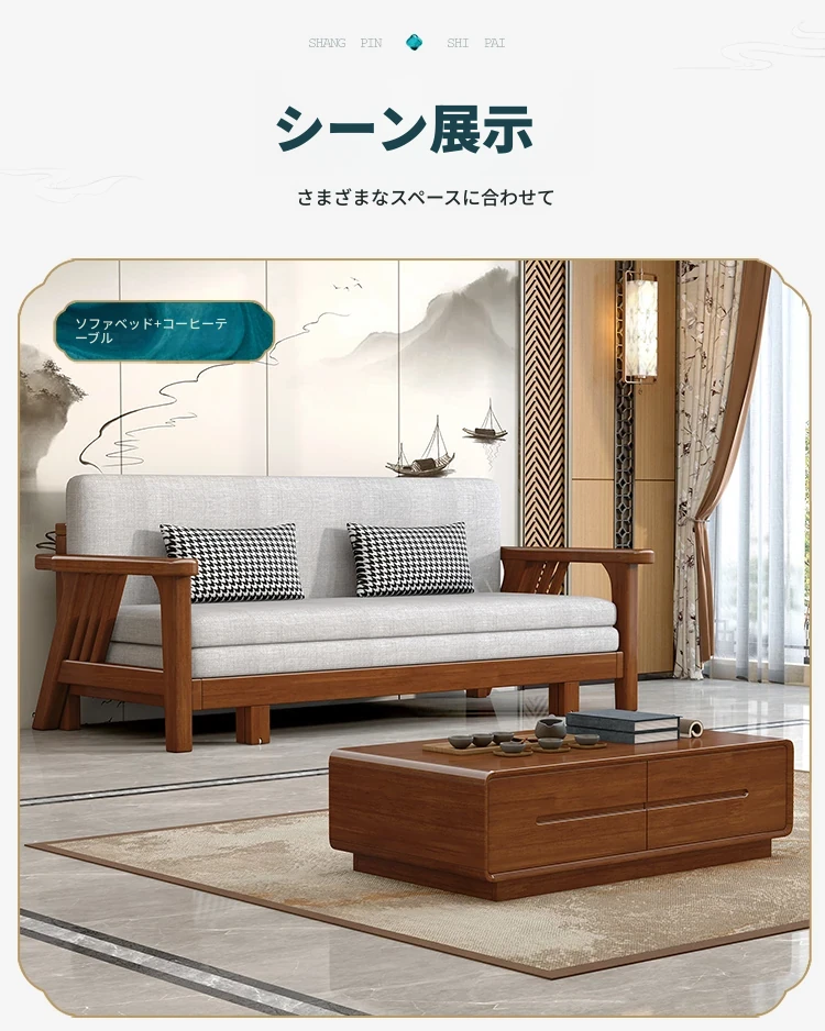 全実木製ソファベッド - スペースを有効活用!折りたたみ式で伸縮可能、コンパクトな小型住宅に最適。リラックスしたい時も、ゲストを迎える時も、これ一台で快適な空間を実現します!