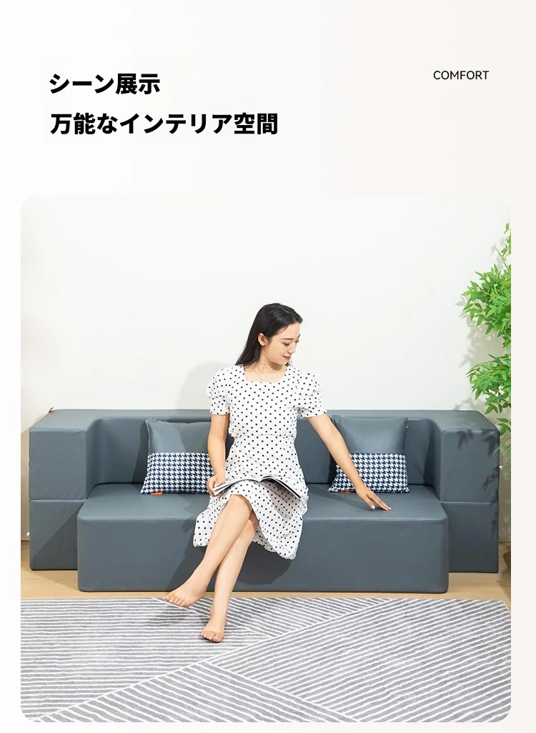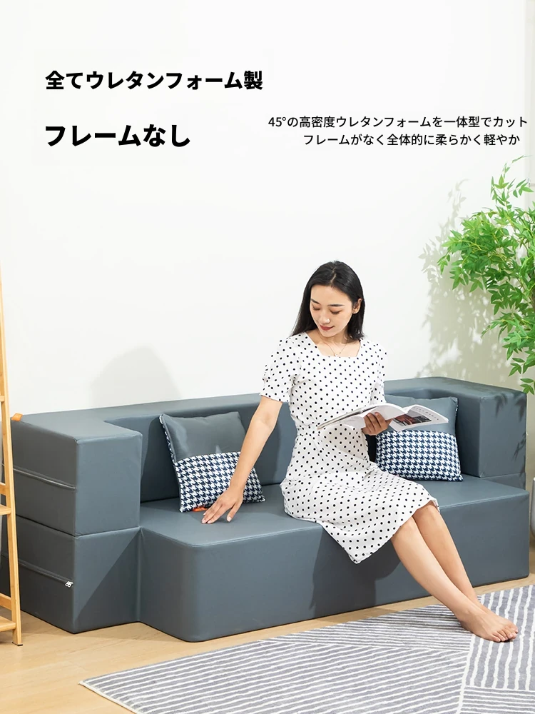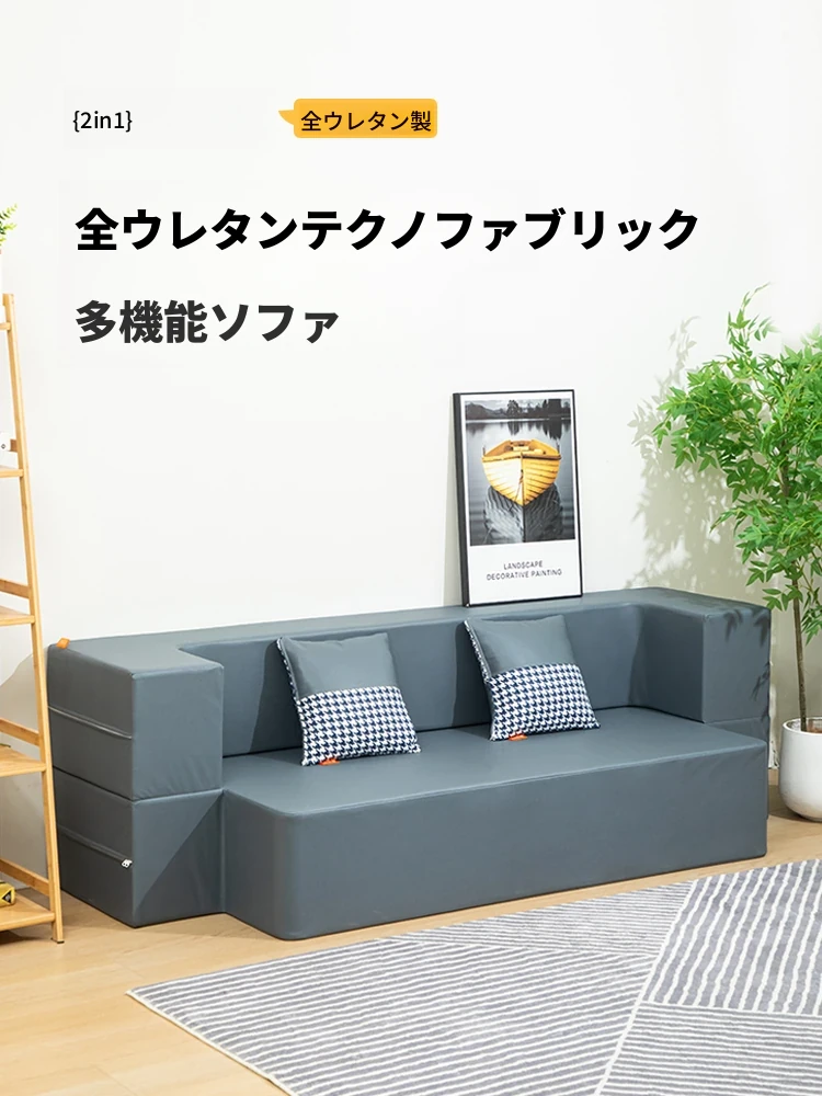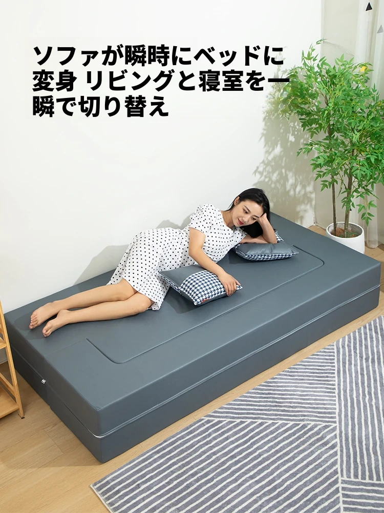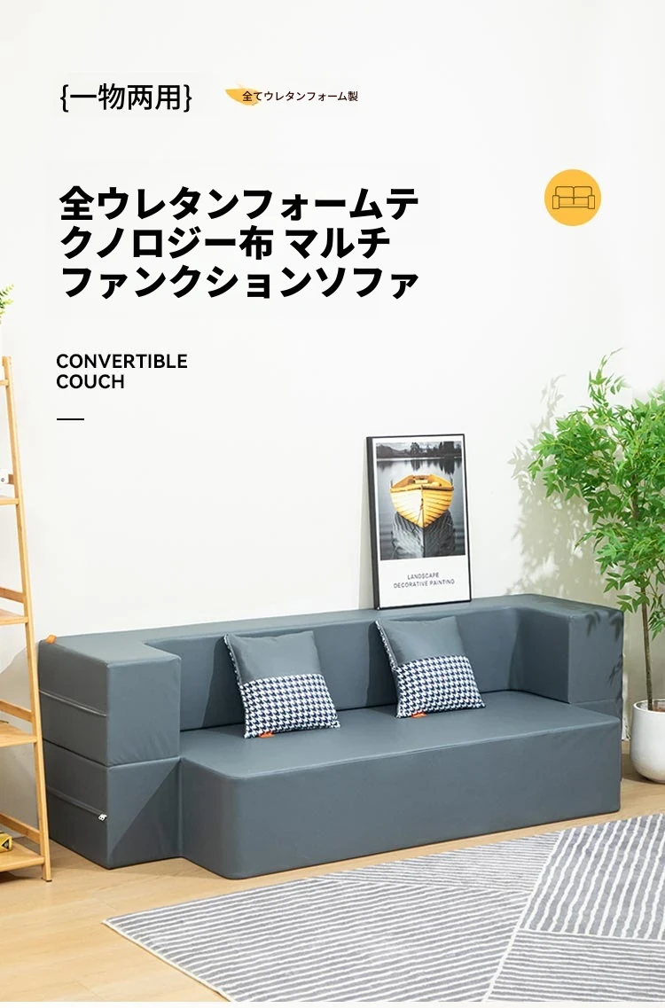 テクノロジー布使用の折りたたみ2WAYソファベッド!オフィスやリビングに最適な多機能ソファ。小さなスペースにもぴったりなシンプルで快適なデザイン。リラックスできるlazy sofa!