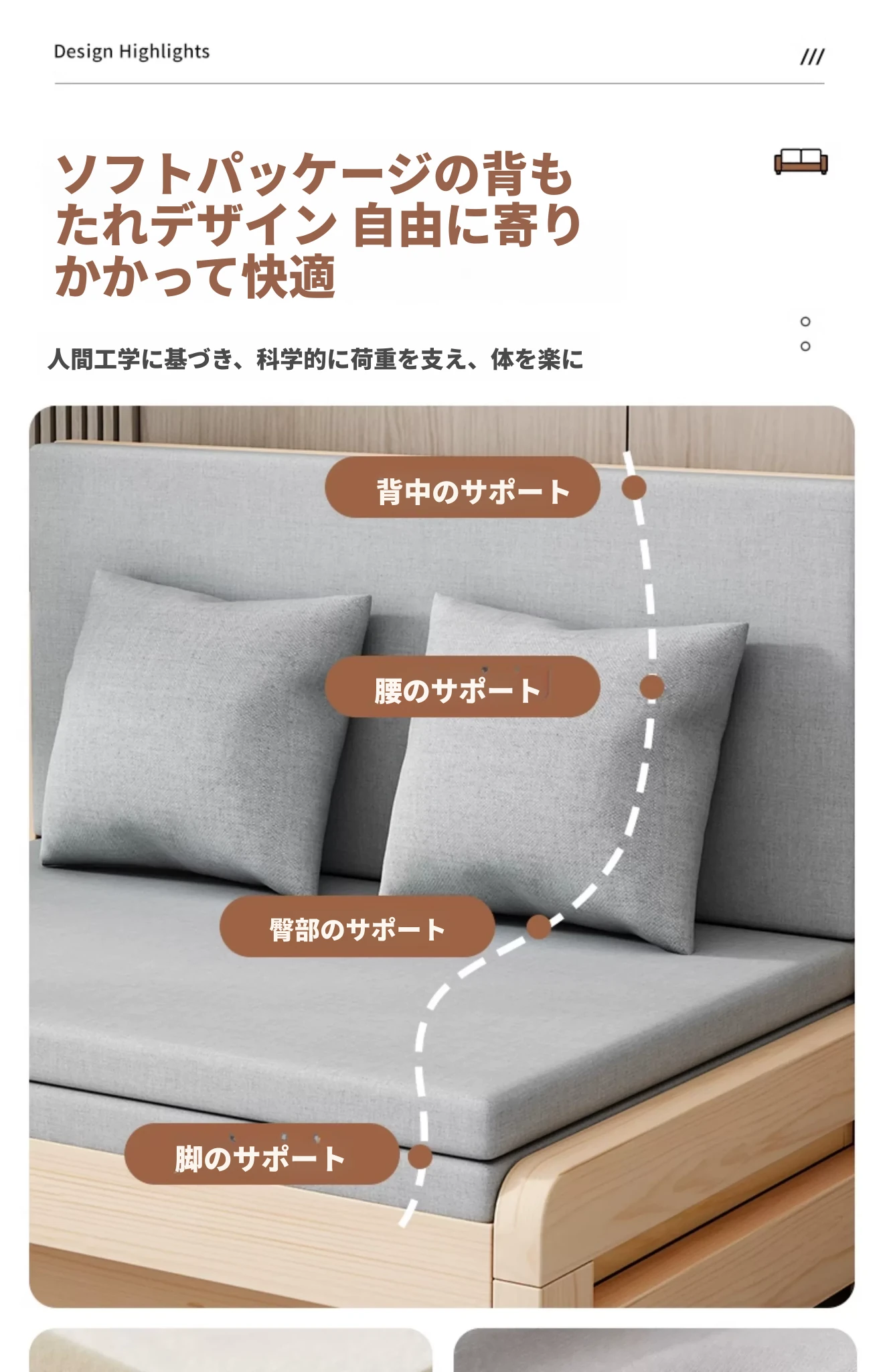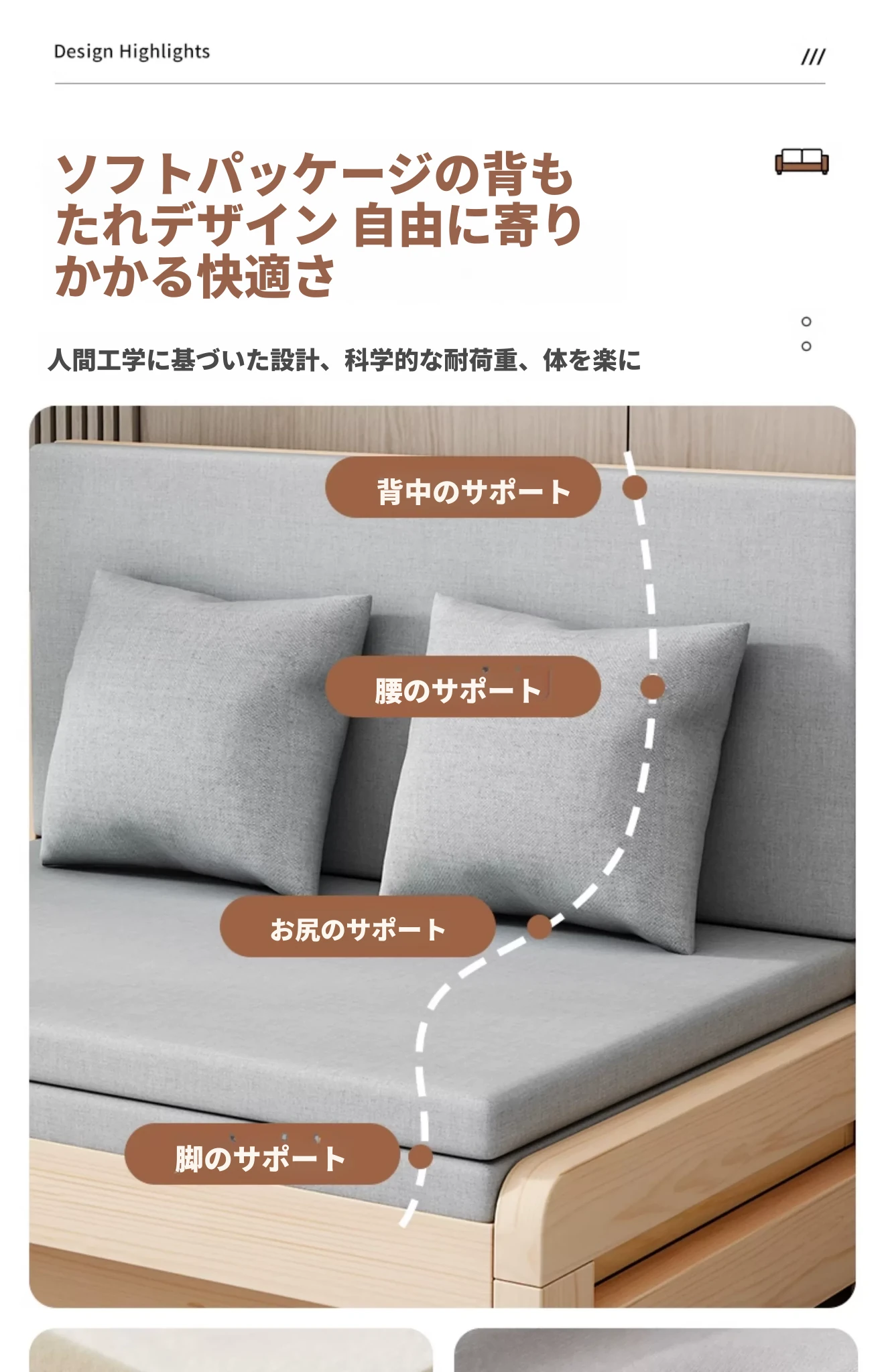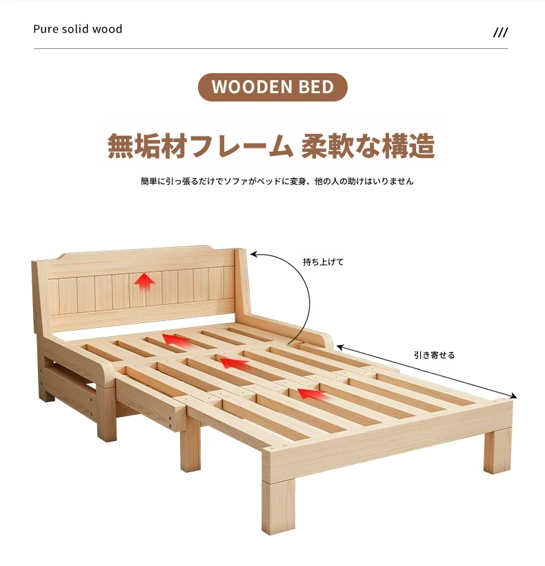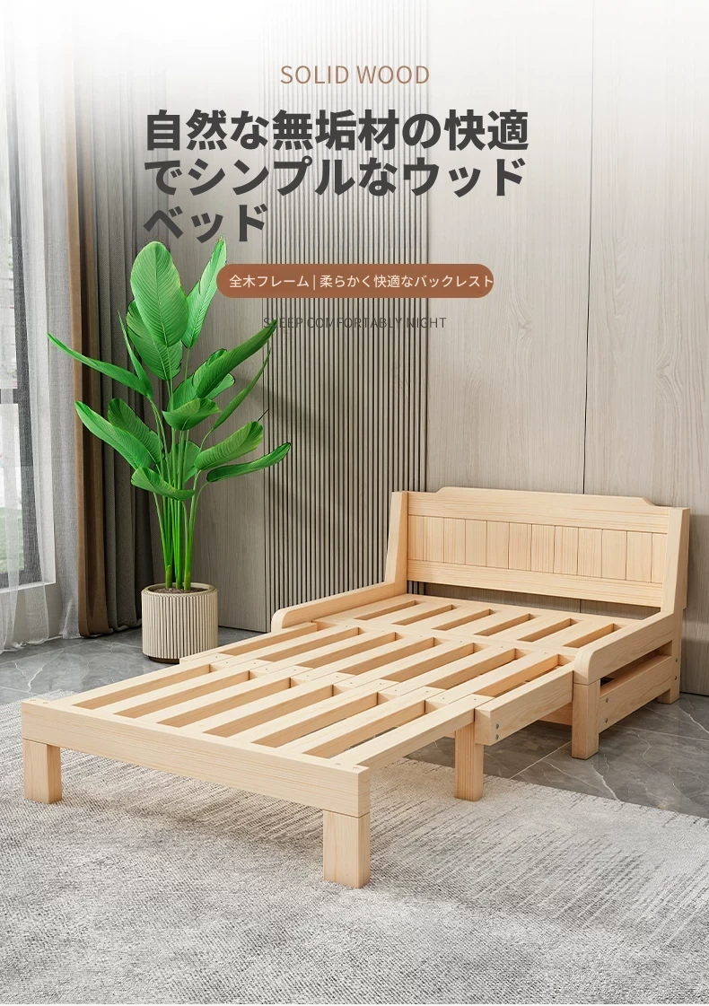 折りたたみ可能な実木製ソファベッド!小型住宅にぴったりの多機能伸縮ベッド。1.2mのシングルベッドから1.5mのダブルベッドまで対応!快適さとスタイルを兼ね備えた理想の空間を演出します。