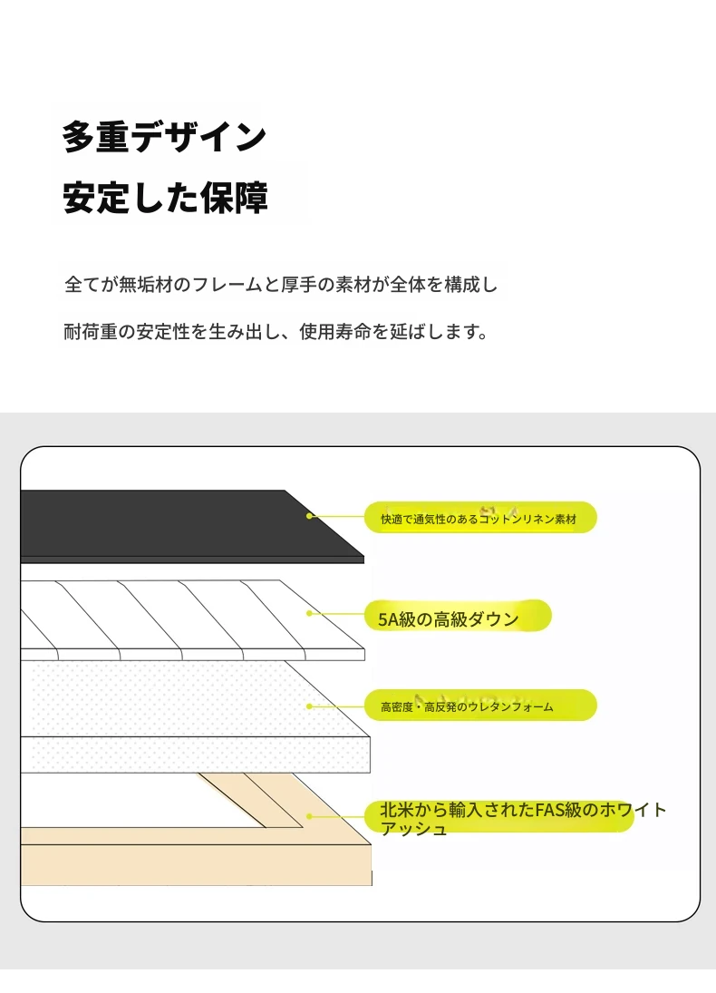 独立一人用ソファ(ホワイトアッシュフルカバー座板にアップグレード) モダンシンプル/冬夏両用