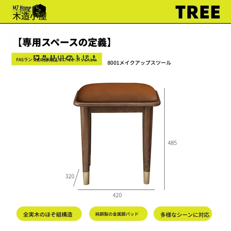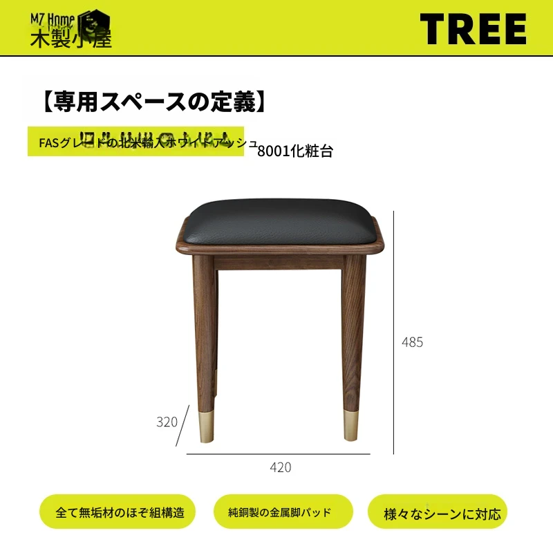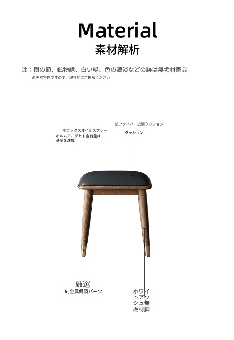北欧スタイルの軽奢実木メイクスツール - 和風ホワイトアッシュ材のドレッシングスツール、現代的なウォールナット木目とファブリック仕上げで、家庭用化粧台にぴったり!おしゃれで機能的なアイテムで、毎日のビューティータイムを特別に。