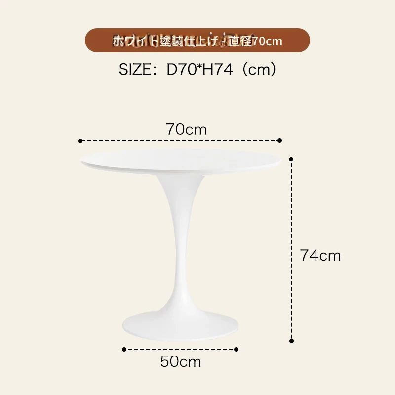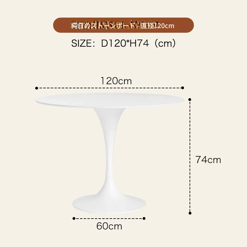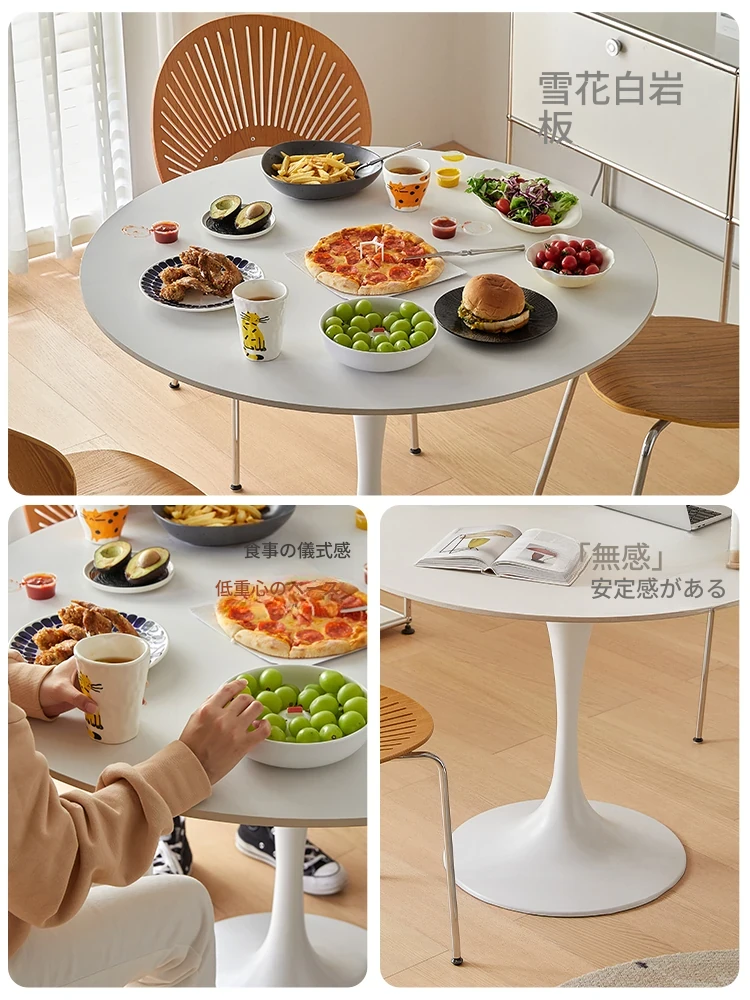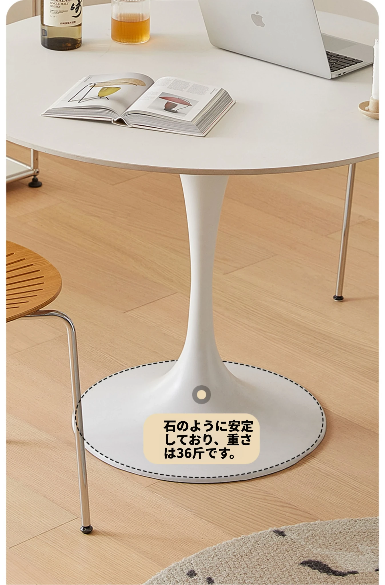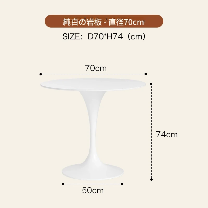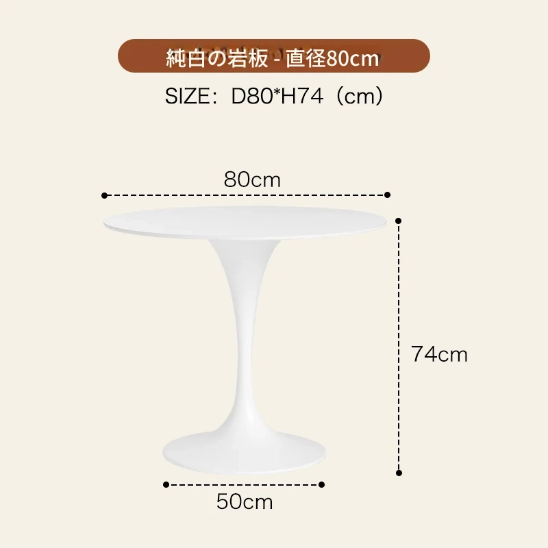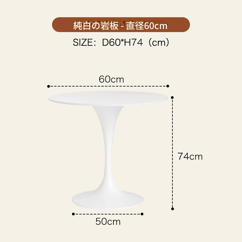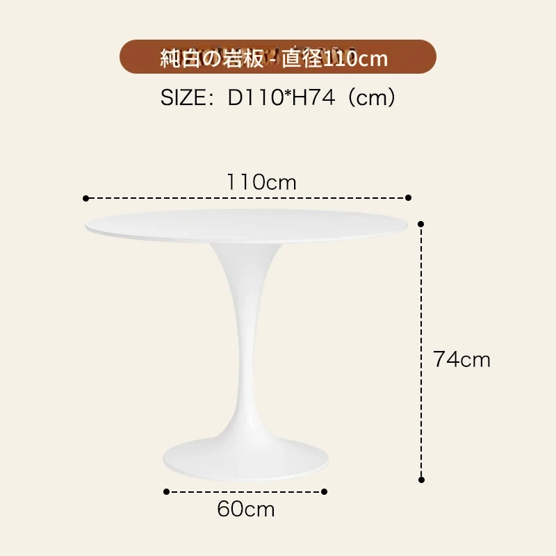 北欧風のシンプルモダンなホワイトチューリップ型円形テーブル - 小さな食堂にぴったりなスタイリッシュな岩板製ダイニングテーブルで、インテリアを洗練された雰囲気に!
