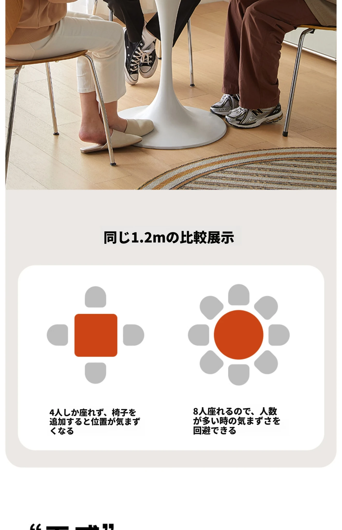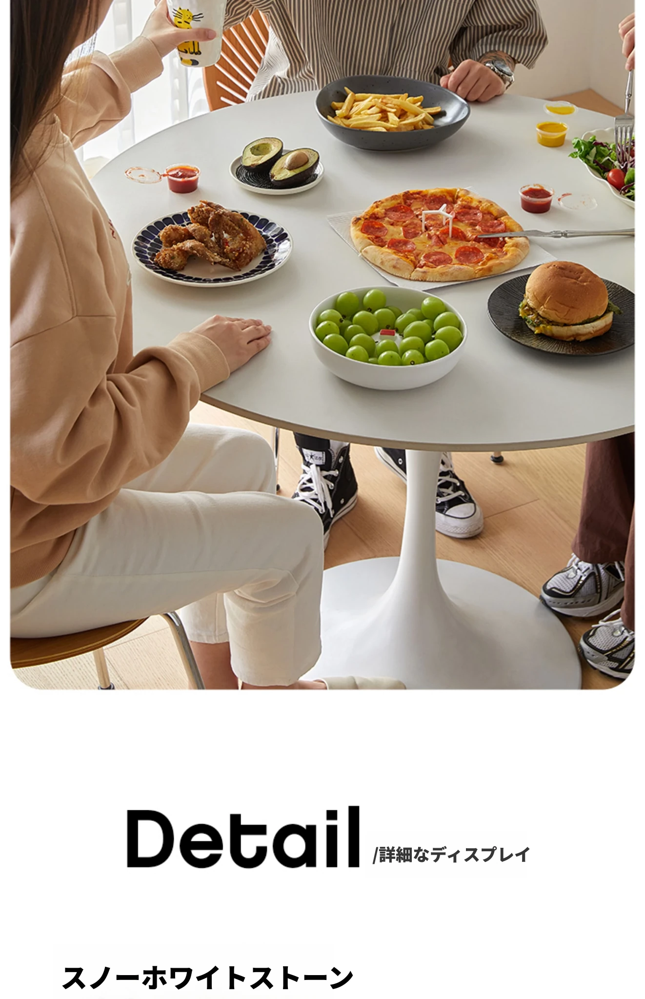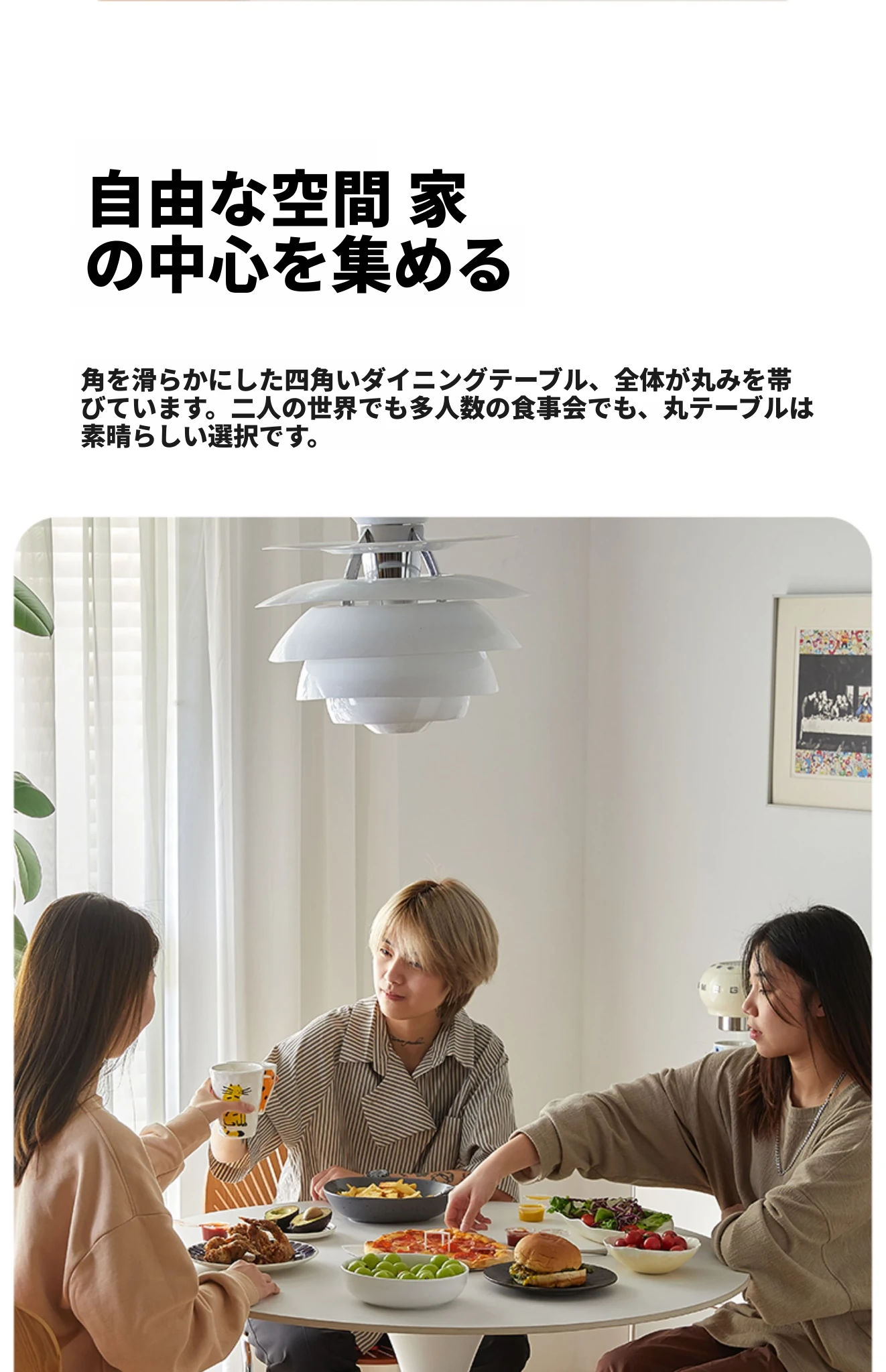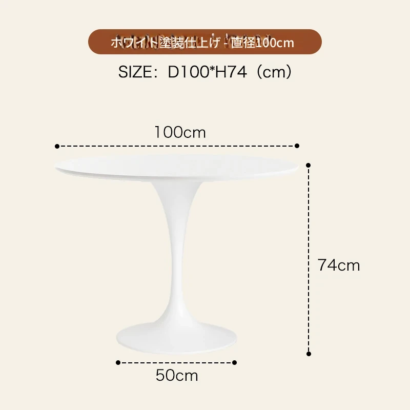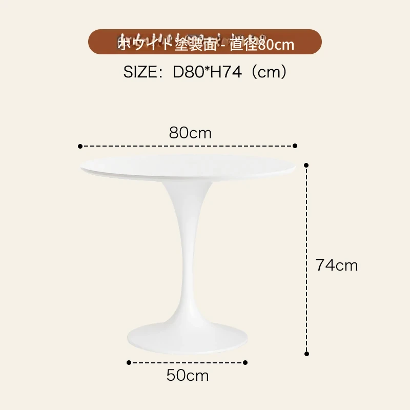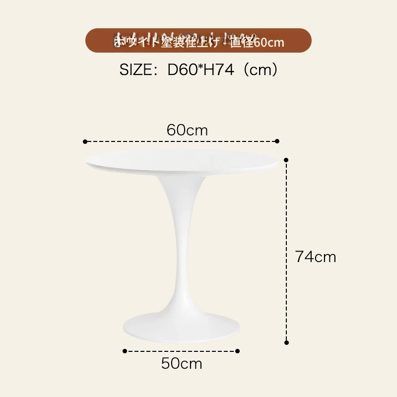 北欧風のシンプルモダンなホワイトチューリップ型円形テーブル - 小さな食堂にぴったりなスタイリッシュな岩板製ダイニングテーブルで、インテリアを洗練された雰囲気に!