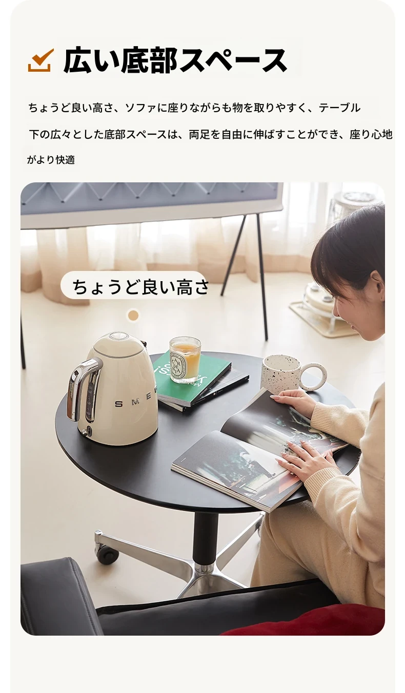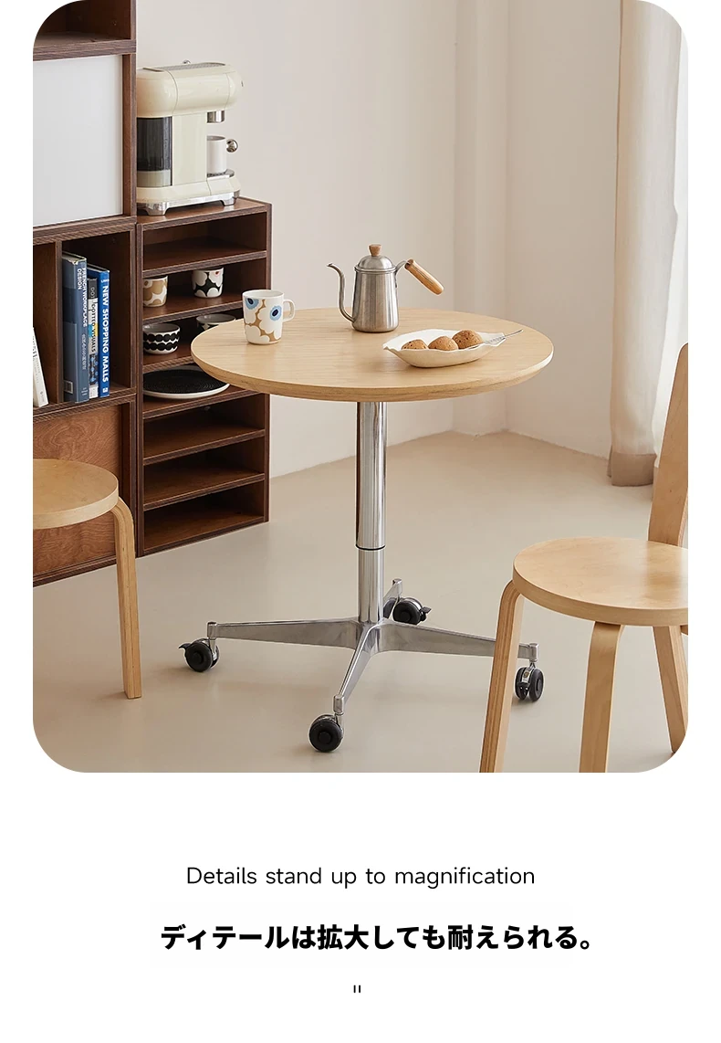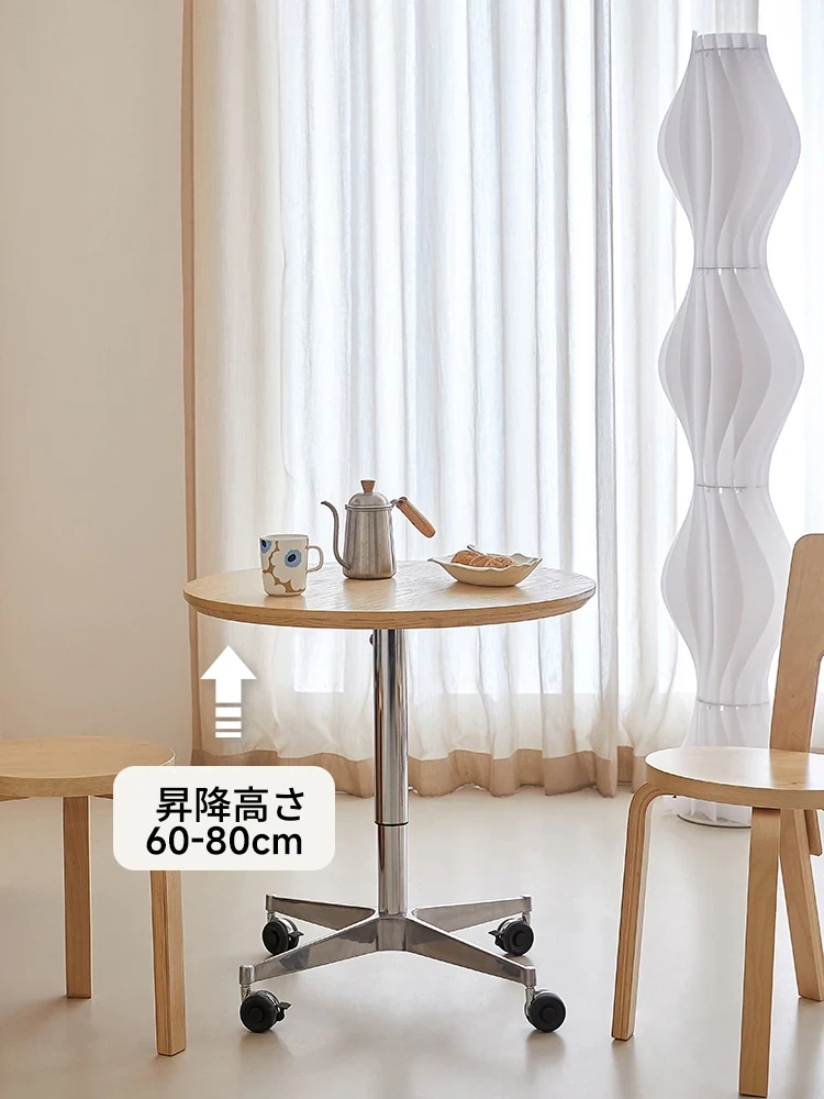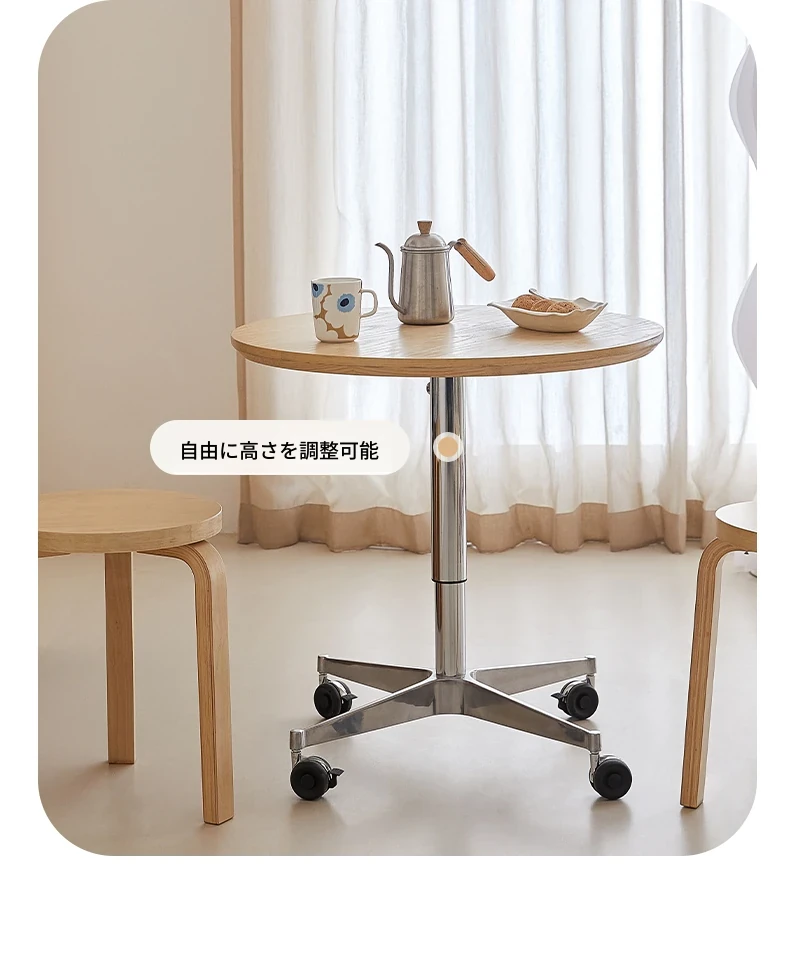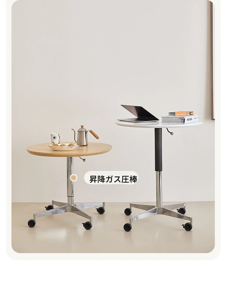 北欧スタイルの小型丸テーブル|おしゃれなカフェテーブル|移動可能なリフトアップ式ダイニングテーブル|スイーツやコーヒーを楽しむのにぴったりなソファ前テーブル|小さなスペースにも最適!