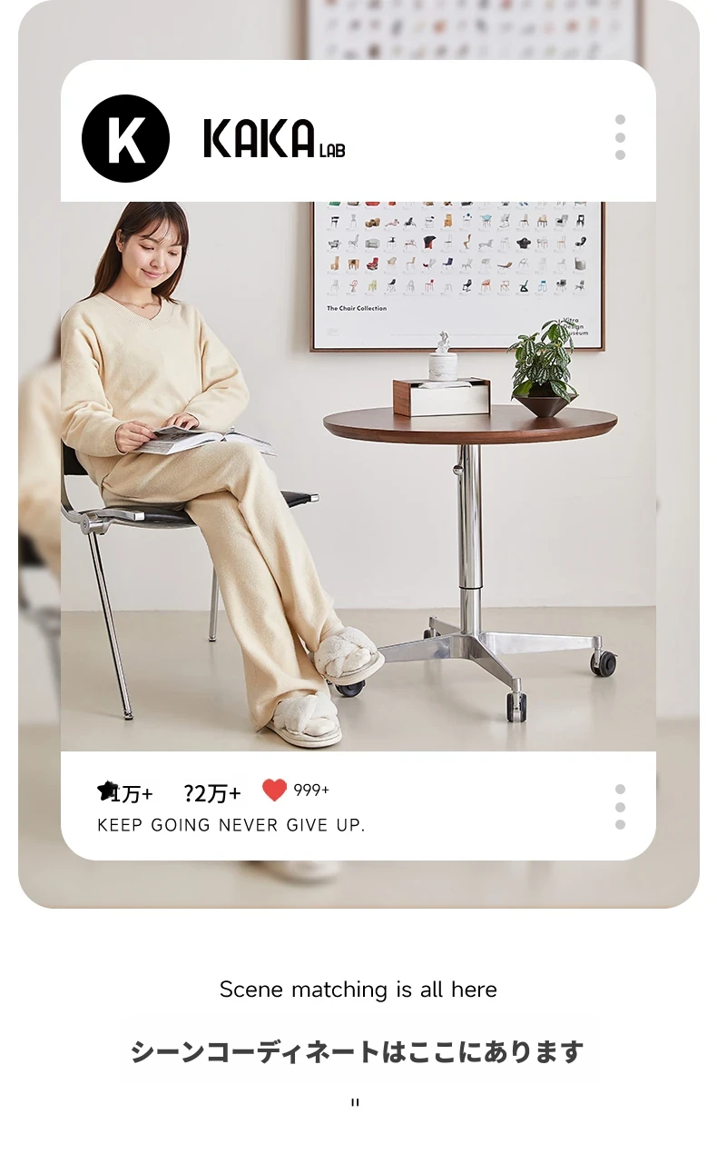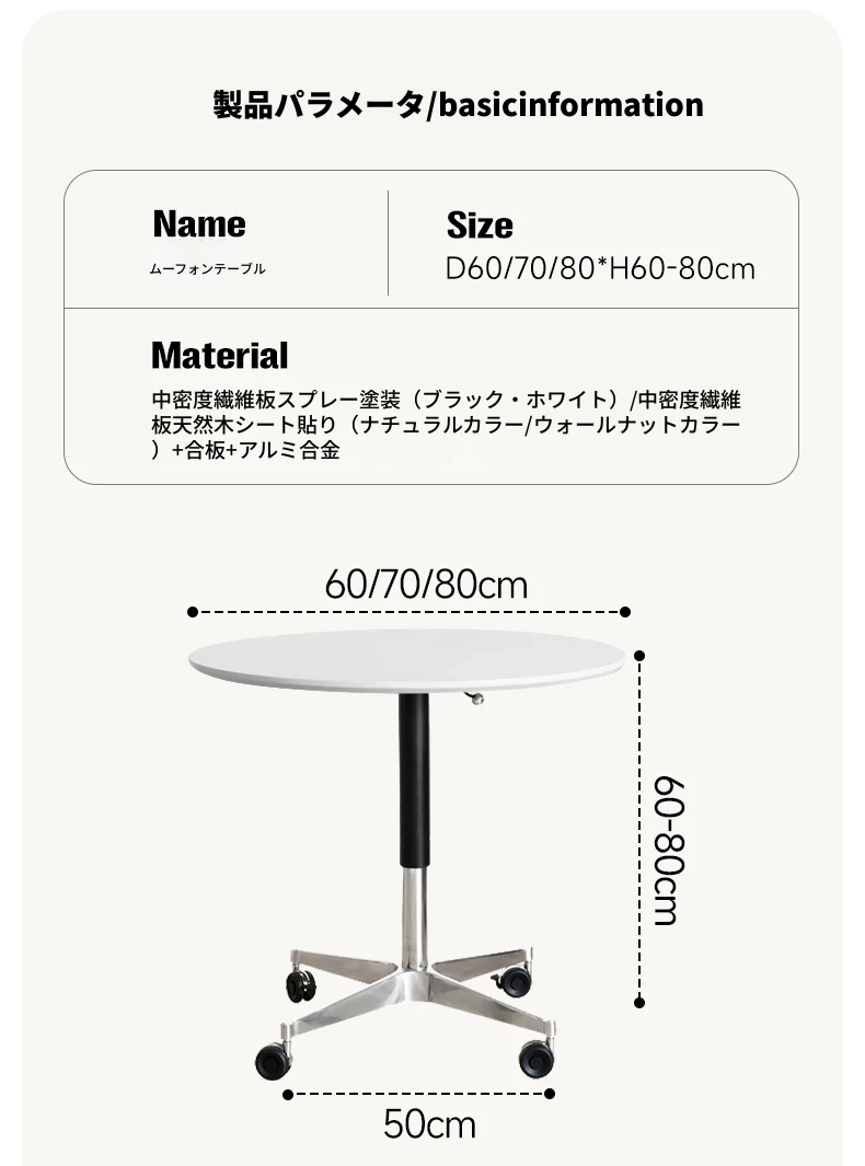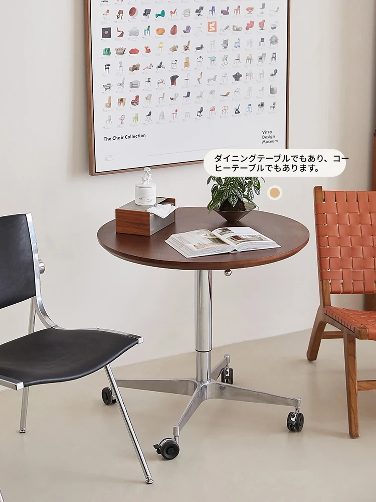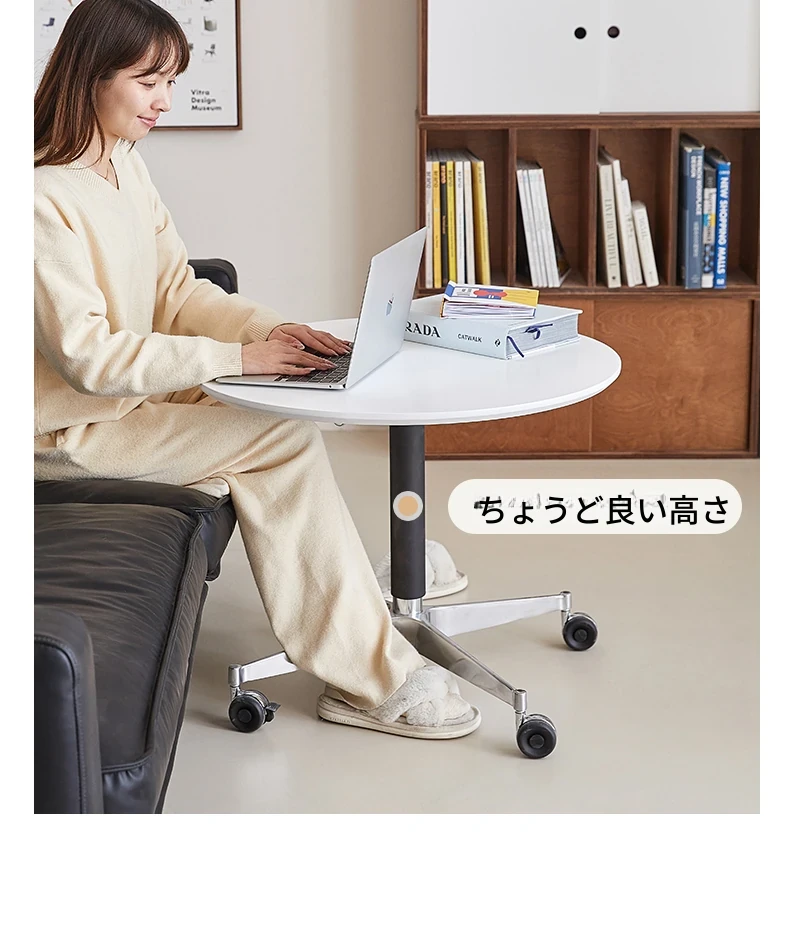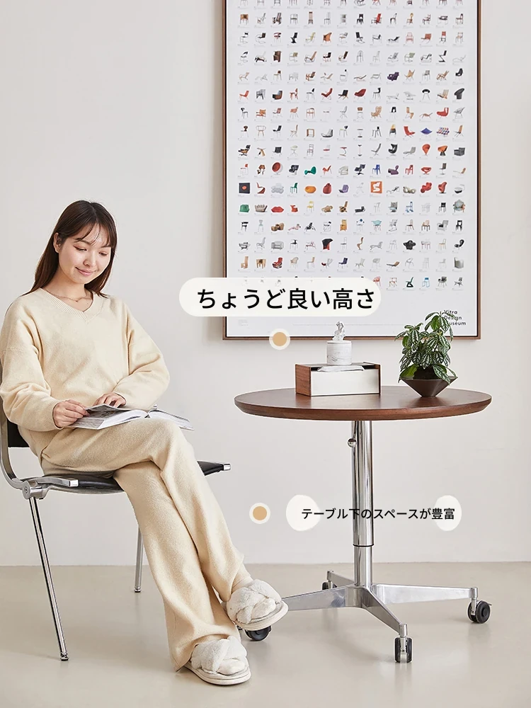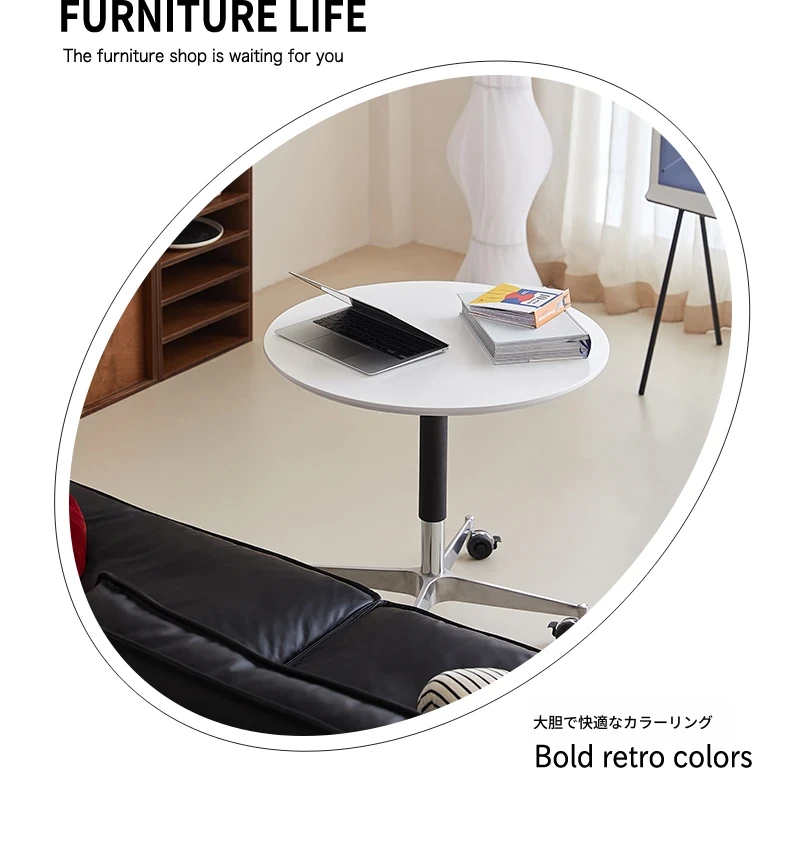 北欧スタイルの小型丸テーブル|おしゃれなカフェテーブル|移動可能なリフトアップ式ダイニングテーブル|スイーツやコーヒーを楽しむのにぴったりなソファ前テーブル|小さなスペースにも最適!