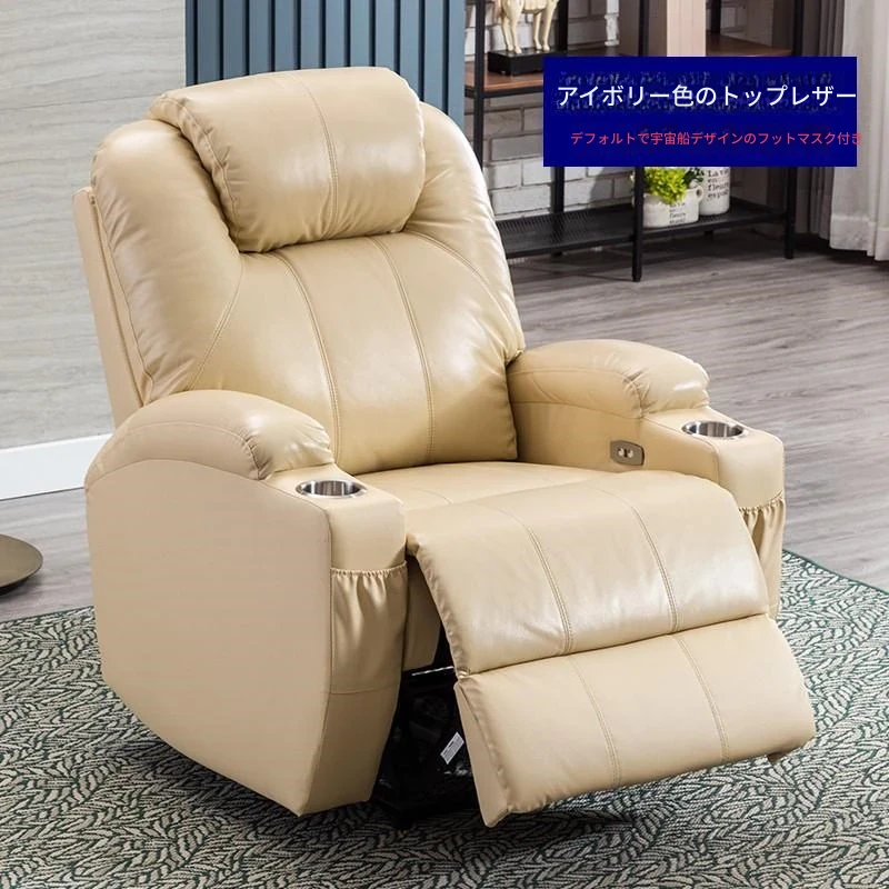 究極のリクライニングソファ!電動マッサージ機能付き、シングルスペース用の贅沢なレザー製。家庭シアターや音楽室に最適なリラックス空間を提供します。快適なひとときをお楽しみください!
