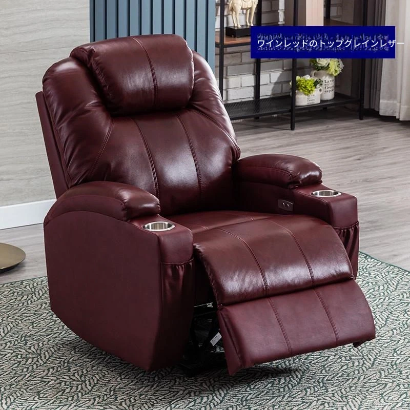 ワインレッドのトップレザー電動リクライニング+振動マッサージ