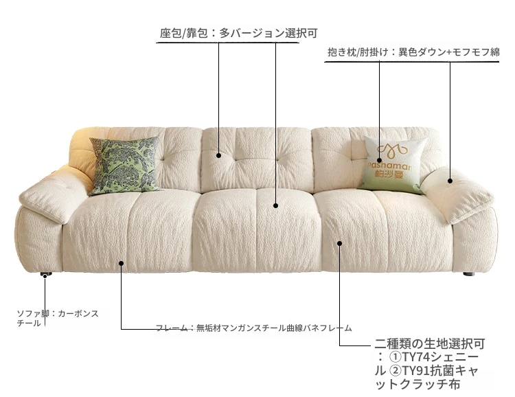 【フラッグシップ版・雲のような座り心地】抗ダニ防水防汚シェニールTY74(宇宙シリコンフォーム+3cmバイオレットスポンジ+無粉高反発竹炭スポンジ)