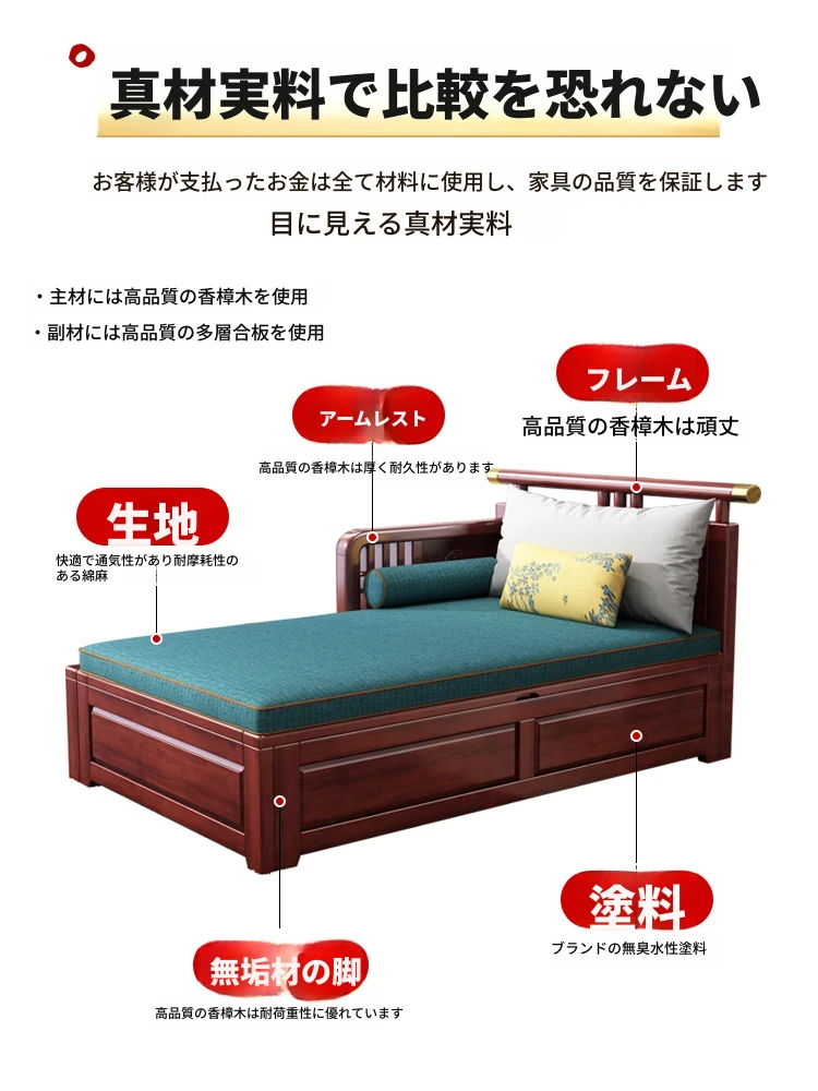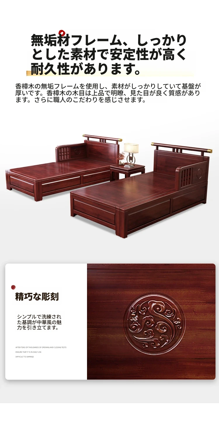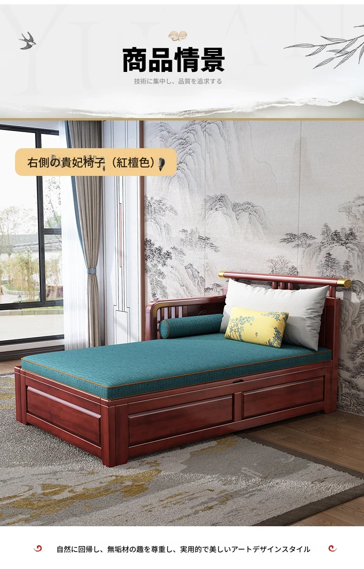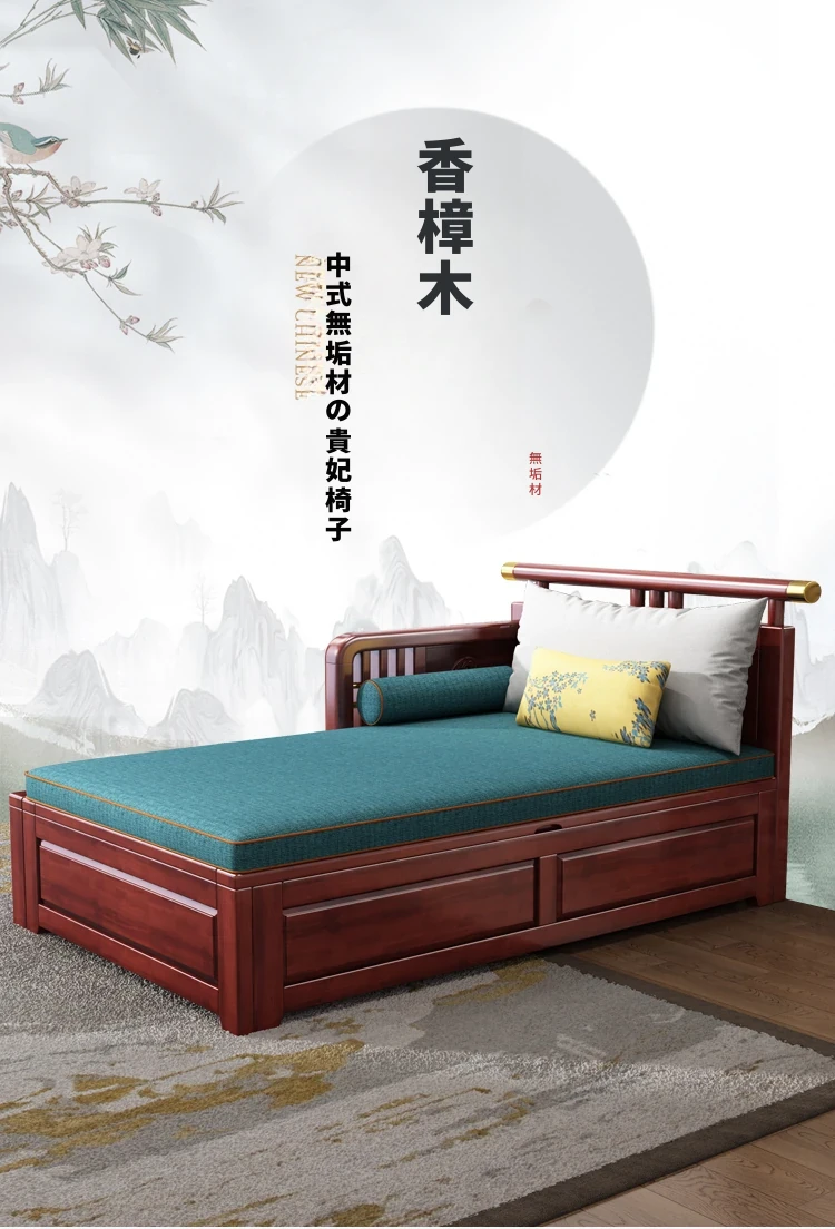 高級な香樟木製の貴妃椅子 - リビングや寝室に最適な収納付きの一人掛けソファベッド。贅沢なデザインで、快適さとスタイルを兼ね備えた理想のリラックス空間を提供します!