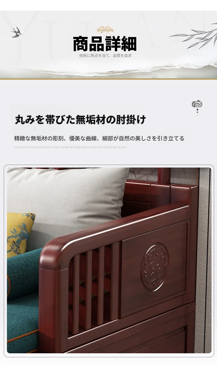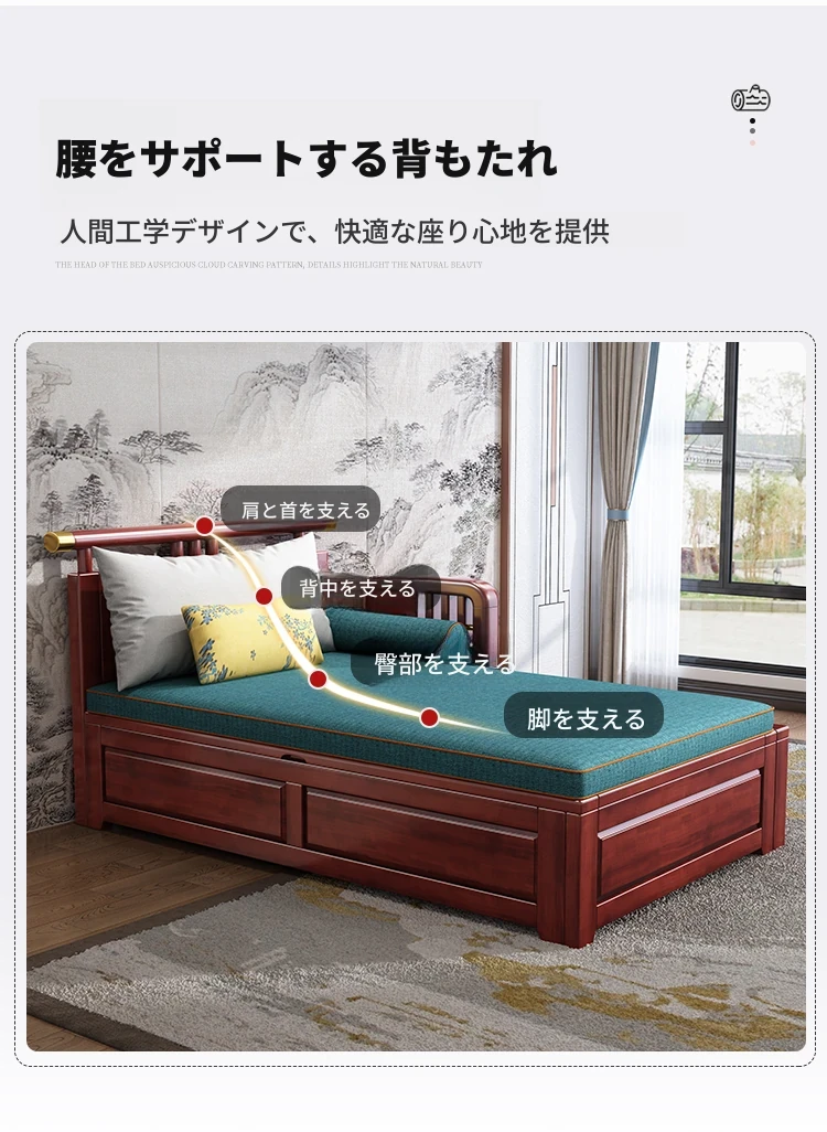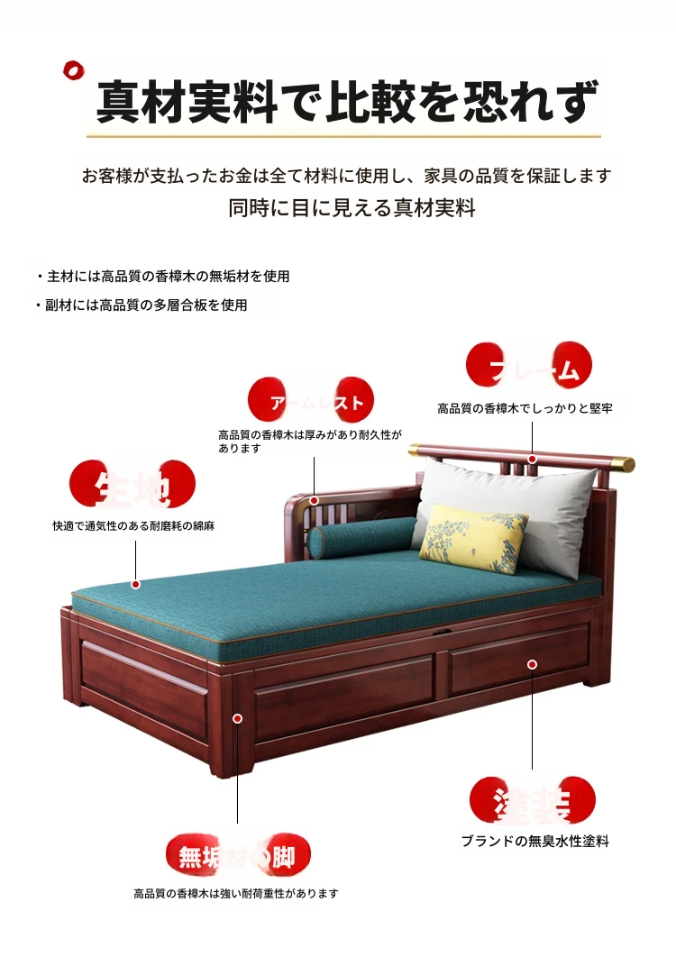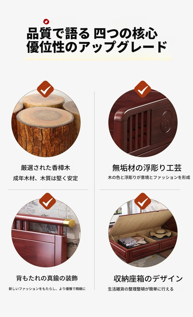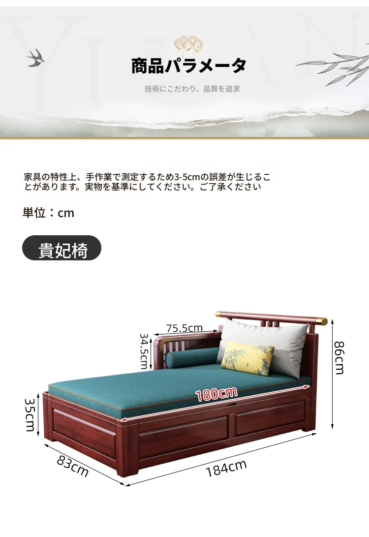 高級な香樟木製の貴妃椅子 - リビングや寝室に最適な収納付きの一人掛けソファベッド。贅沢なデザインで、快適さとスタイルを兼ね備えた理想のリラックス空間を提供します!