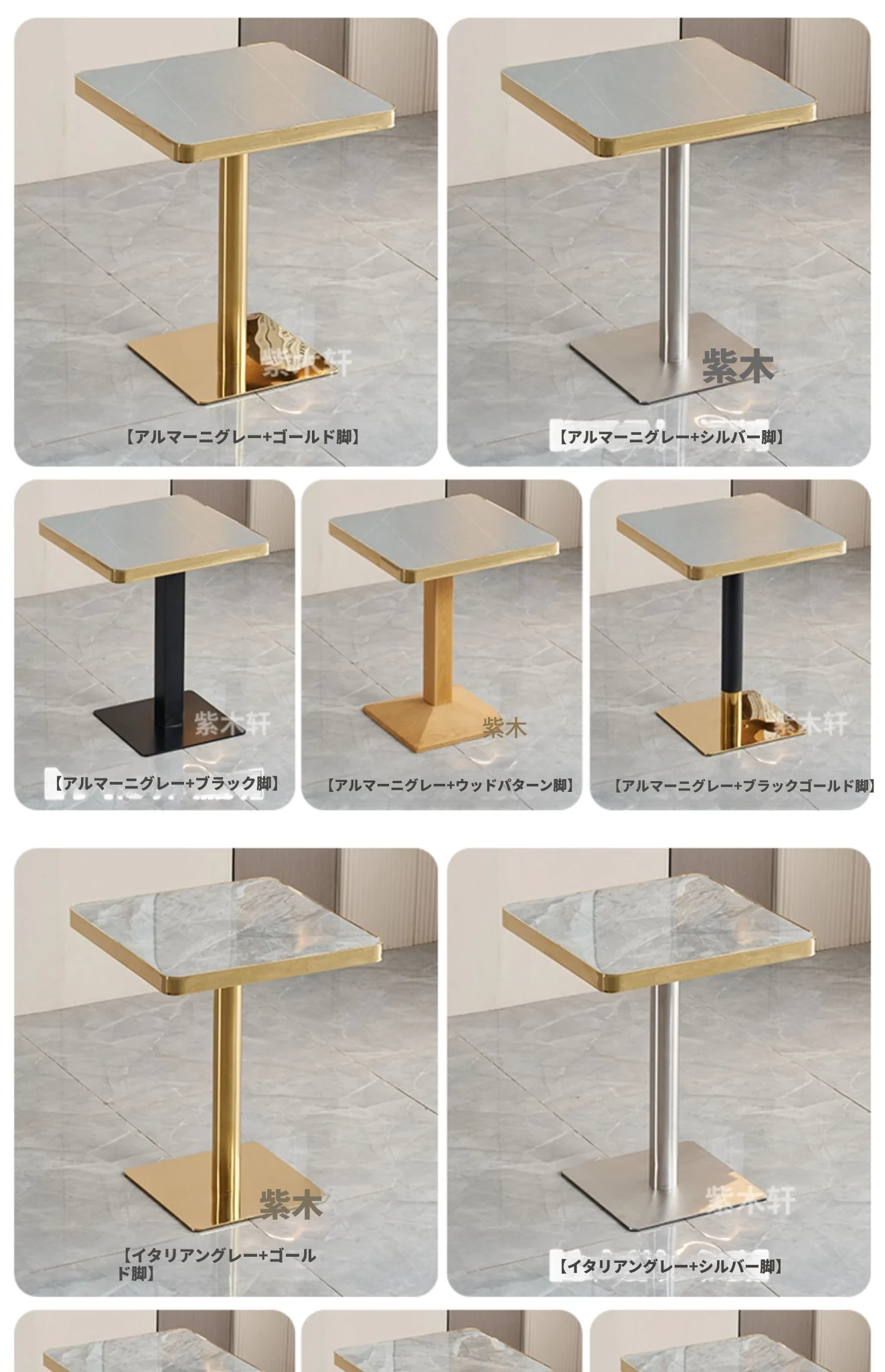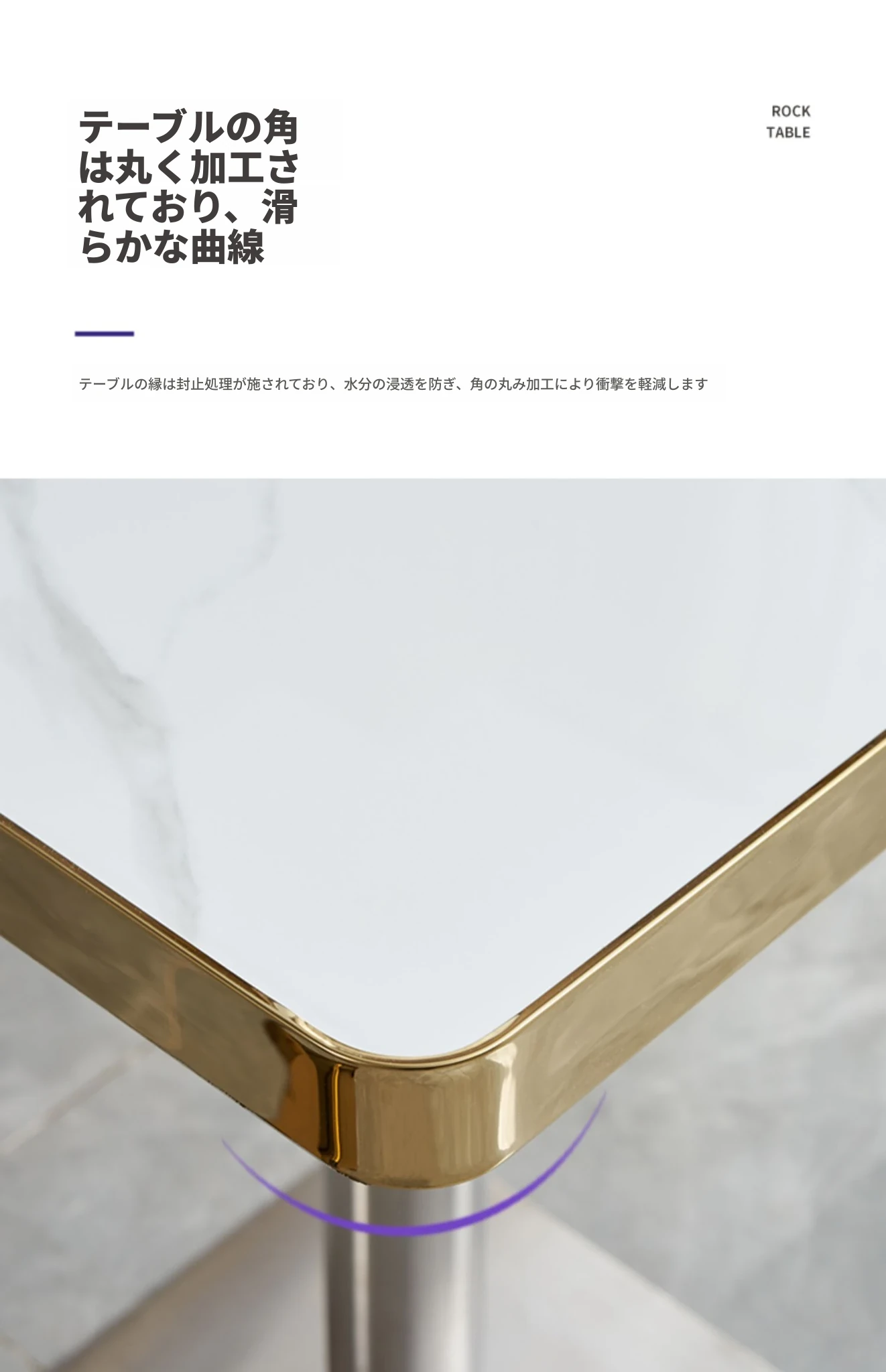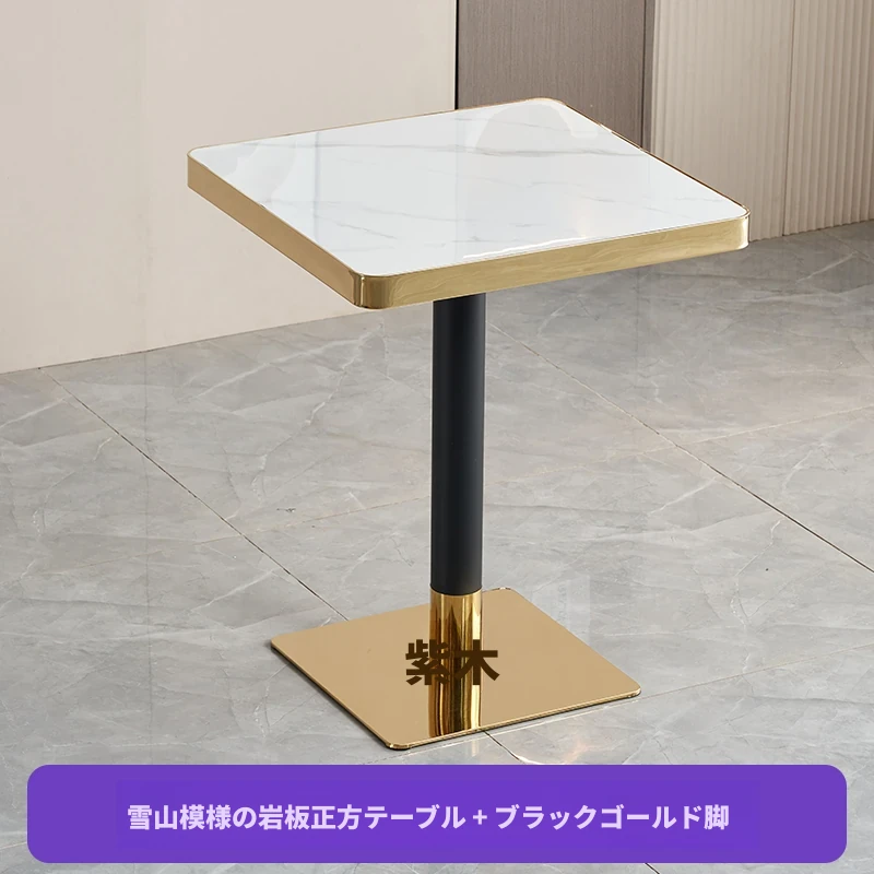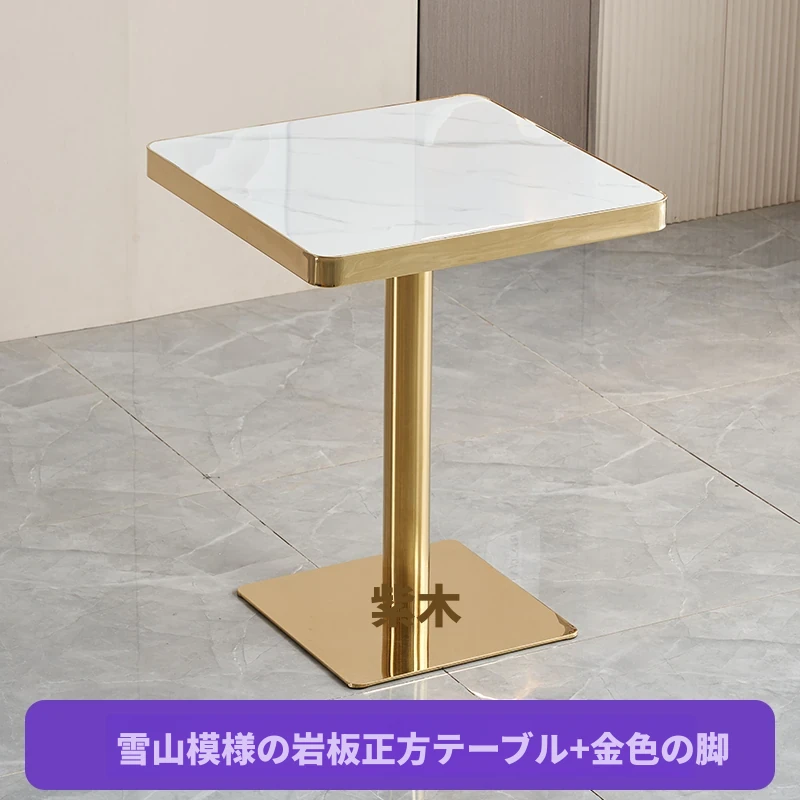 60*60雪山模様の岩板+金色無垢鋼板のテーブル脚