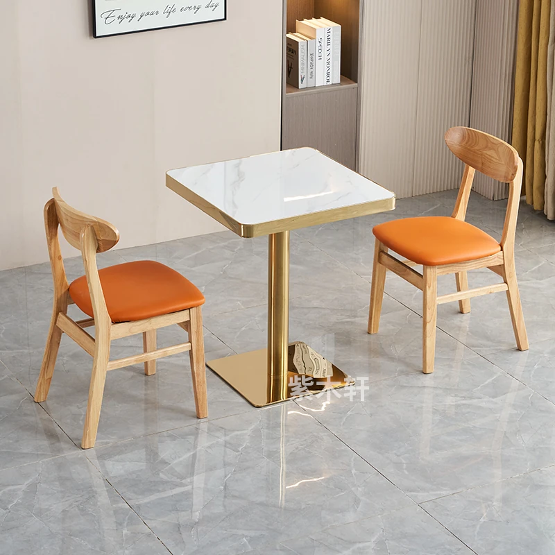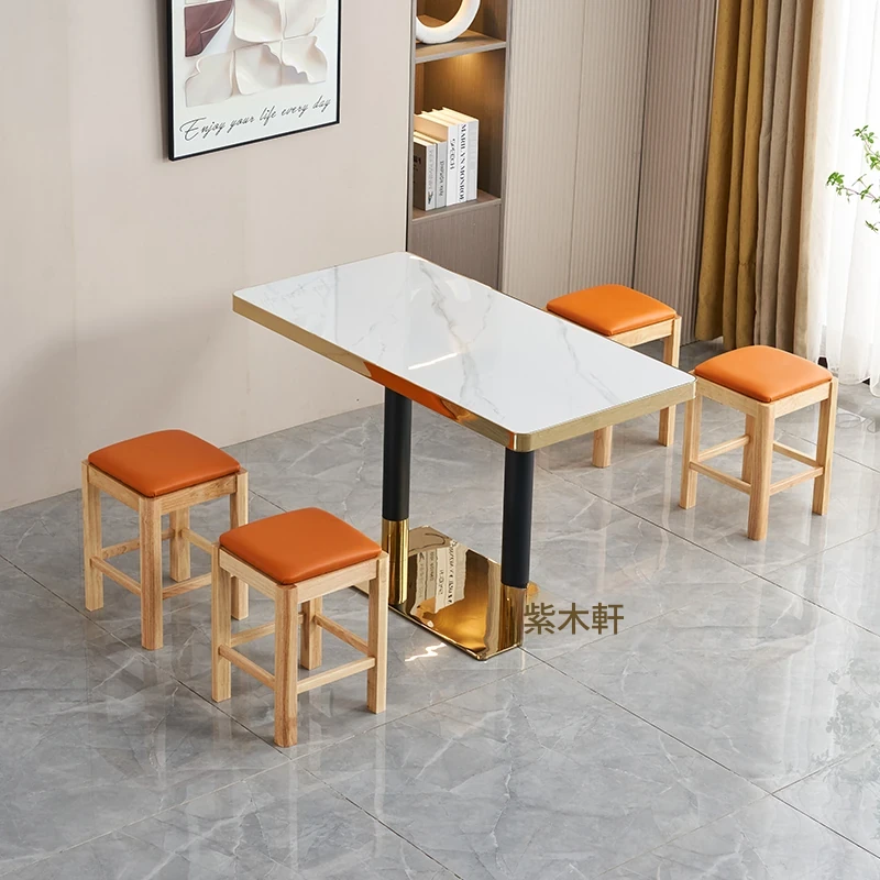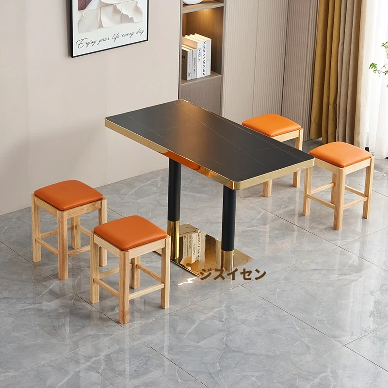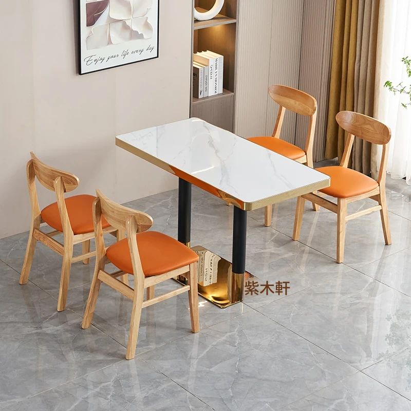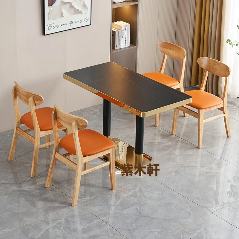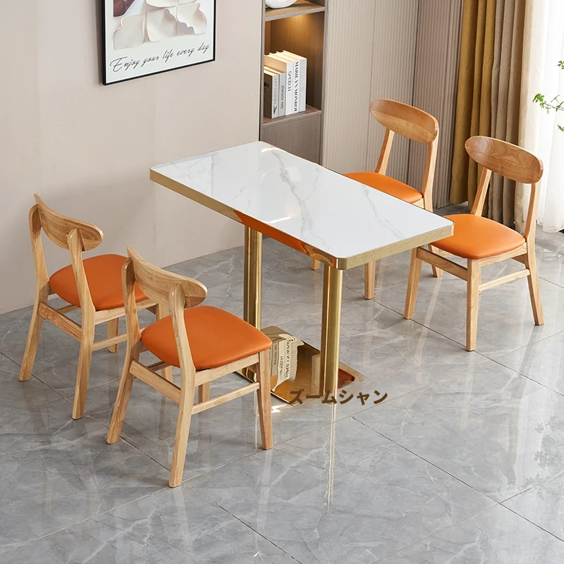 高級感あふれる天然木製ファーストフードテーブルセット!大理石の天板が美しい飲食店向け、ラーメン店や焼肉、火鍋にも最適なテーブルと椅子のコンビネーション。おしゃれで実用的な空間を演出します!