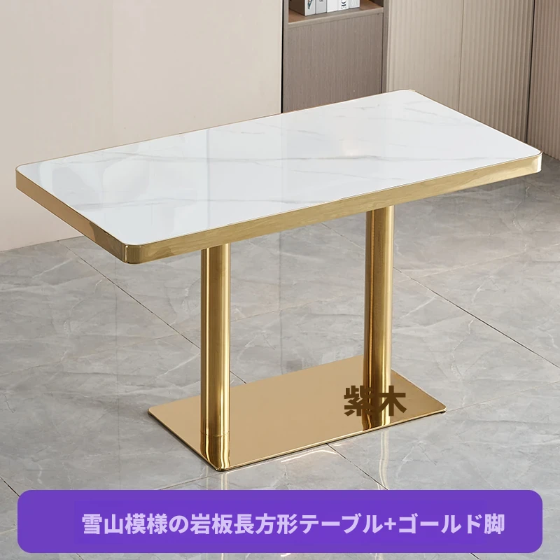 120*60雪山模様の岩板+金色無垢鋼板のテーブル脚