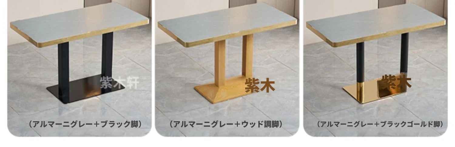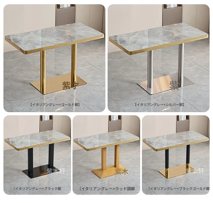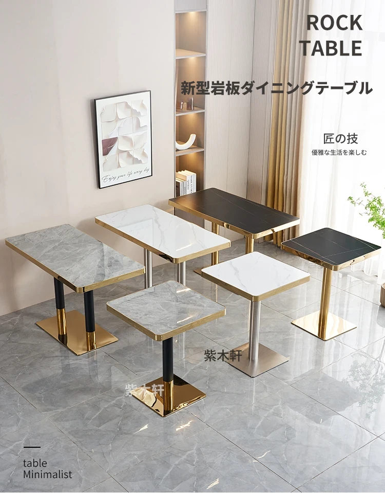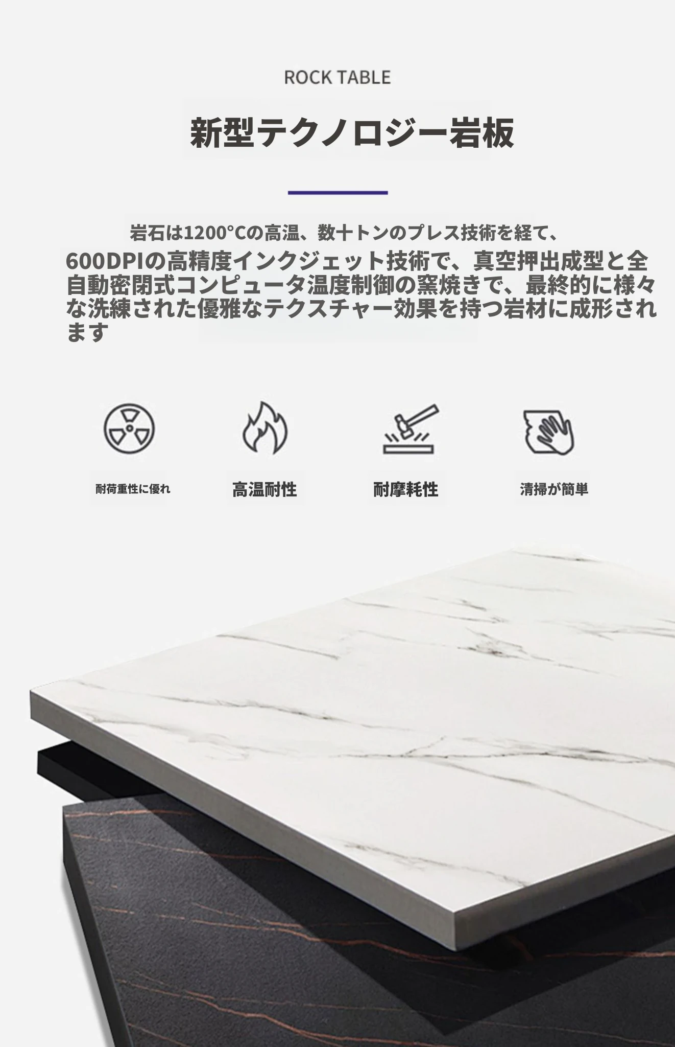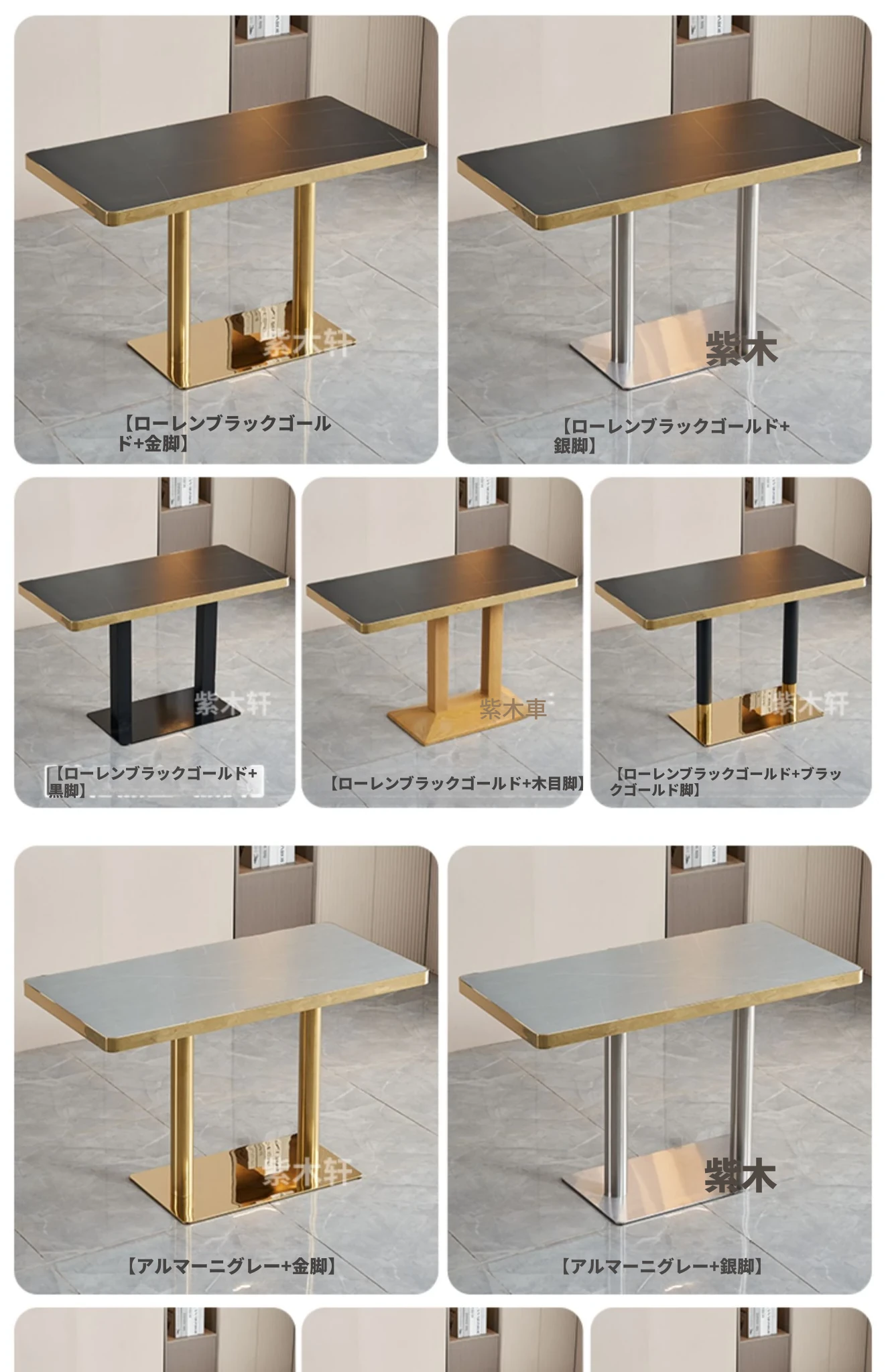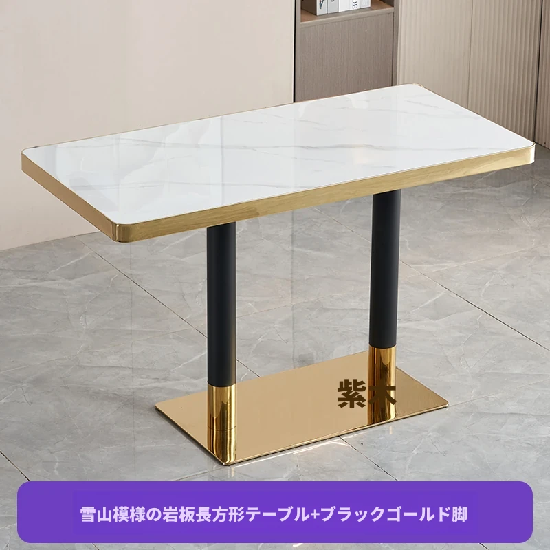 120*60雪山模様の岩板の天板・ブラックゴールドのテーブル脚1台4椅子