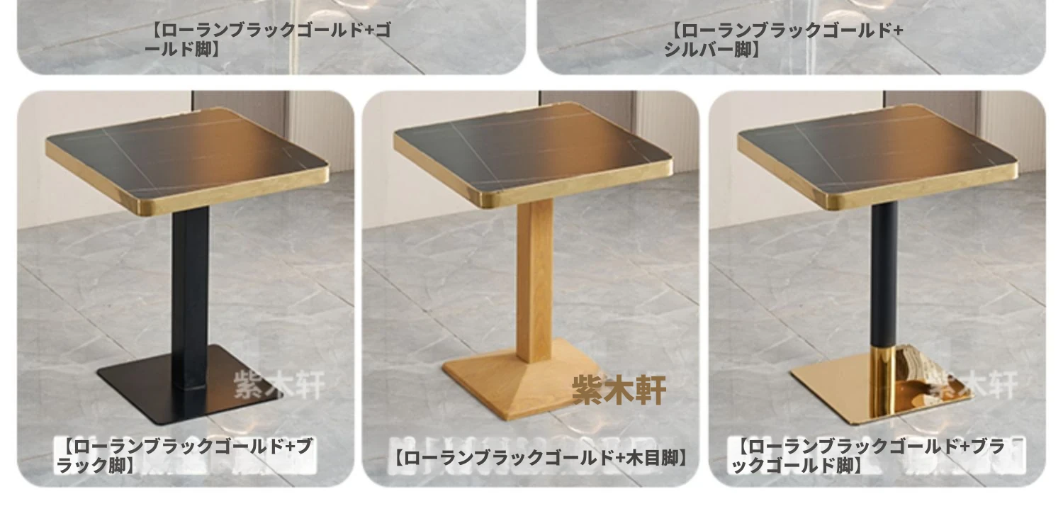 60*60ブラックゴールド模様の岩板+ブラックゴールド無垢鋼板のテーブル脚