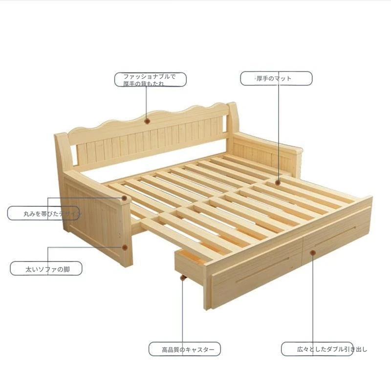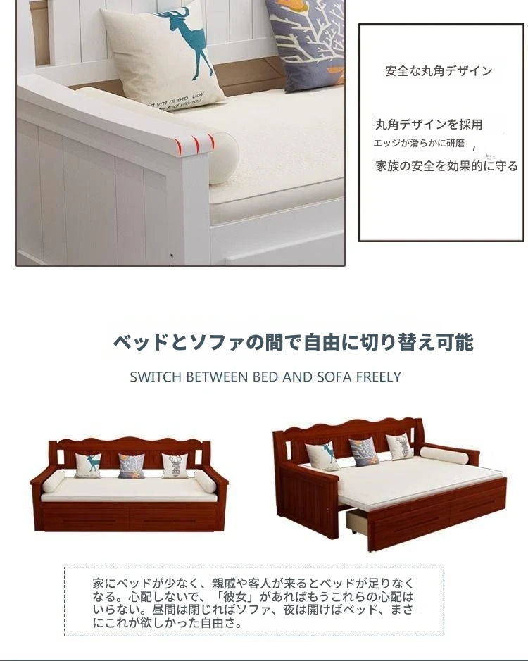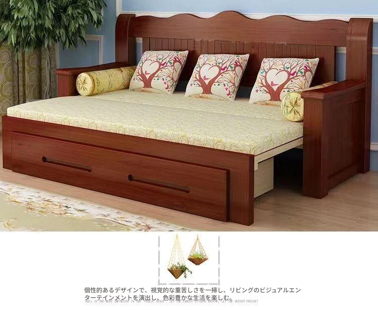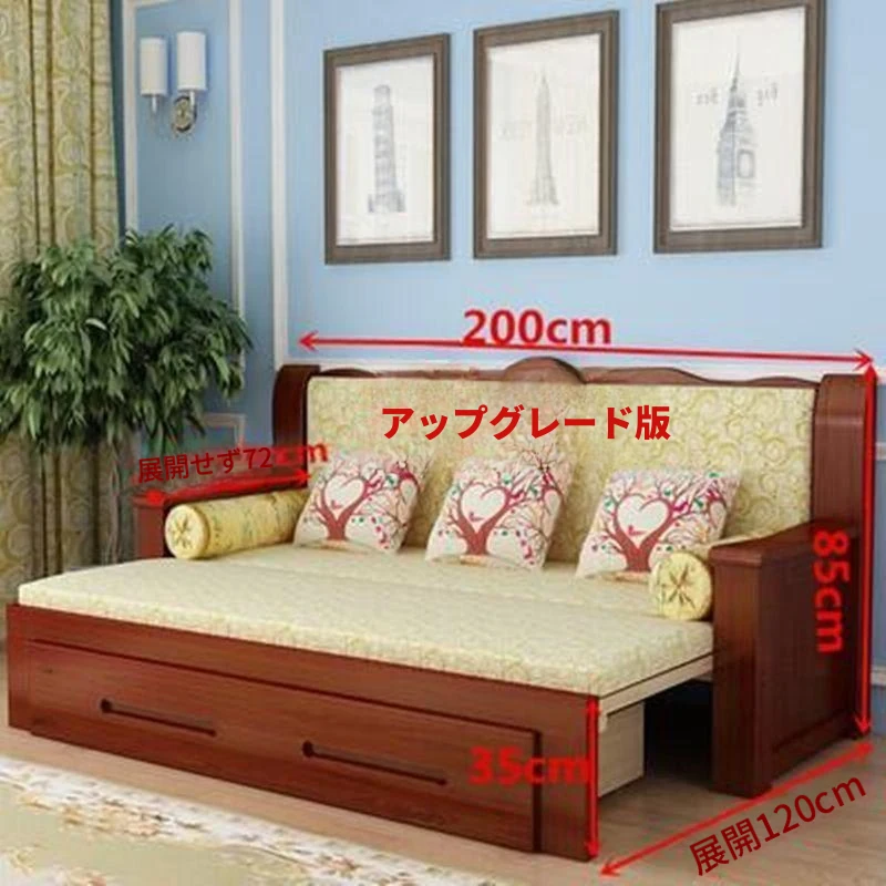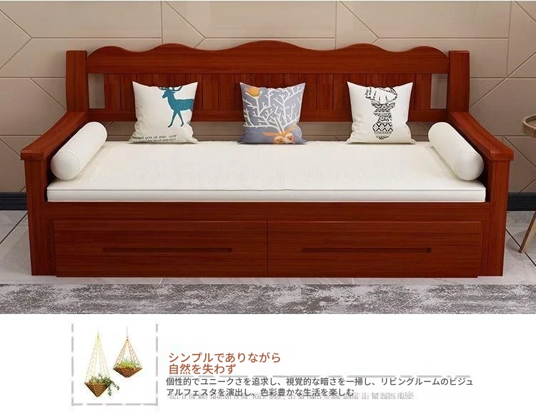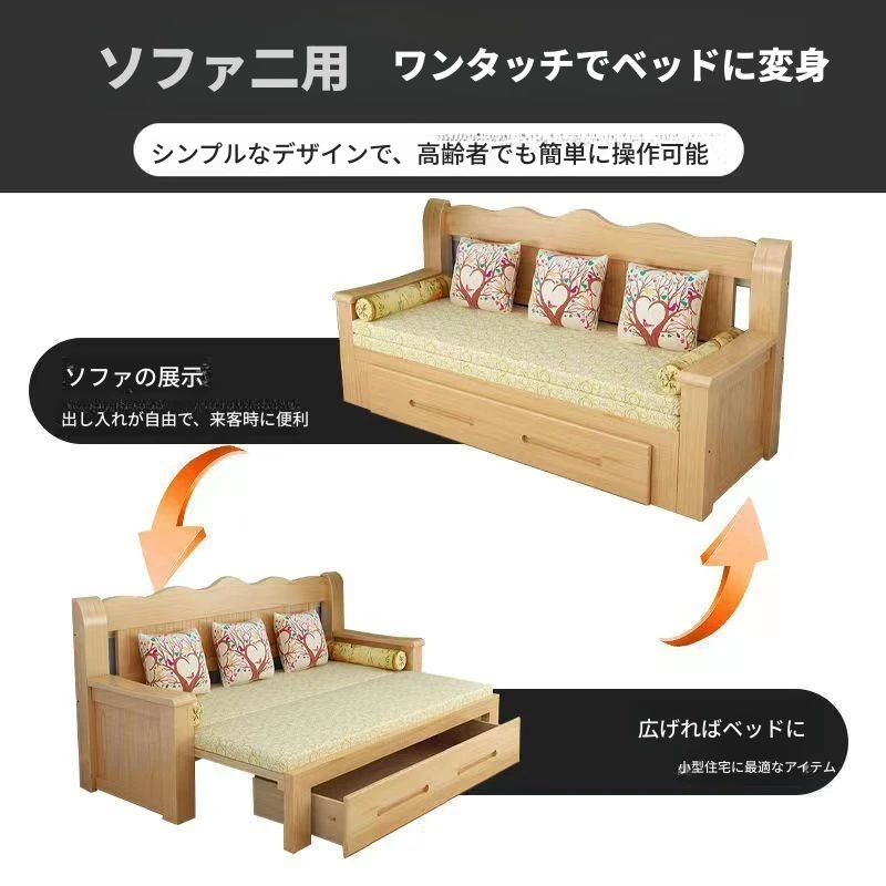 全実木製一体型ソファベッド 新中式デザイン 折りたたみ可能なリビング用 小型住宅向け 伸縮式シングルソファで、快適な座り心地と寝心地を実現!