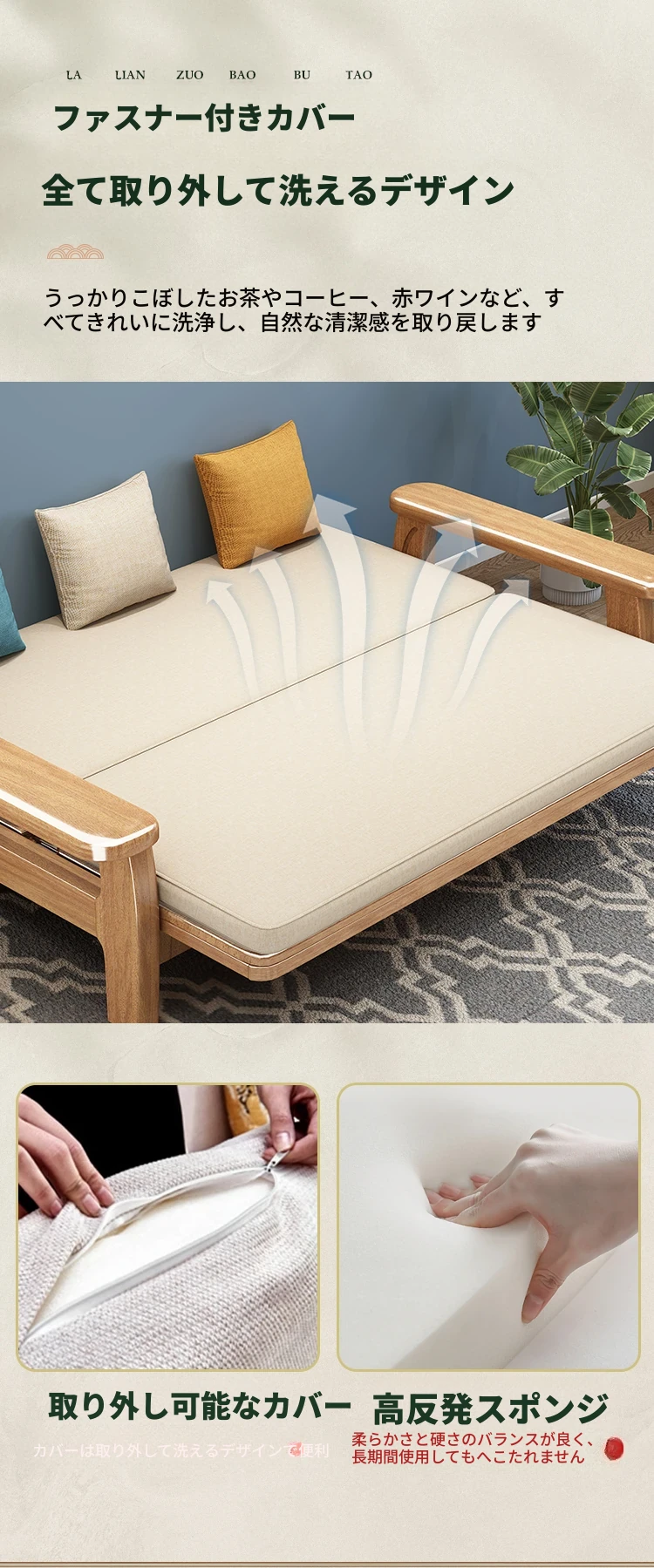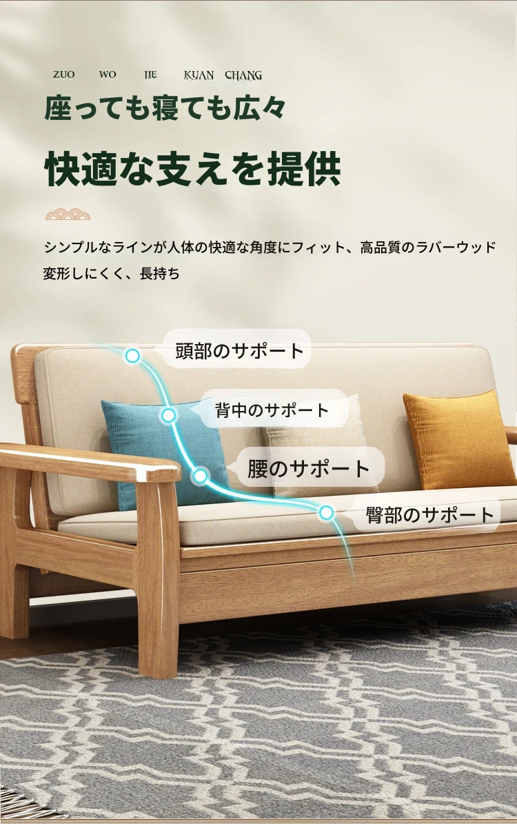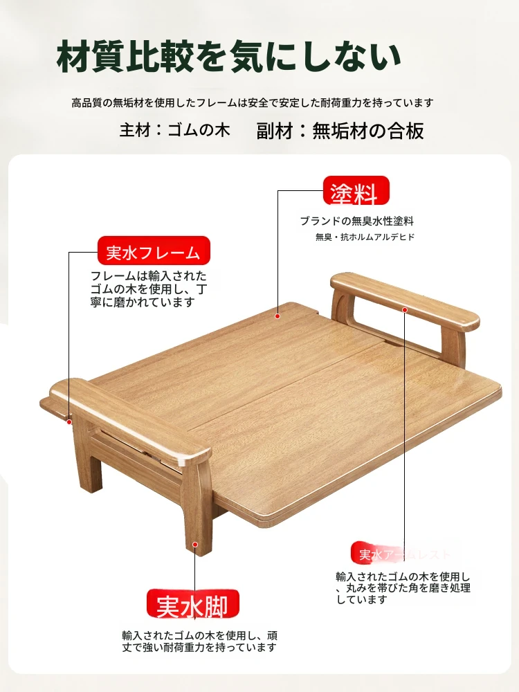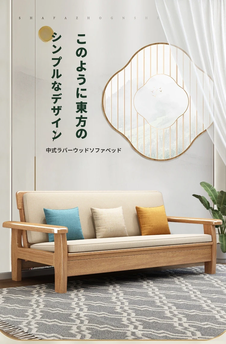 全実木製ソファベッド|伸縮可能な折りたたみ式で、快適な2in1デザイン|天然木使用のソファ一体型で、スペースを有効活用!リラックスと機能性を兼ね備えた一品。