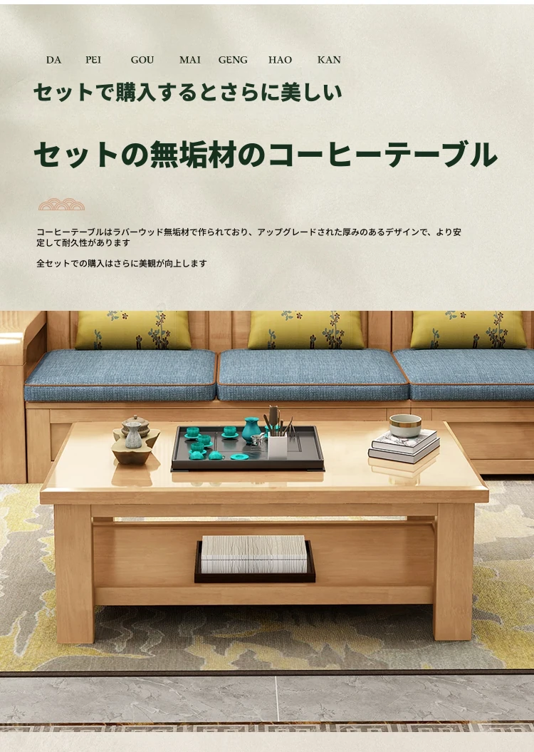 無垢材ソファベッド+コーヒーテーブル【ラテックスクッション付き】
