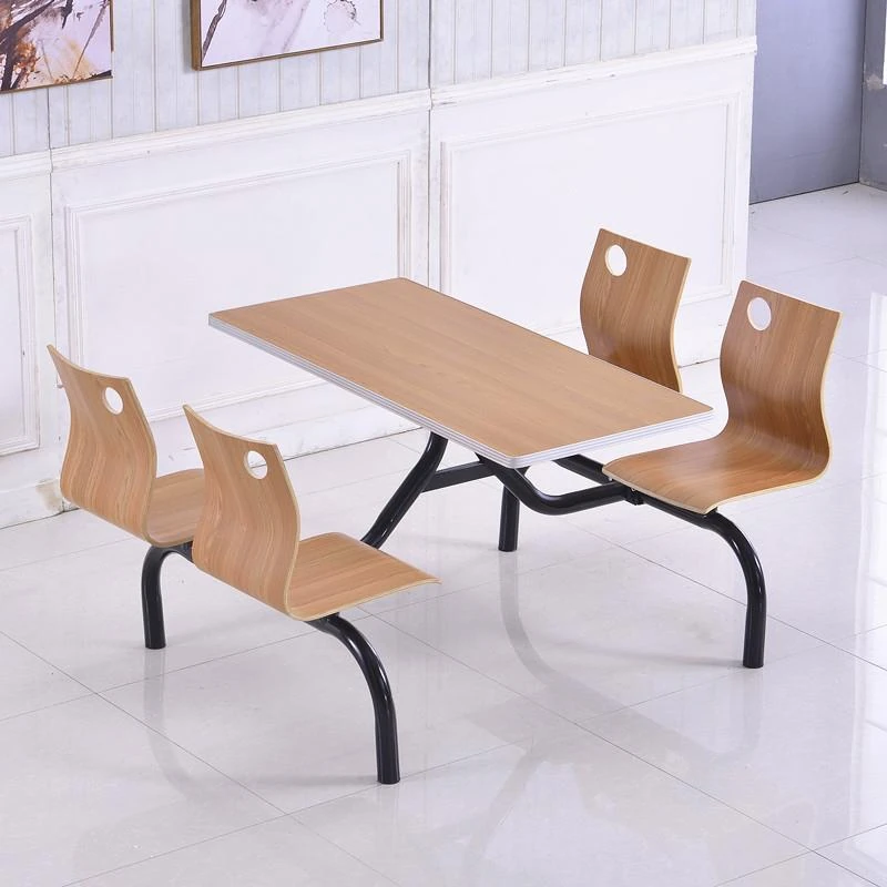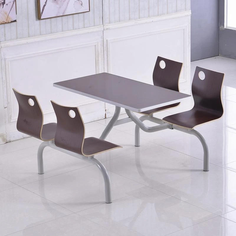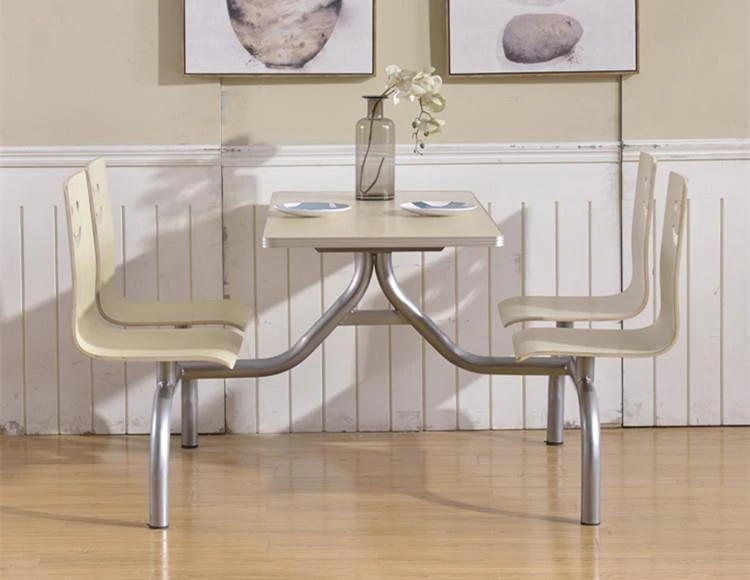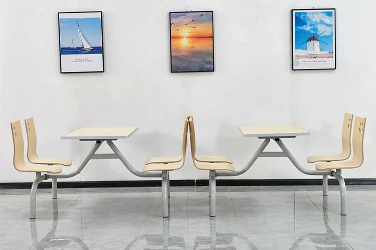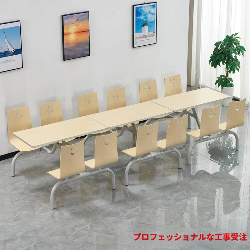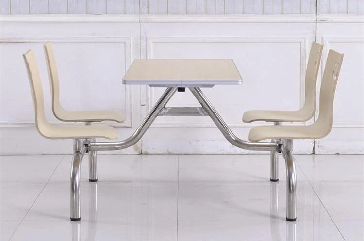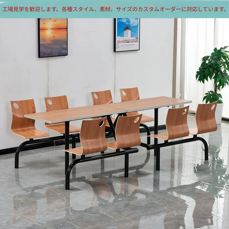 社員食堂や学校に最適!4人・6人用の一体型ステンレス製テーブルとチェアのセット - 手軽に清潔&スタイリッシュな食事空間を提供します!